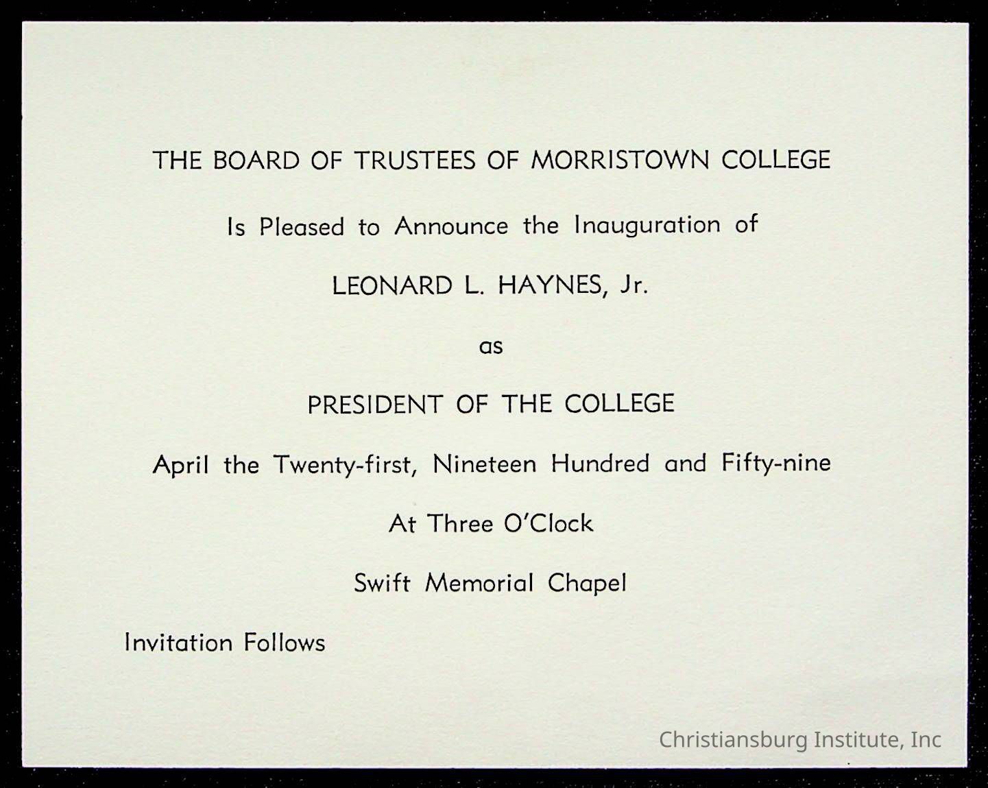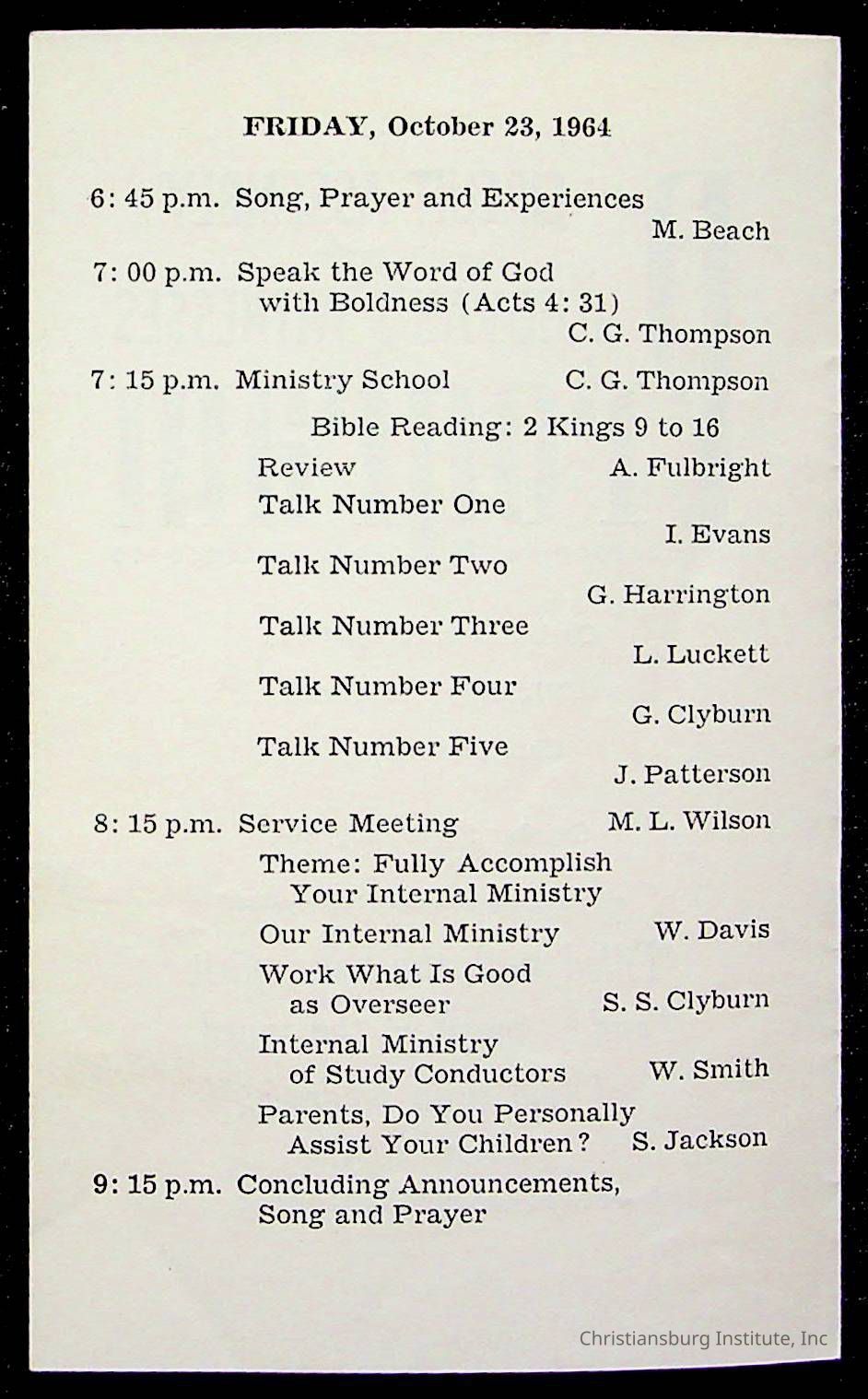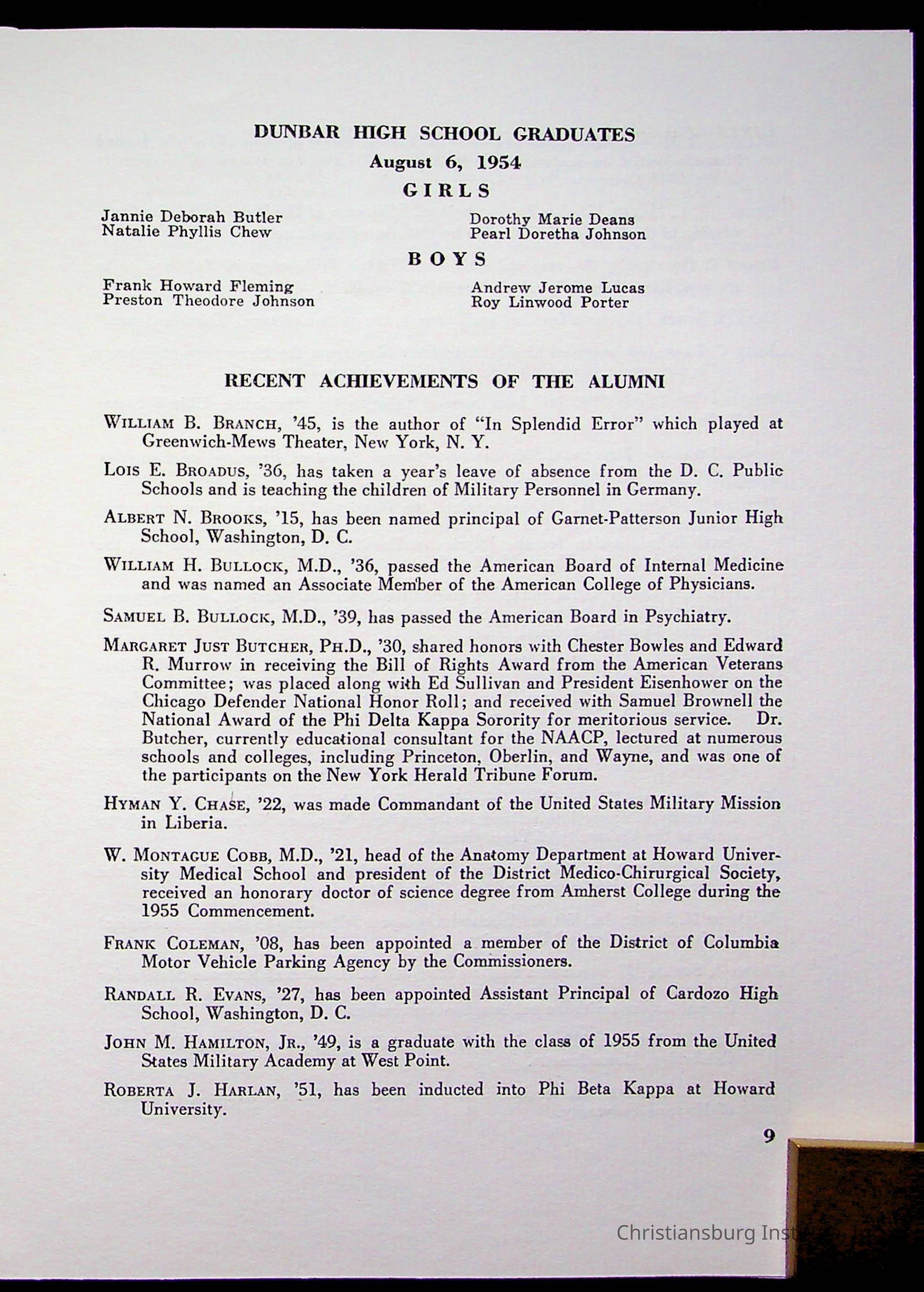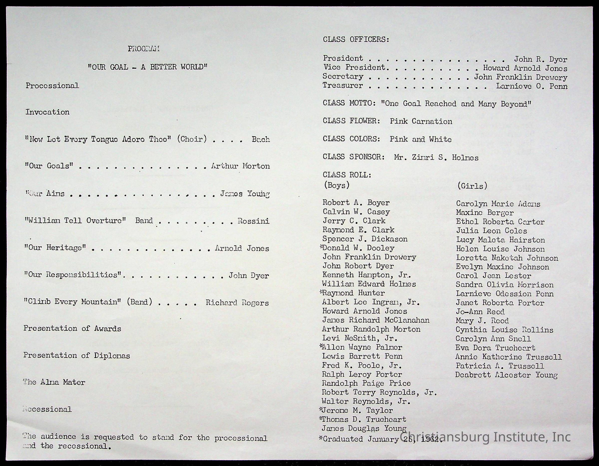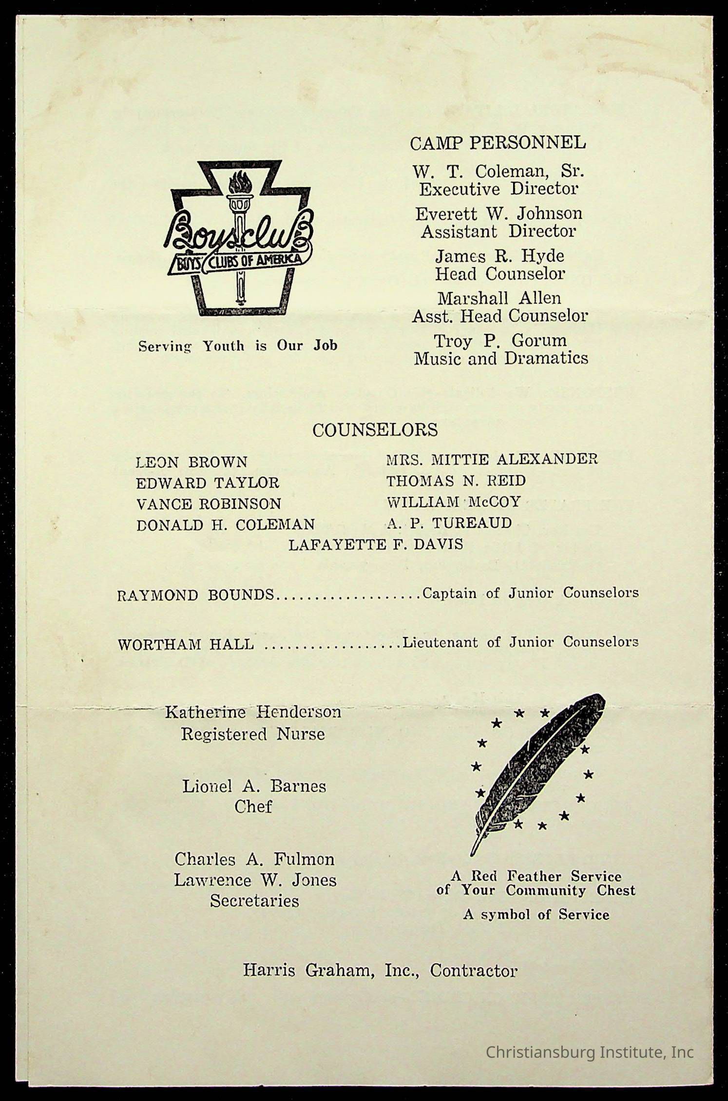 Copyright has been assigned to Christiansburg Institute Museum & Archives by Montgomery County Public Schools. For permission to publish materials created by the donor, contact CIMA@christiansburginstitute.com. Materials not created by Christiansburg Industrial Institute may still be under copyright.