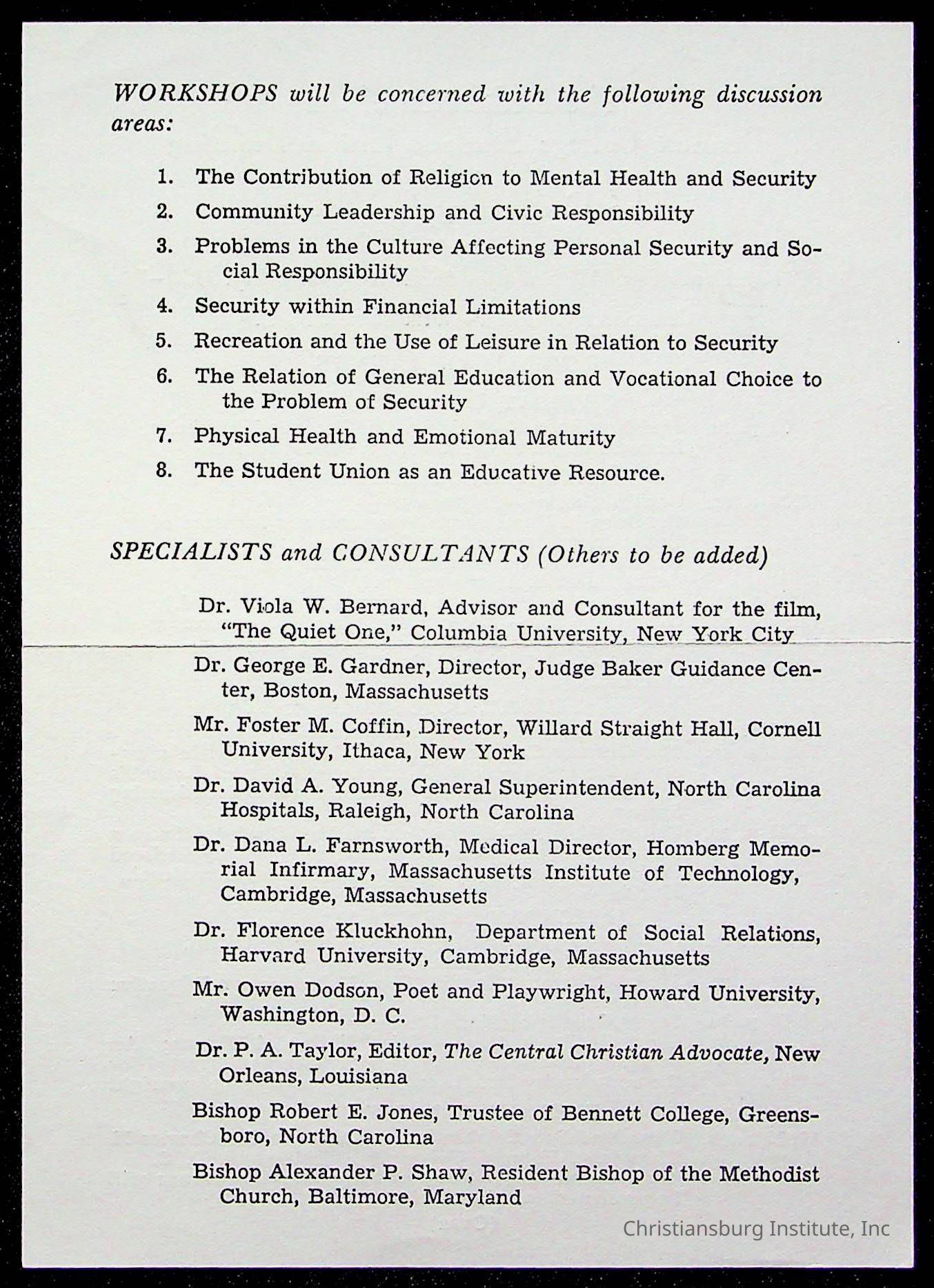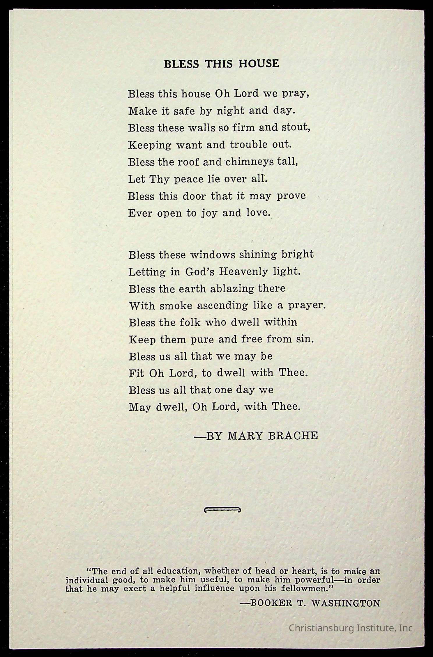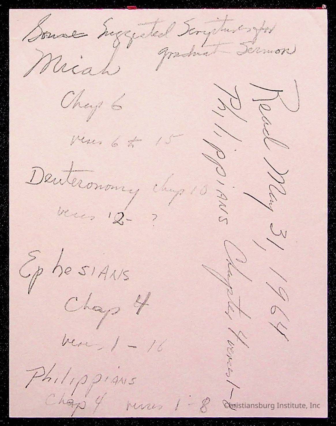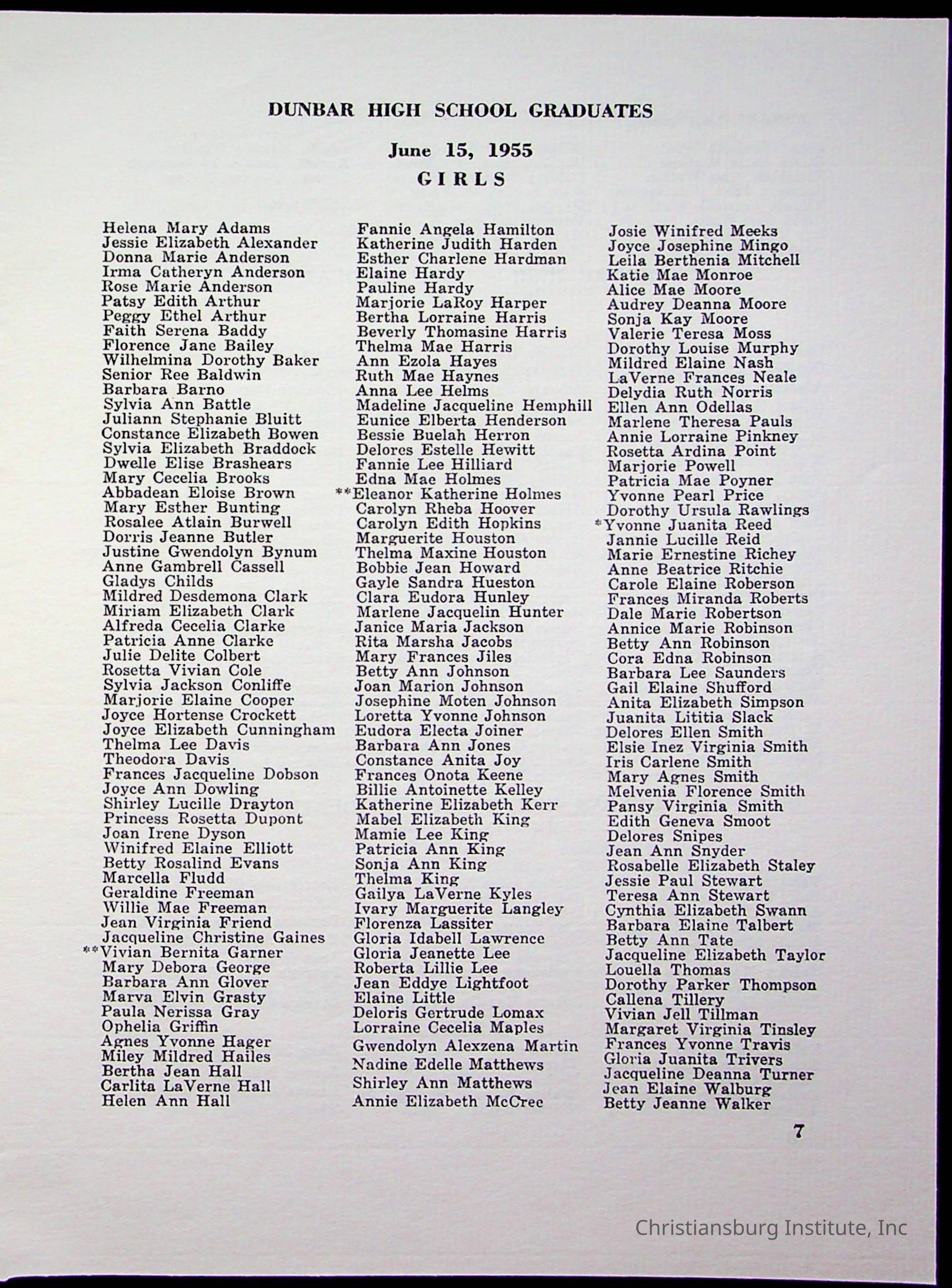 Copyright has been assigned to Christiansburg Institute Museum & Archives by Montgomery County Public Schools. For permission to publish materials created by the donor, contact CIMA@christiansburginstitute.com. Materials not created by Christiansburg Industrial Institute may still be under copyright.