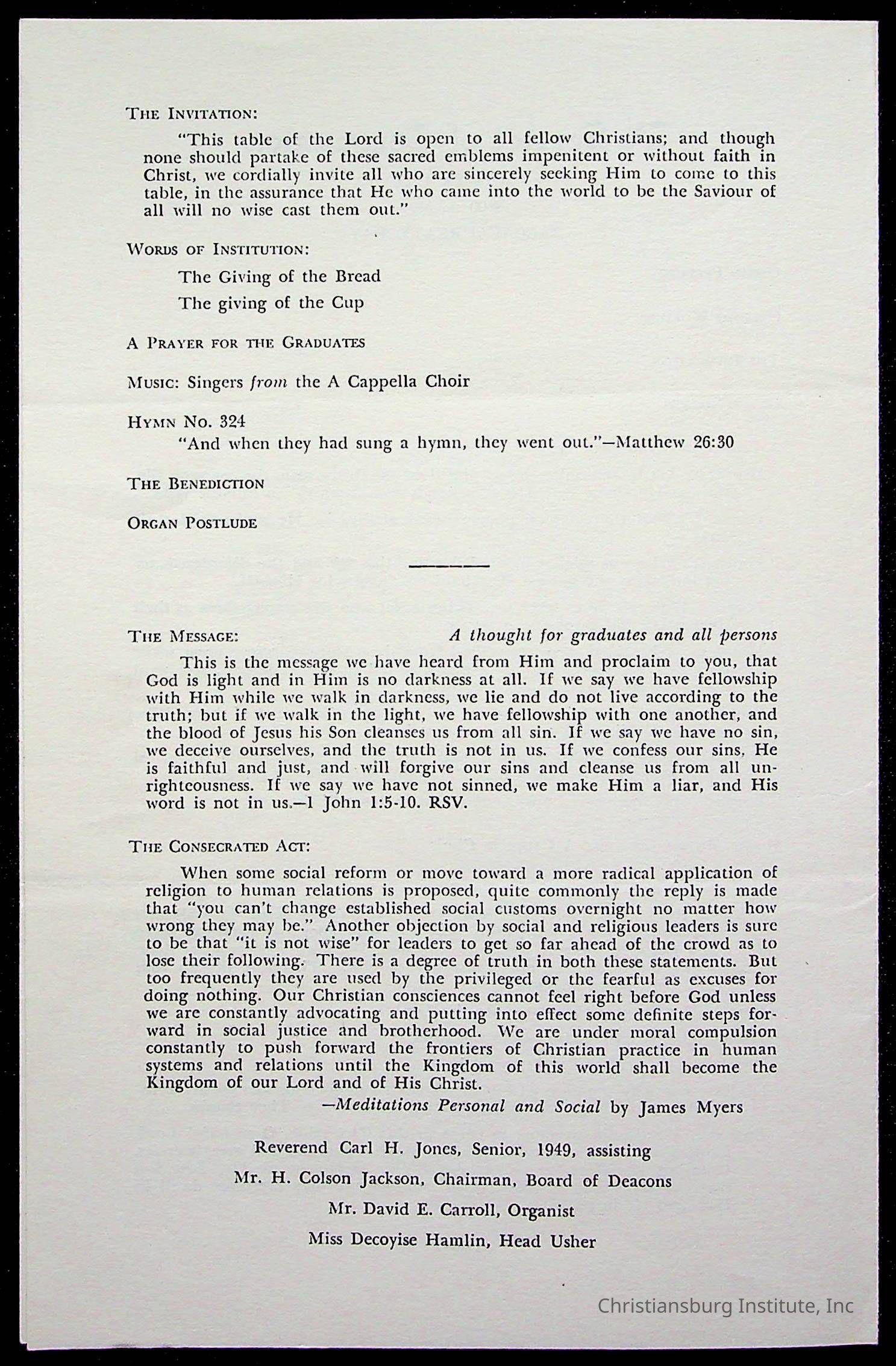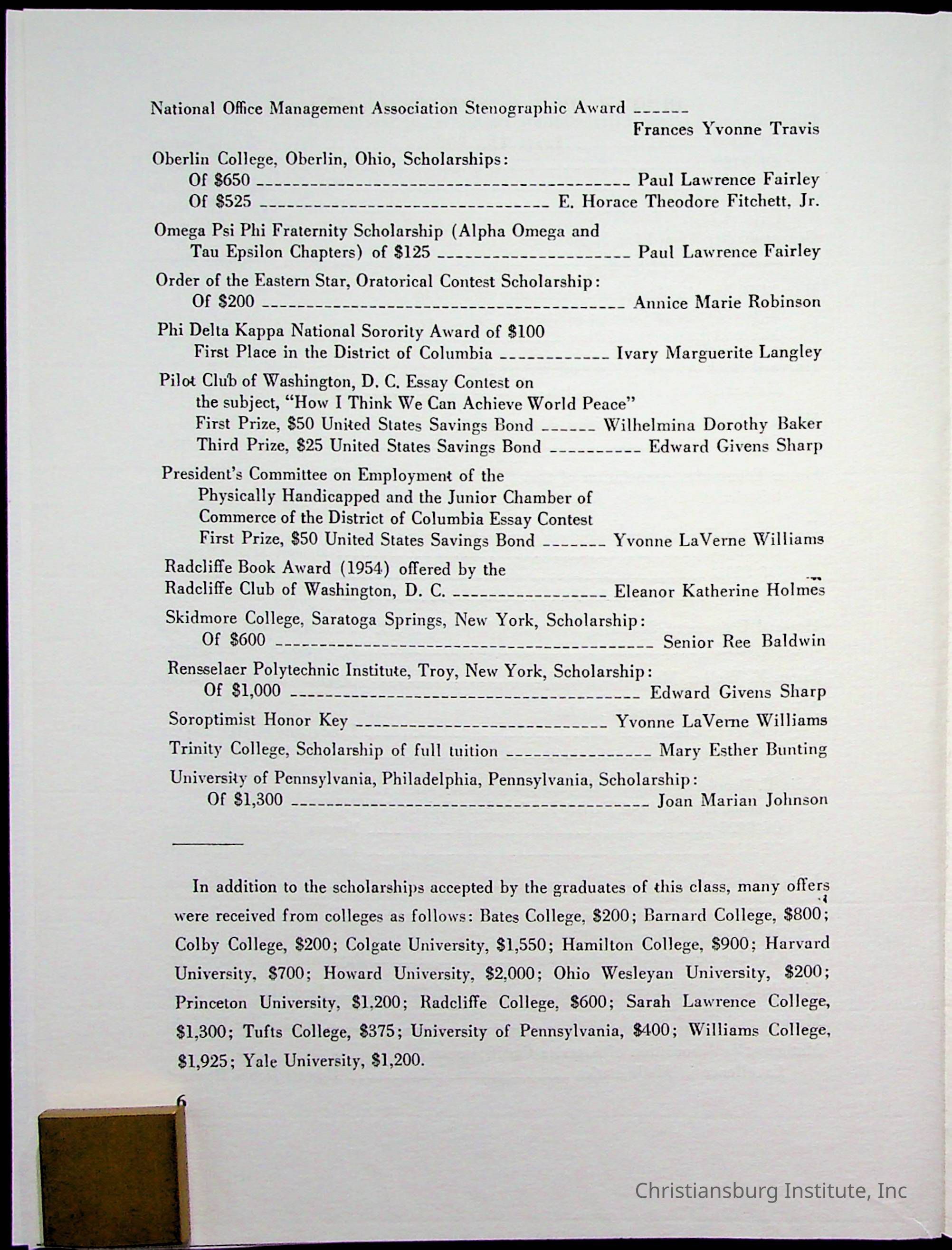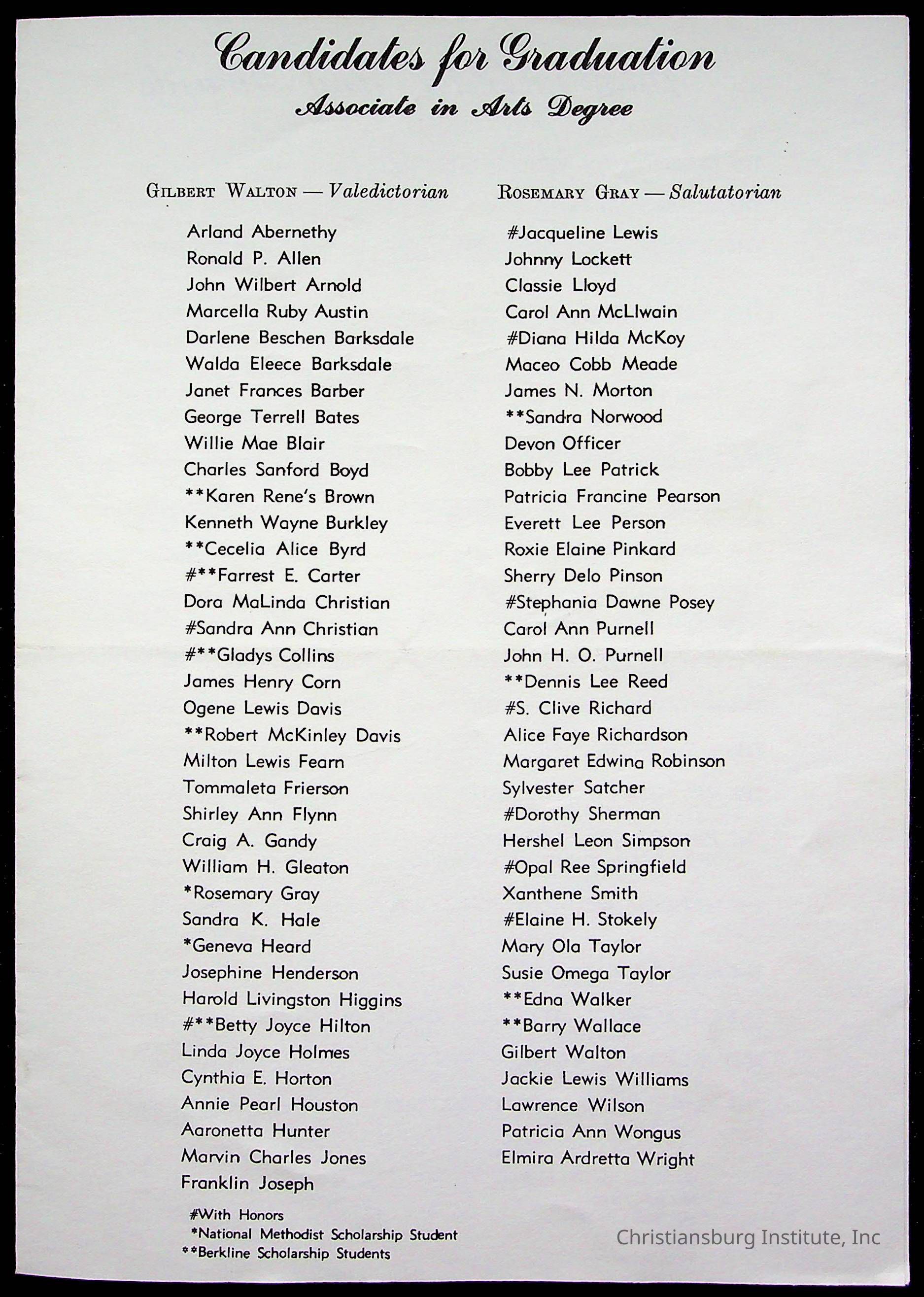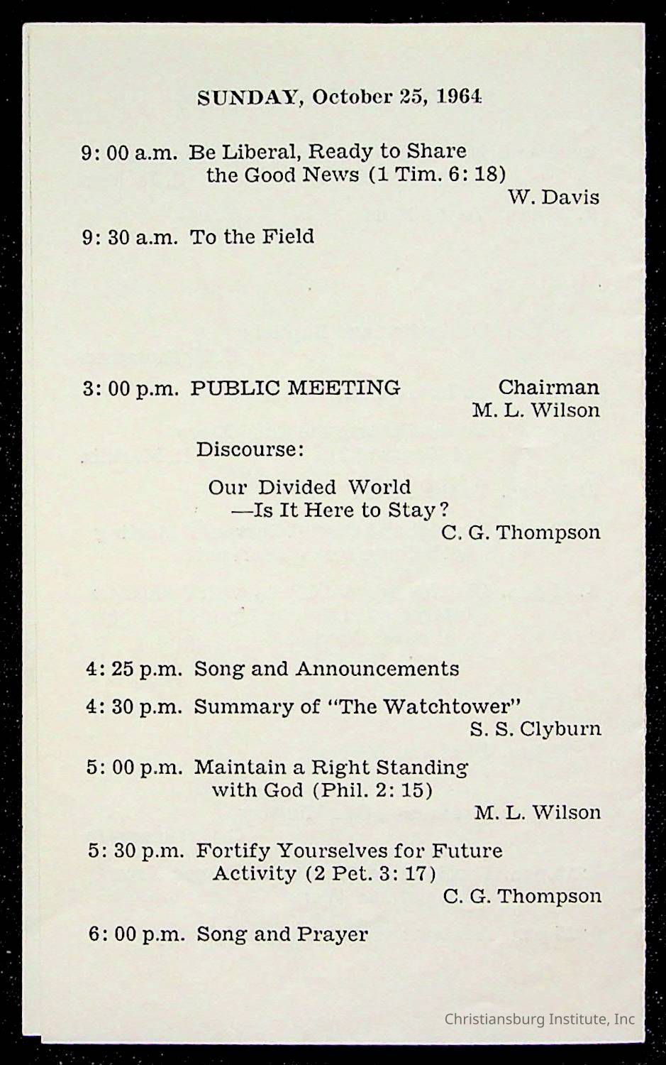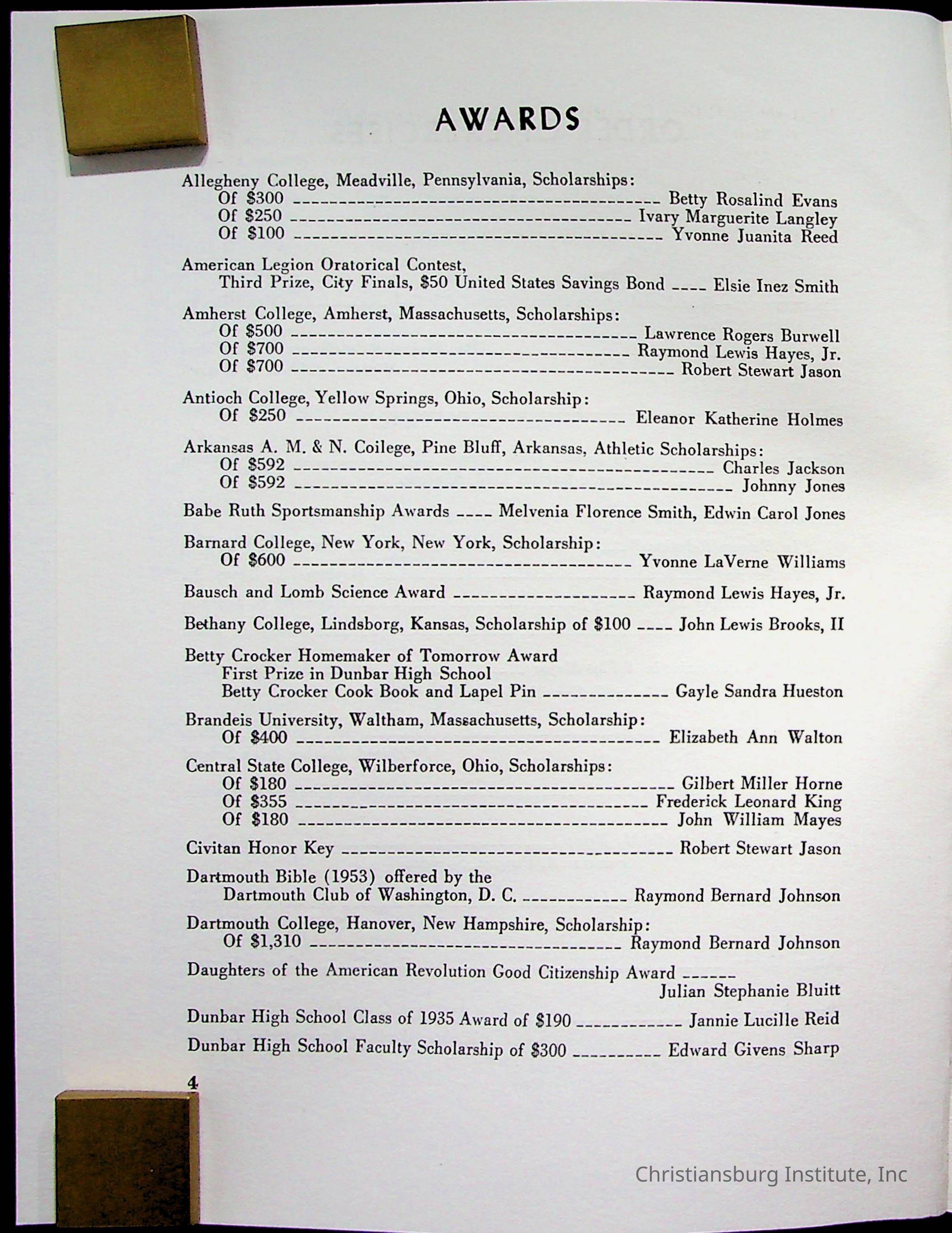 Copyright has been assigned to Christiansburg Institute Museum & Archives by Montgomery County Public Schools. For permission to publish materials created by the donor, contact CIMA@christiansburginstitute.com. Materials not created by Christiansburg Industrial Institute may still be under copyright.