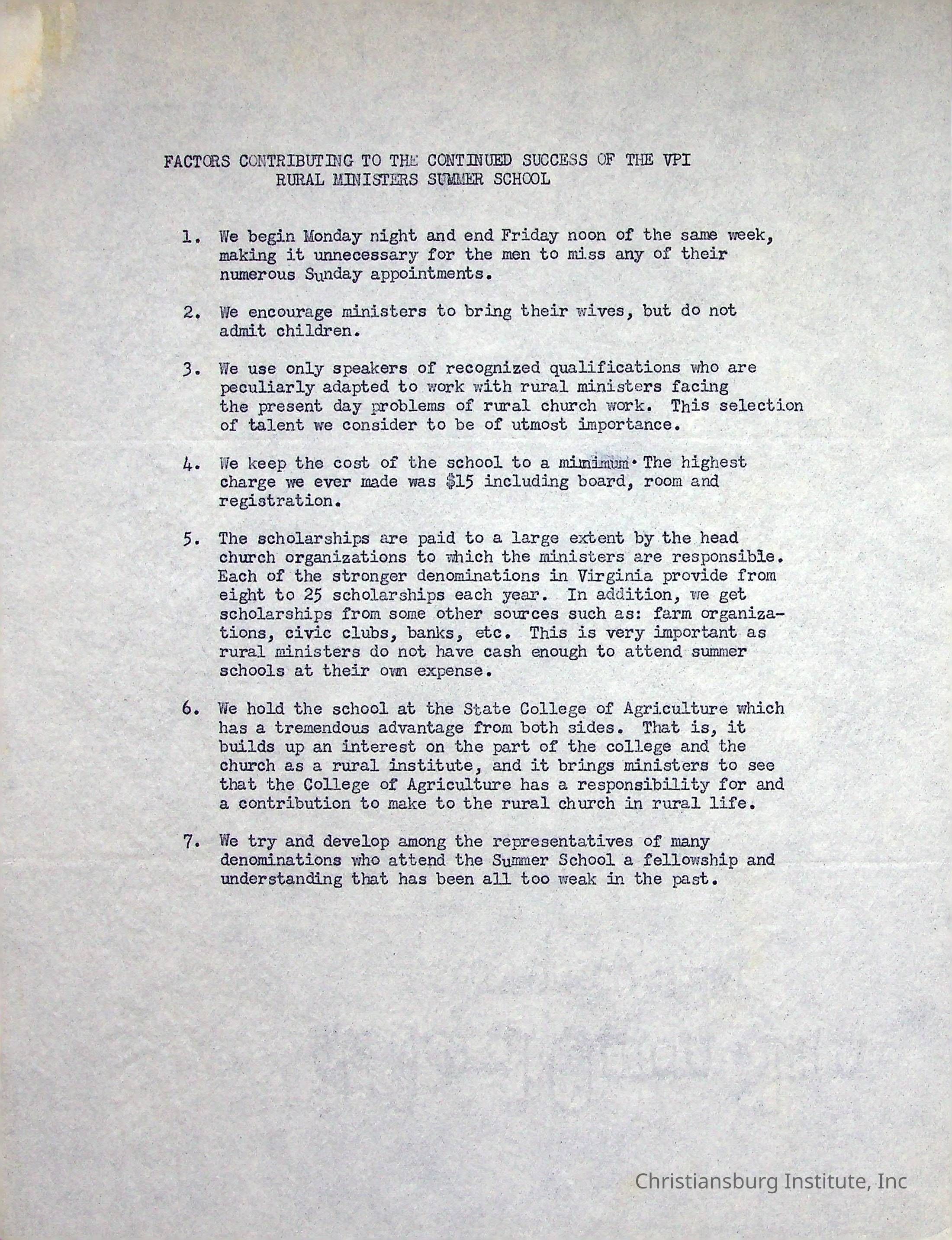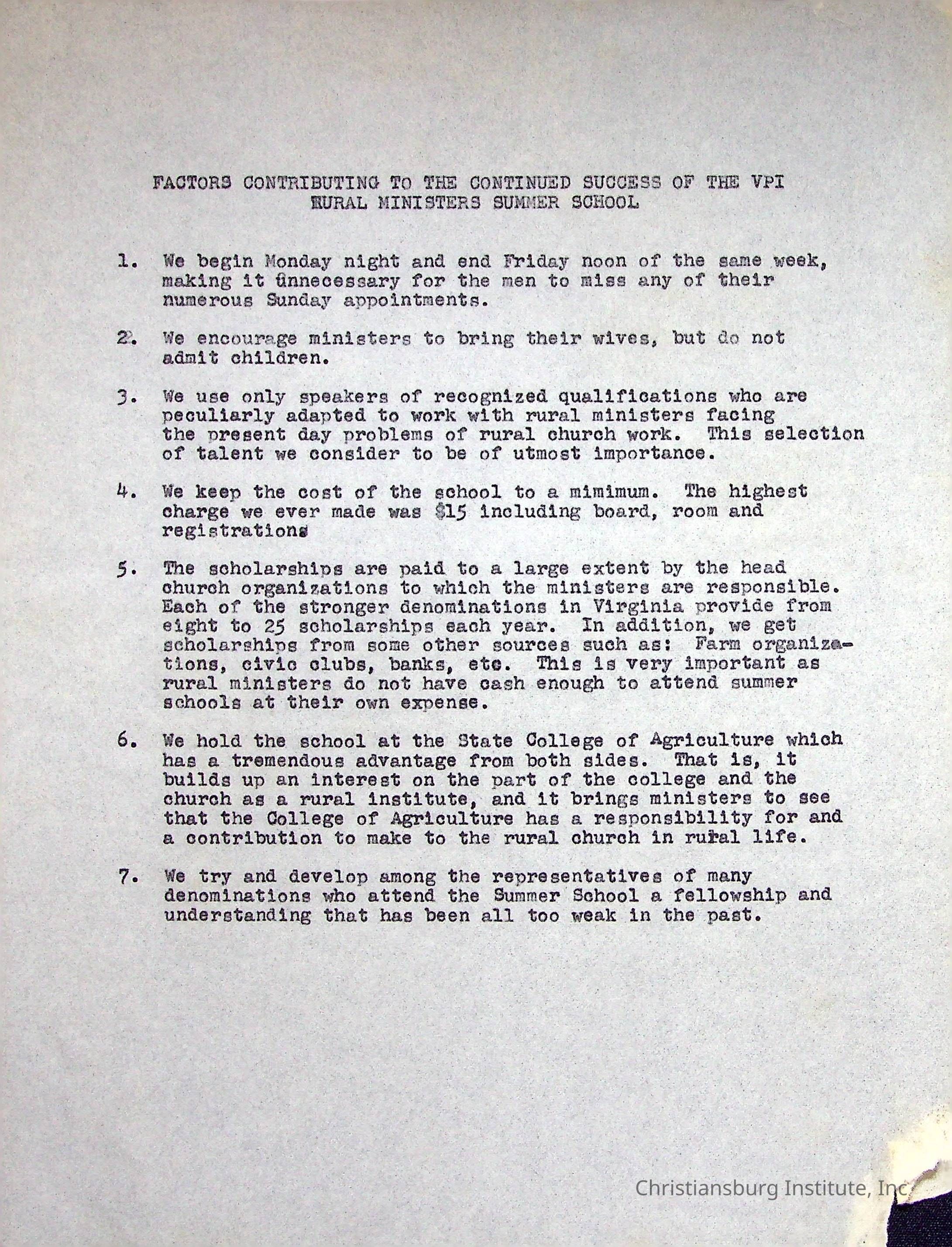 VPI Rural Ministers Summer School 1950Description