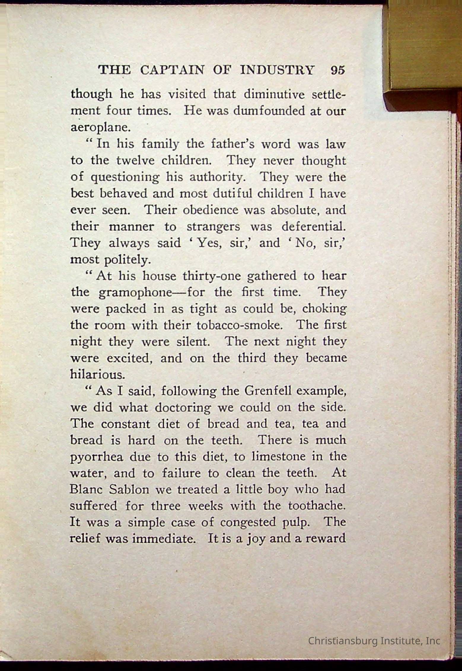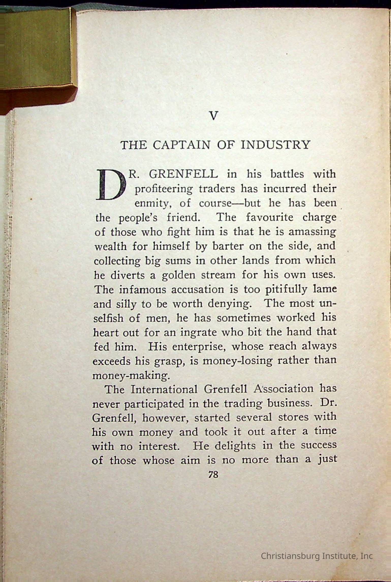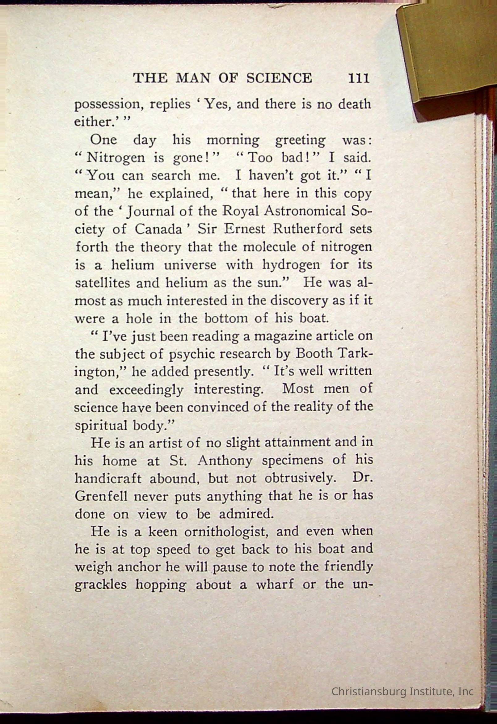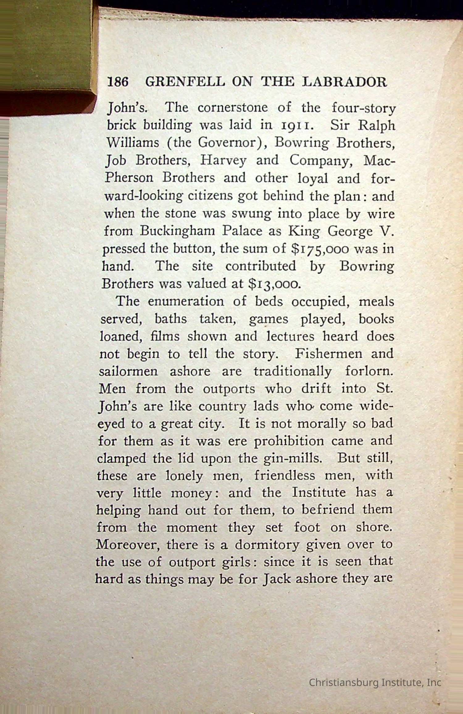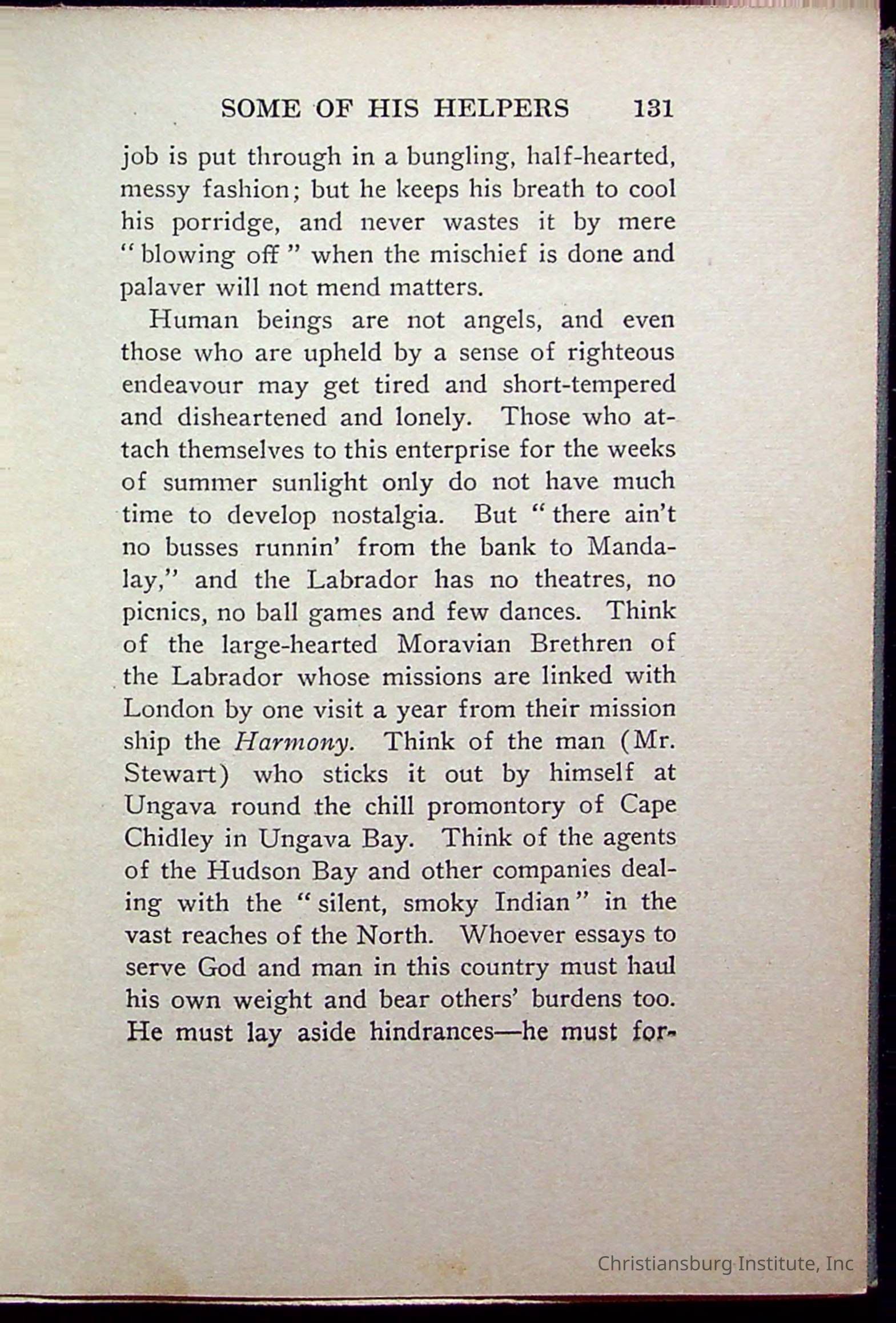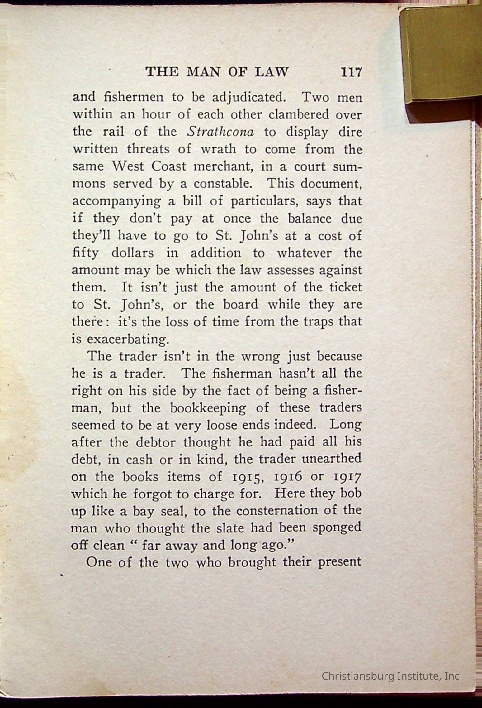 "With Grenfell on The Labrador" written by Fullerton L. Waldo and published by the Fleming H. Revell Company in the year 1920. The book was in the Christiansburg Institute library.