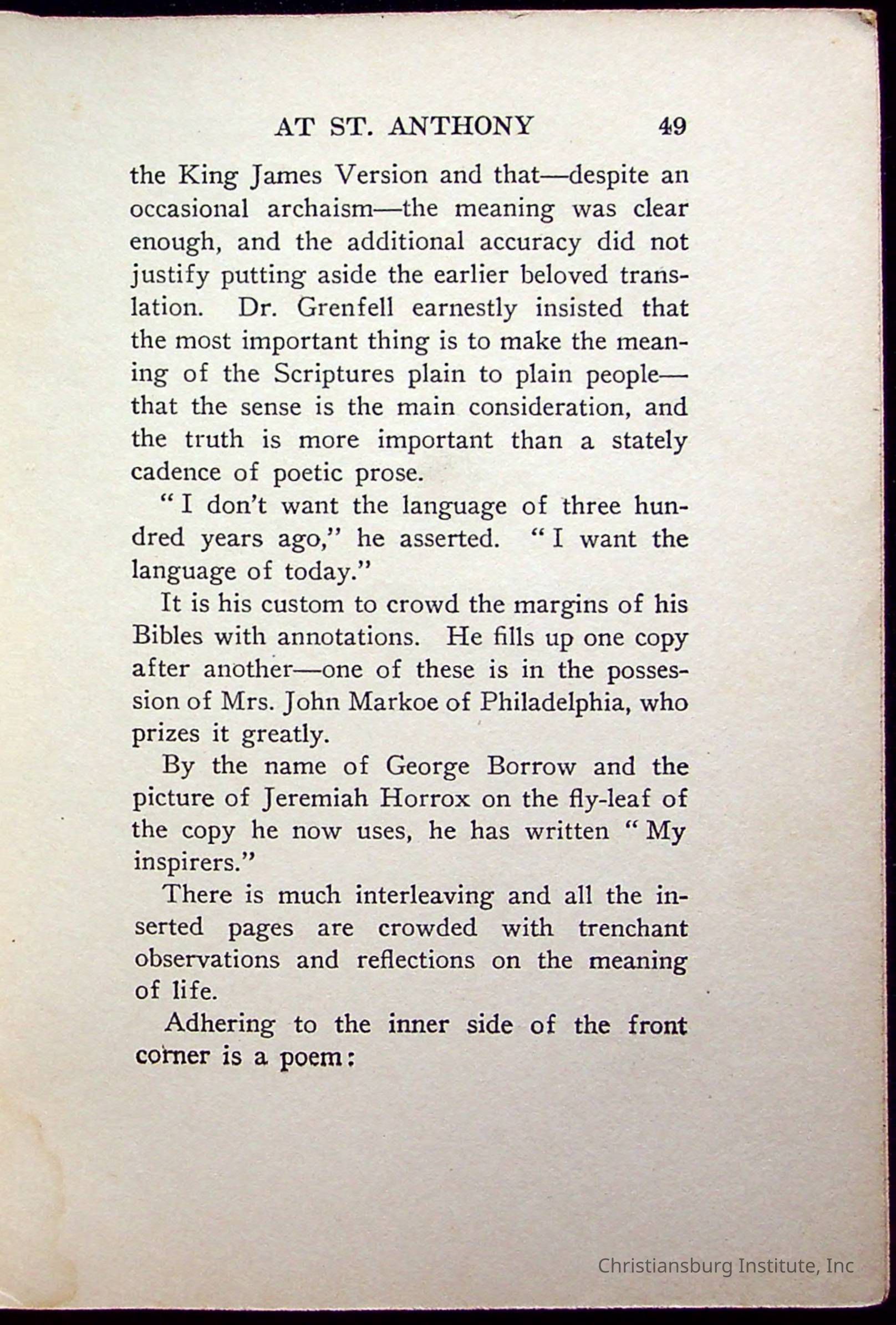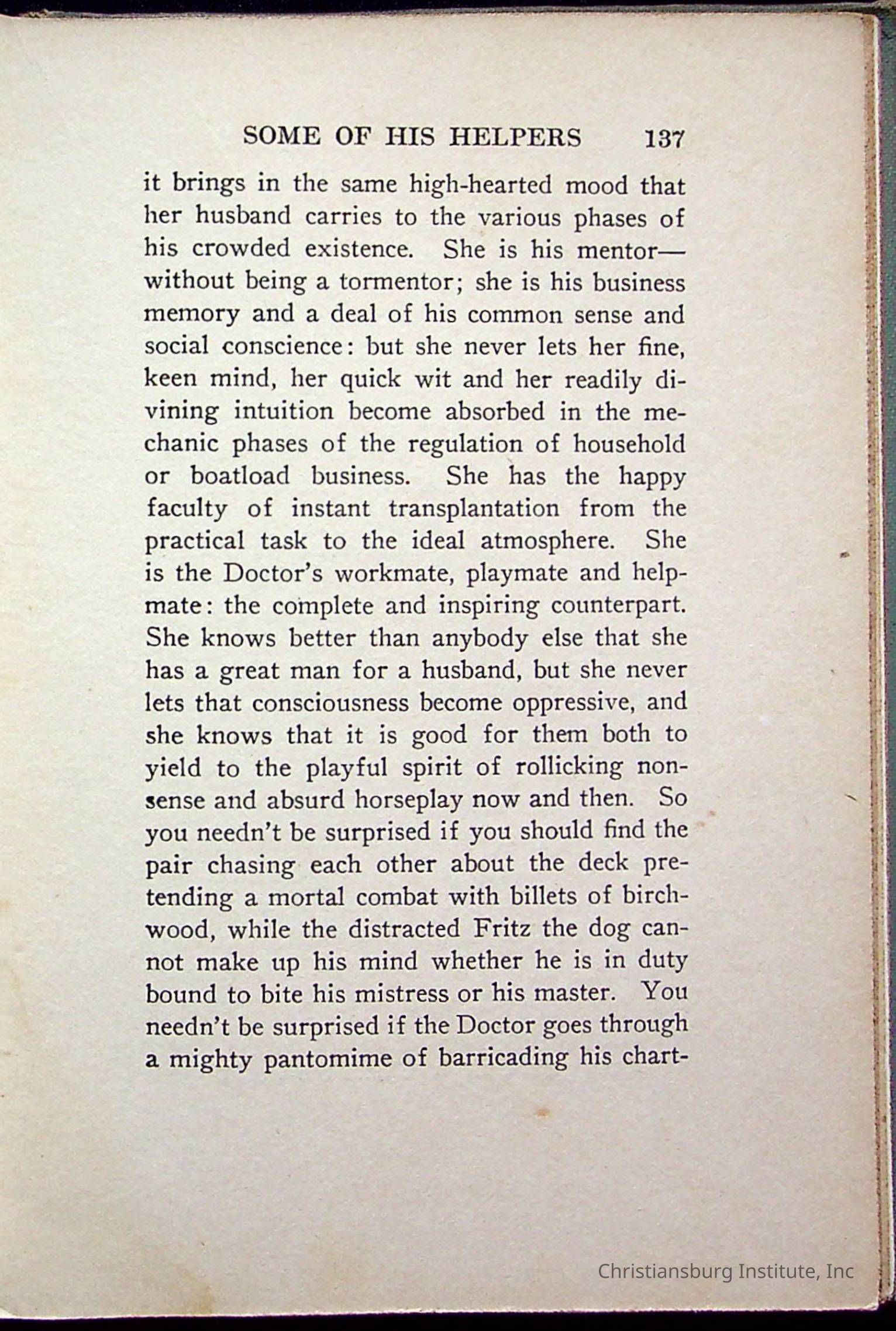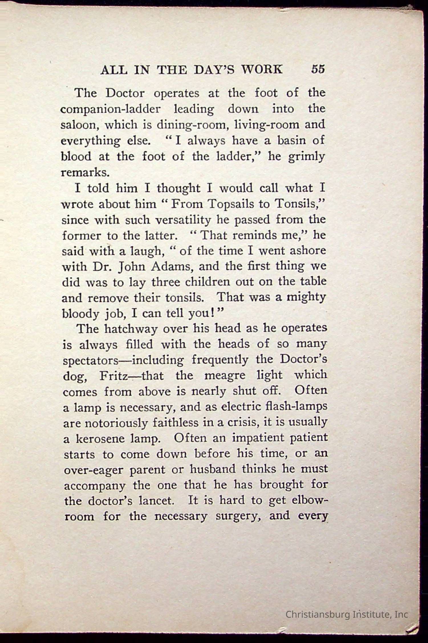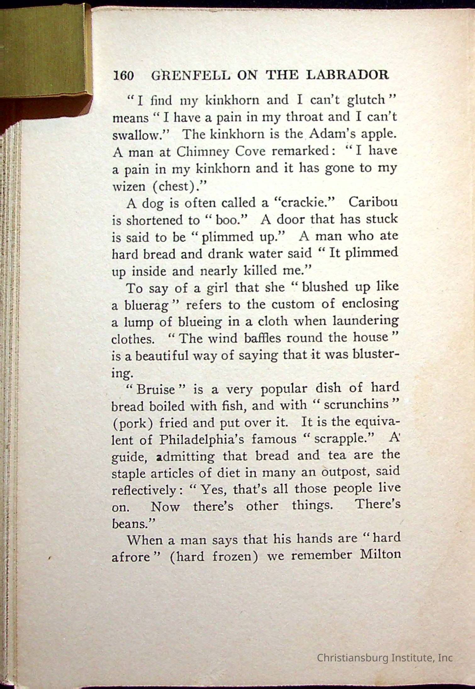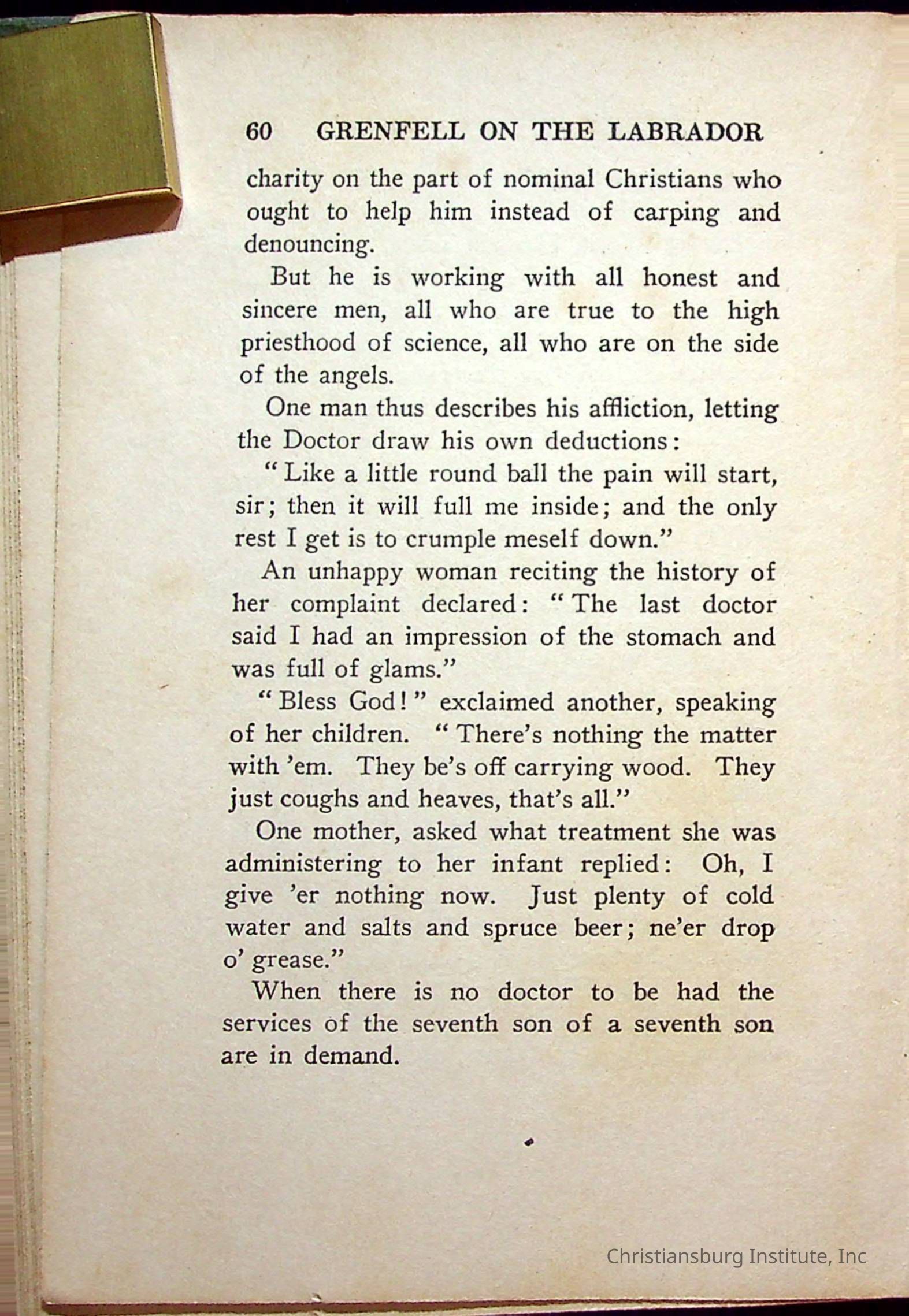 "With Grenfell on The Labrador" written by Fullerton L. Waldo and published by the Fleming H. Revell Company in the year 1920. The book was in the Christiansburg Institute library.