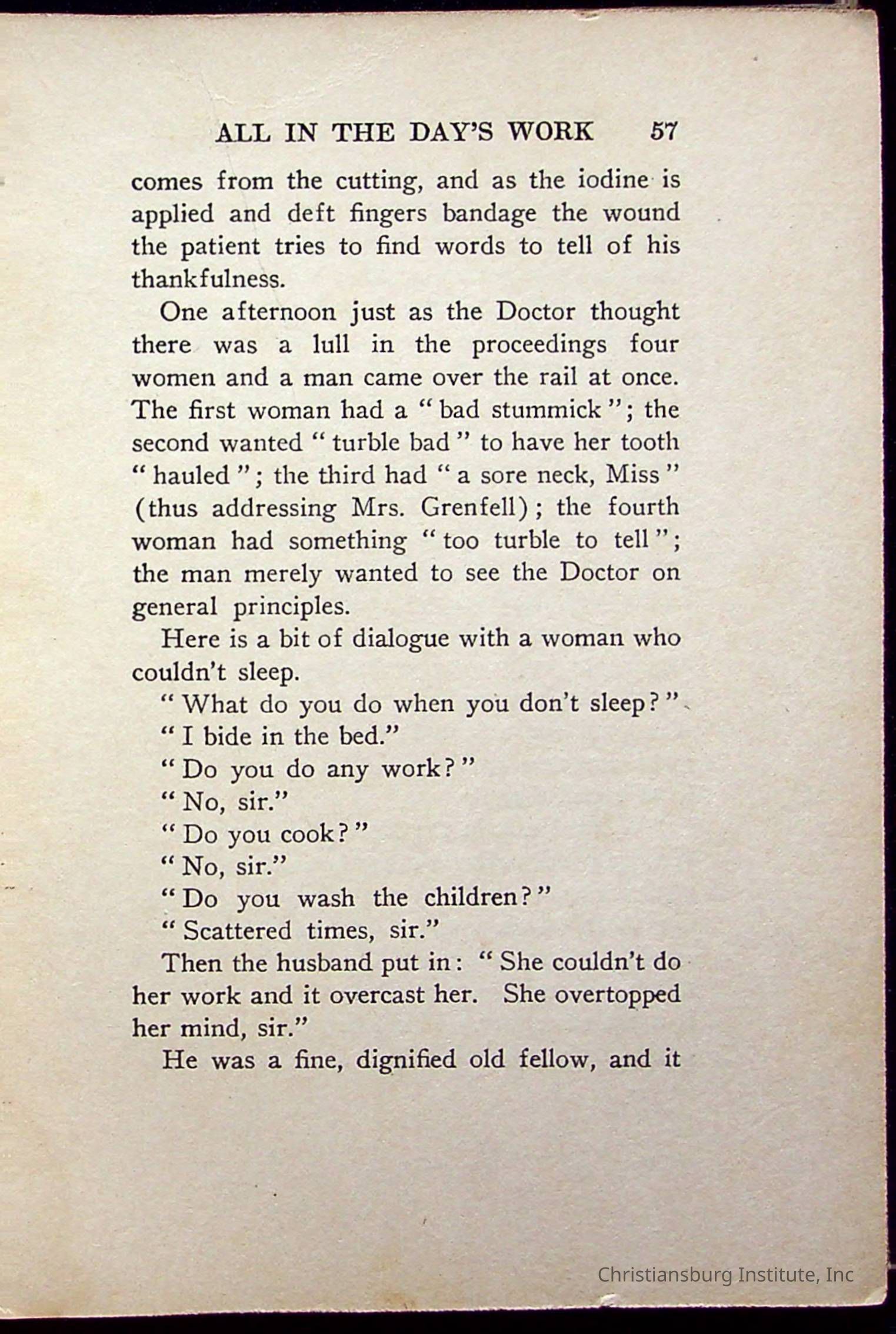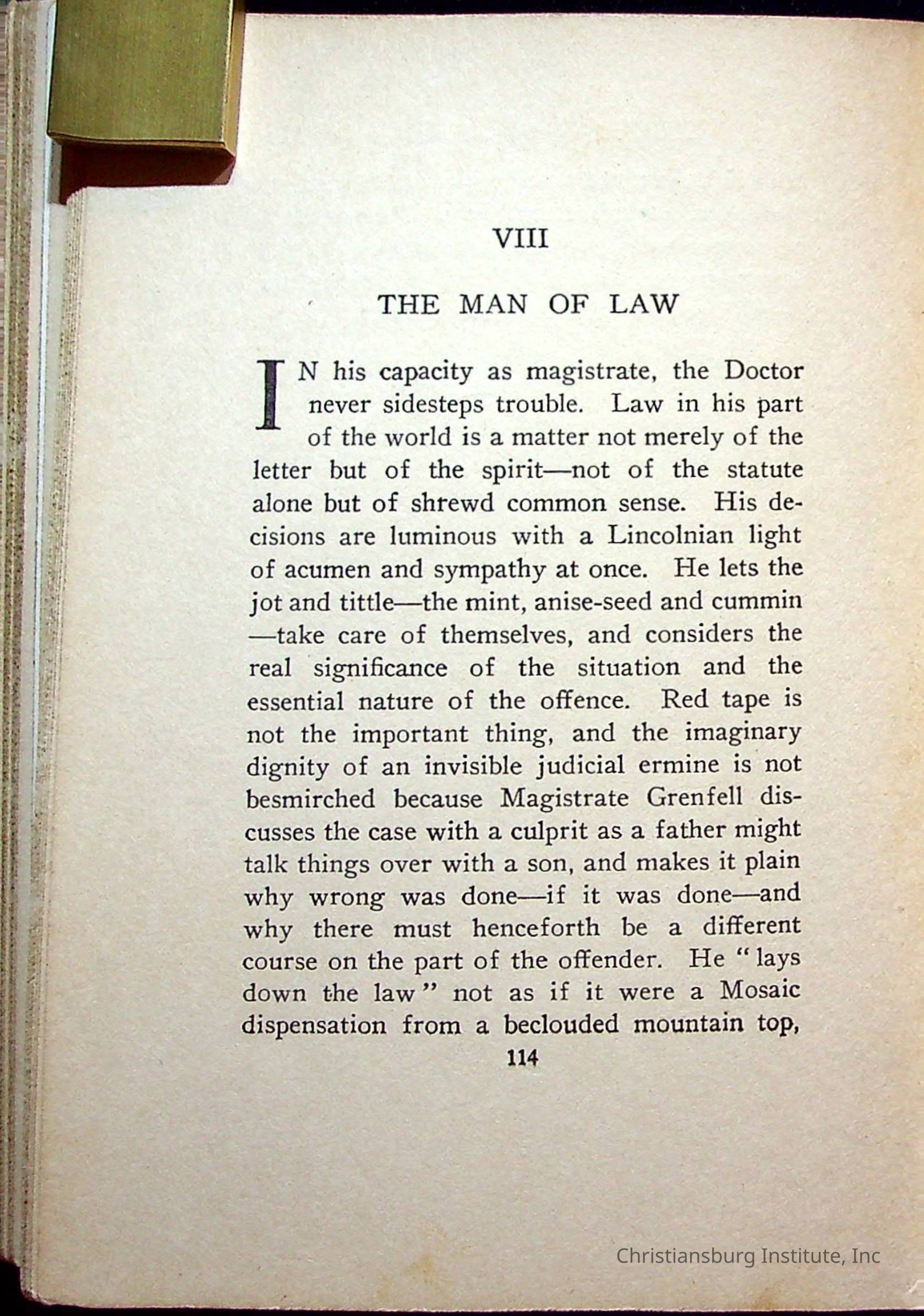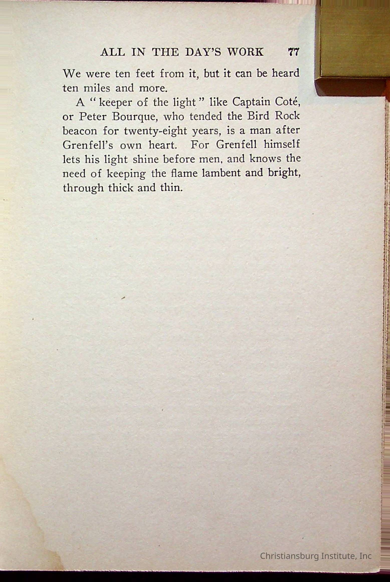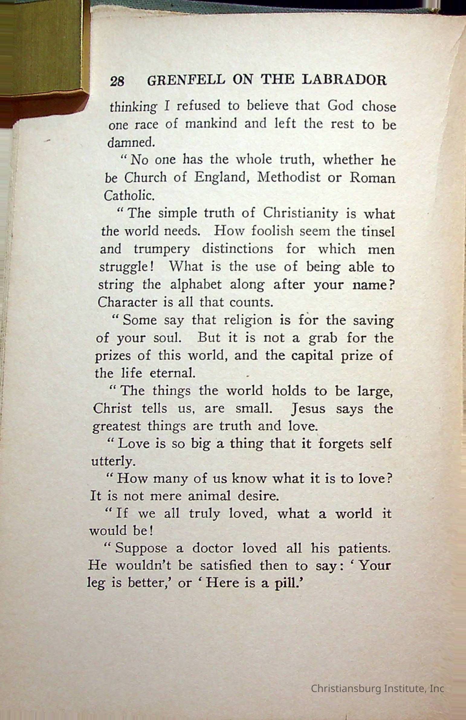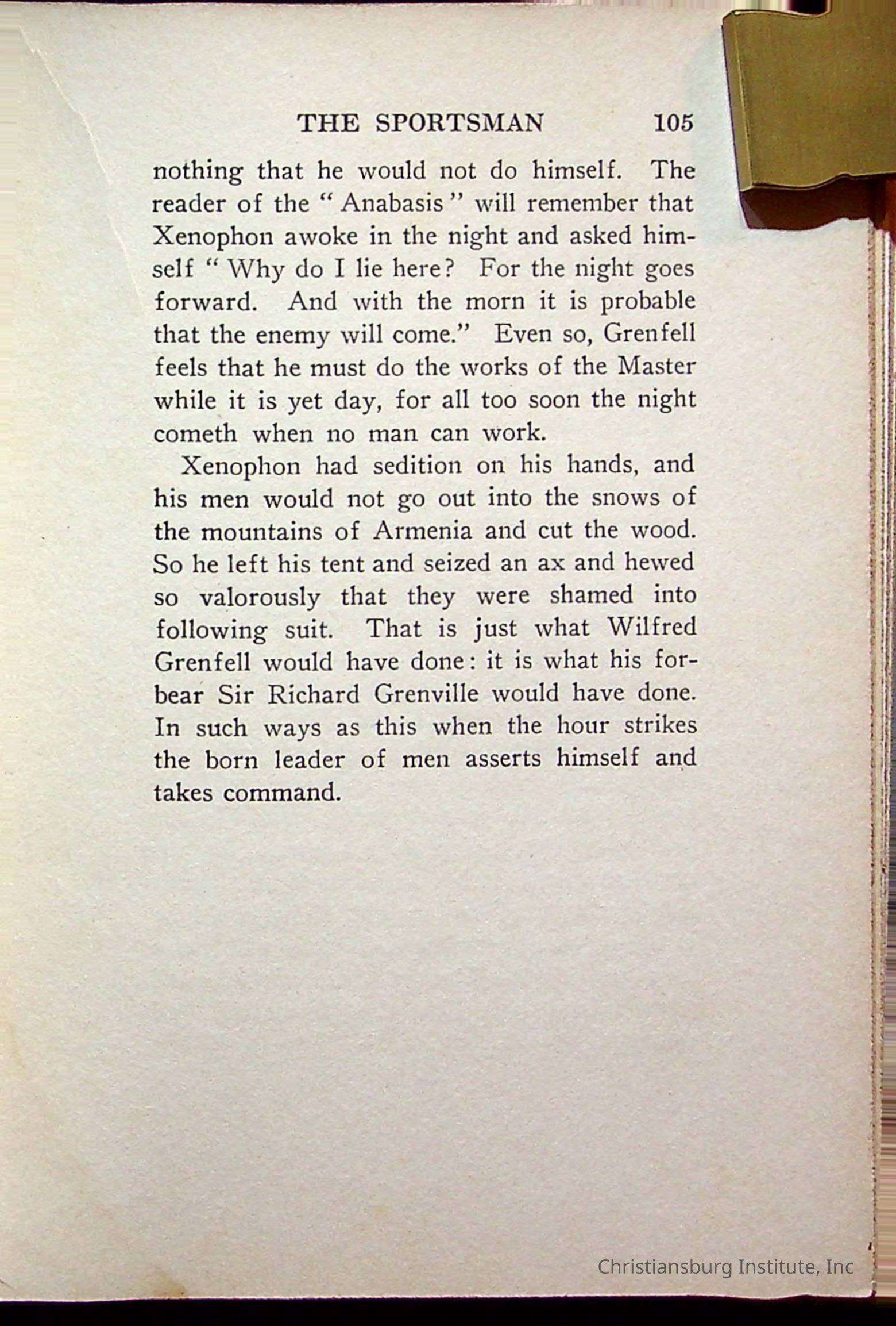 "With Grenfell on The Labrador" written by Fullerton L. Waldo and published by the Fleming H. Revell Company in the year 1920. The book was in the Christiansburg Institute library.