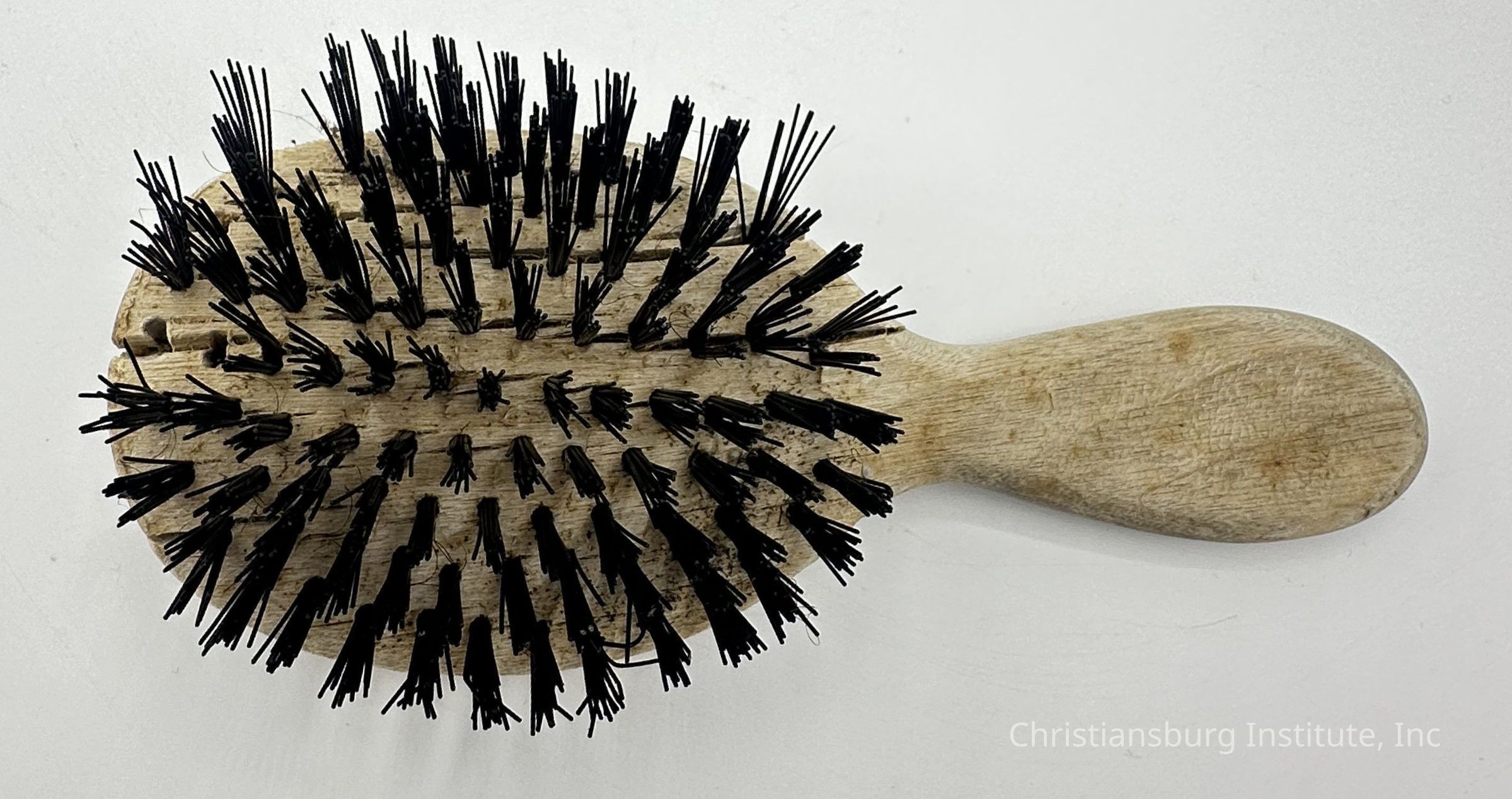 A wooden bristle brush used in cosmetology classes at Christiansburg Industrial Institute, where Amanda DeHart was the teacher.Collection