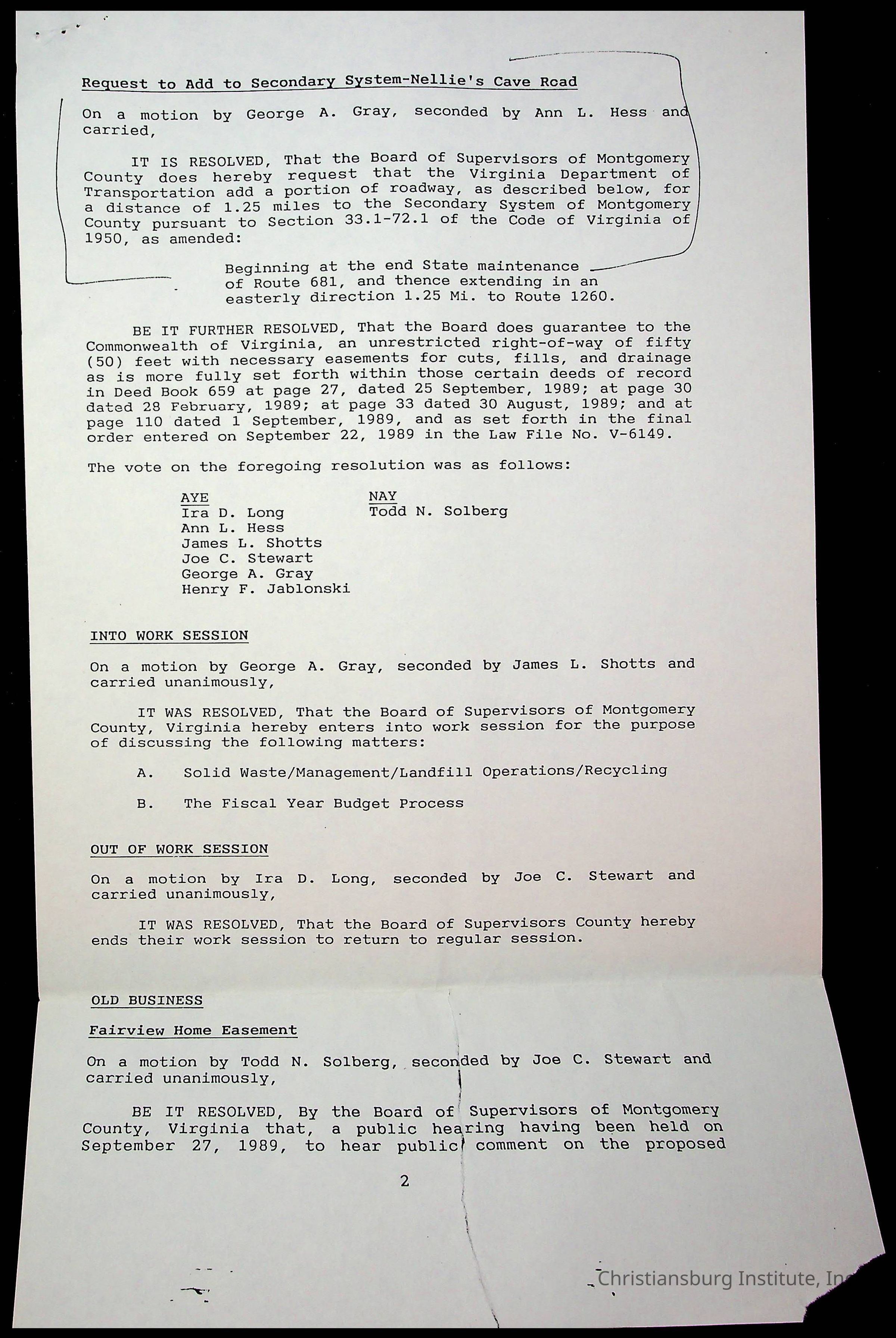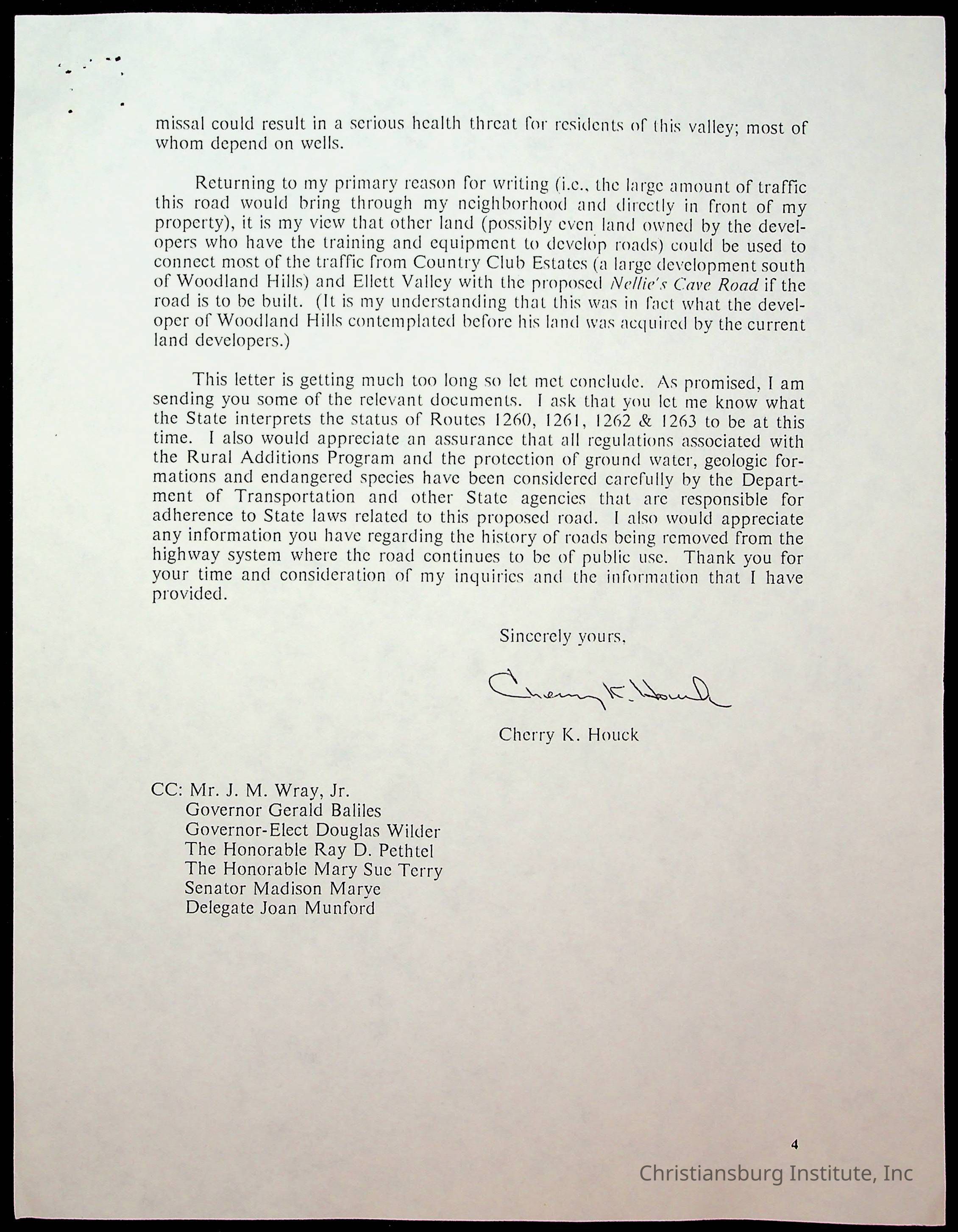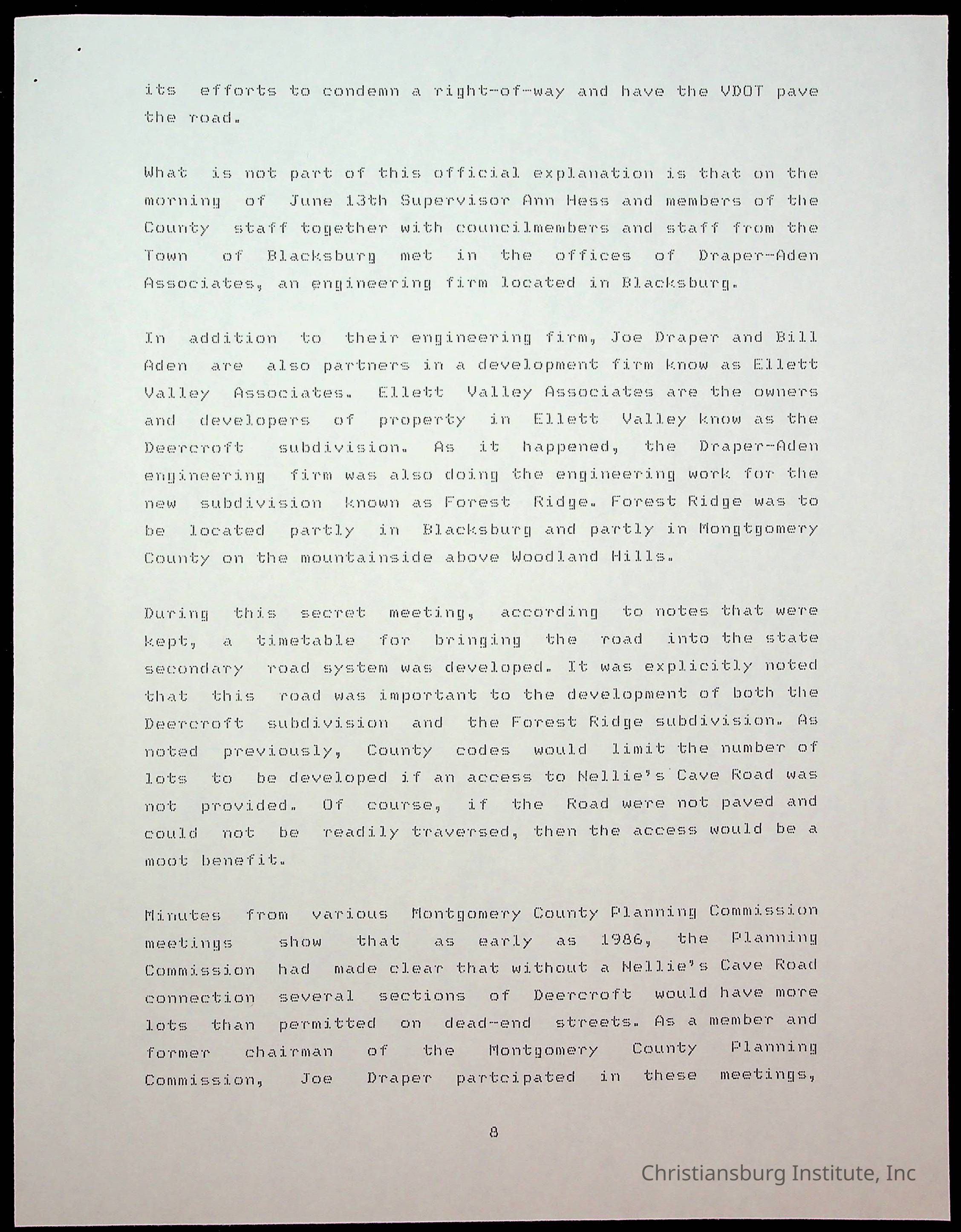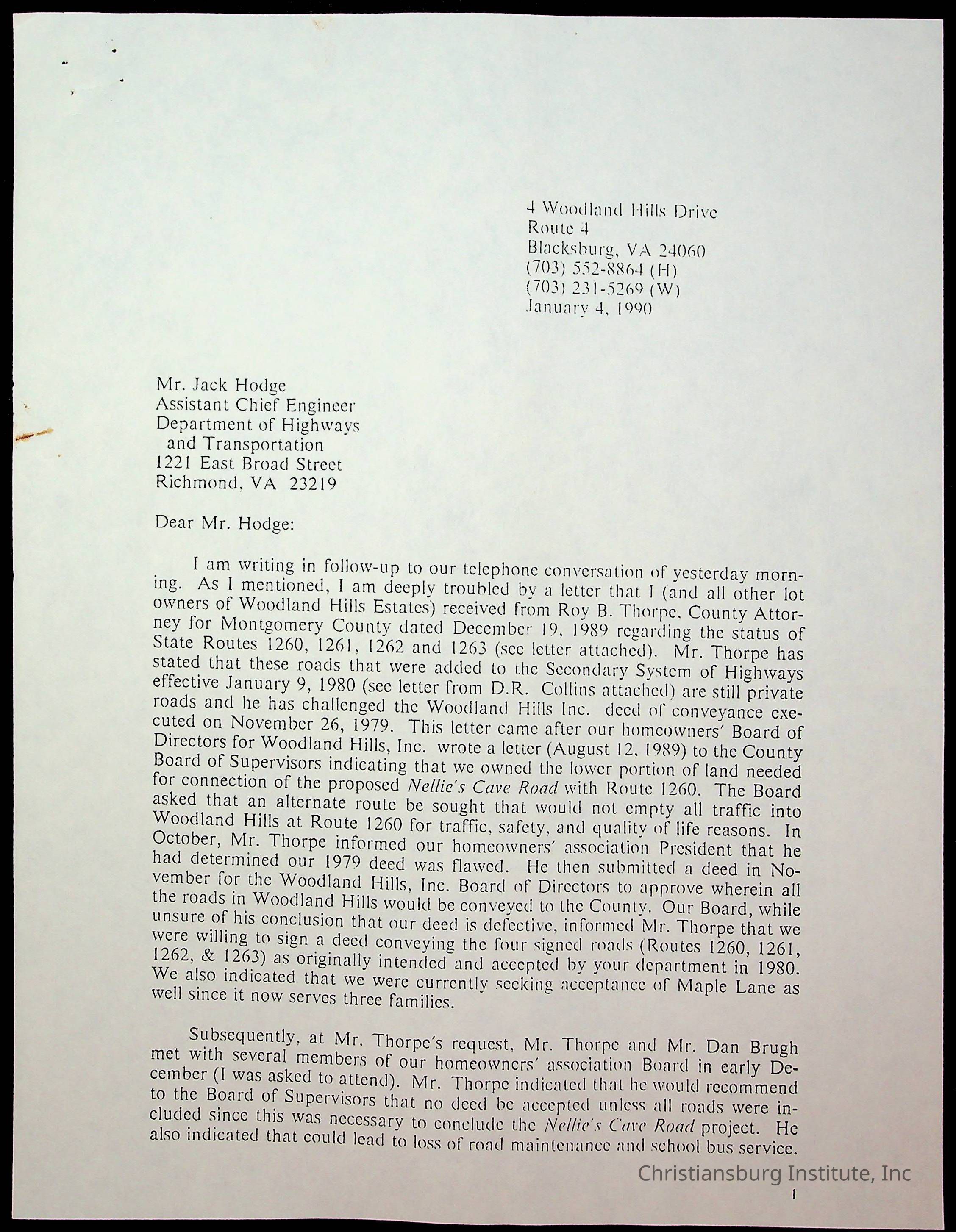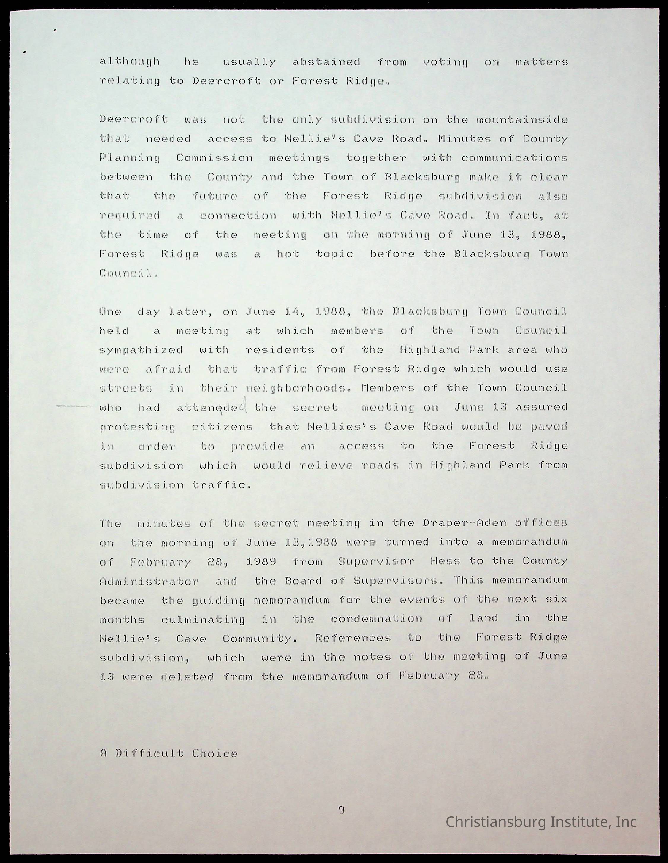 An archive of documents about the group, Woodland Hills, Inc, and their involvement with the Nellies Cave Road project, complied by Elizabeth Fine circa 1990s.