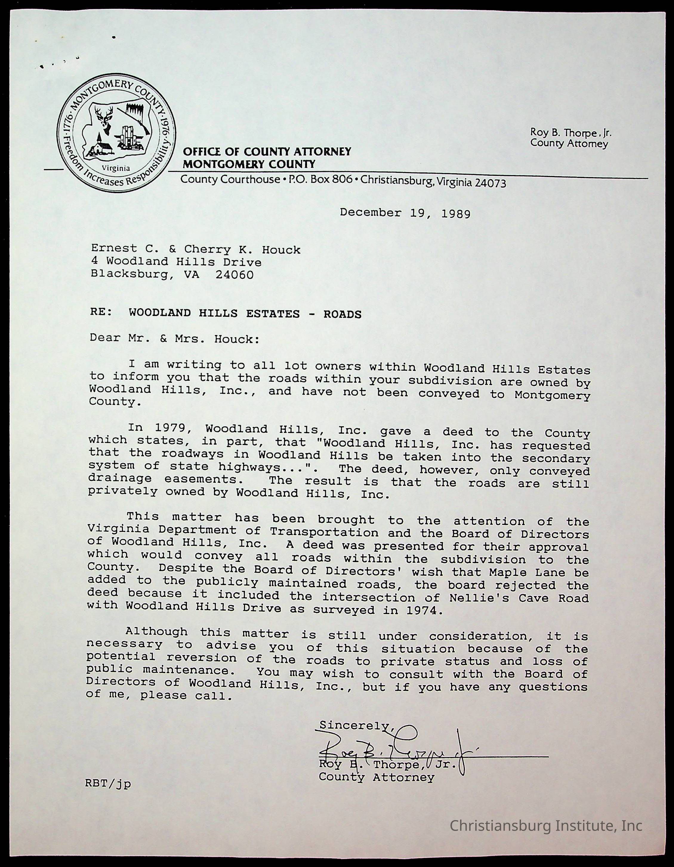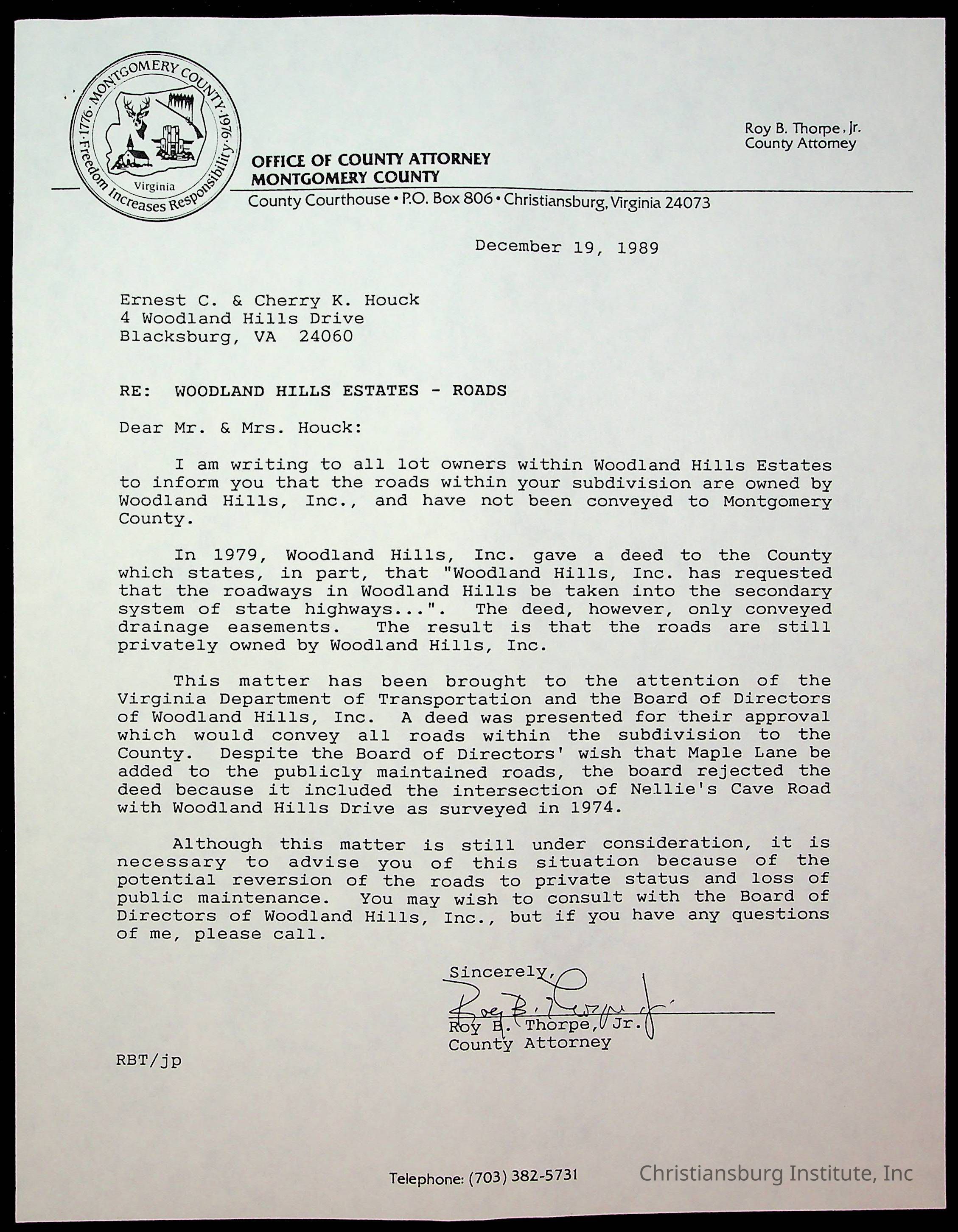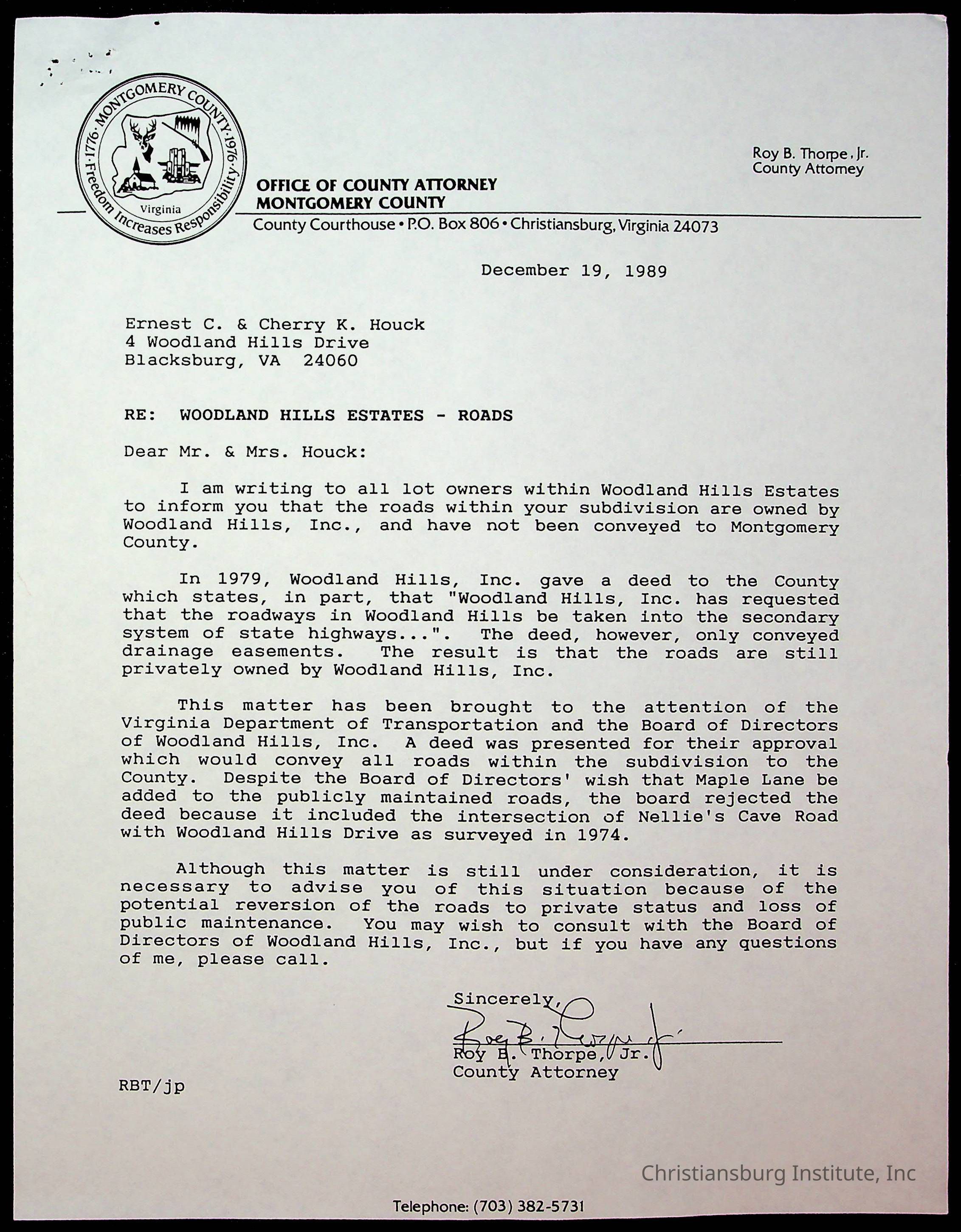 Thomas, Betty S., Johnson, Barry, Beliveau, Joyce, Woodland Hills, Inc, Montgomery County, Fine, Elizabeth C.