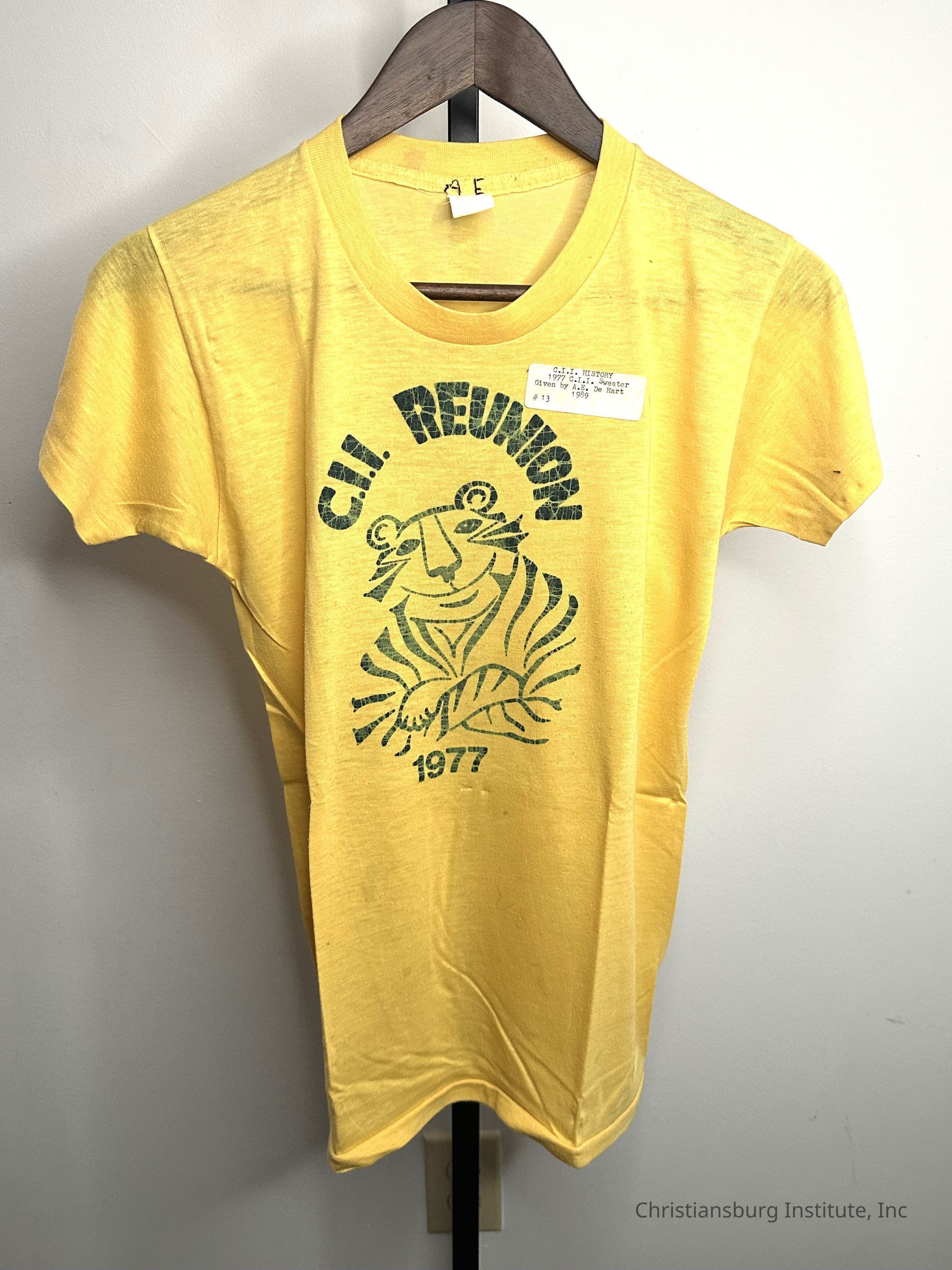 A yellow C.I.I. reunion t-shirt donated by Amanda DeHart dated 1977.Collection