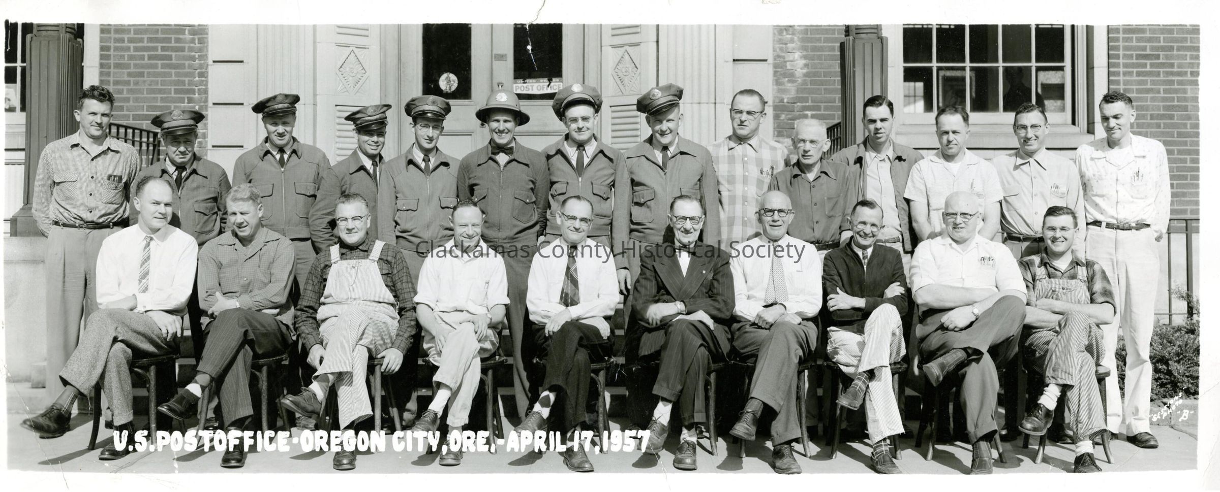 Man in center in white shirt is David Leonard, Asst. Postmaster.