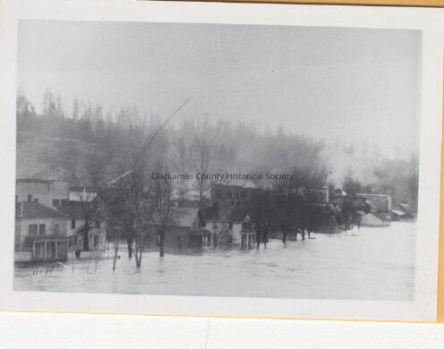 The 1890 flood from the bridge toward 6th and Water Street. The Ermatinger house is on the far left. (JAH 12/2022) Gardner # 352