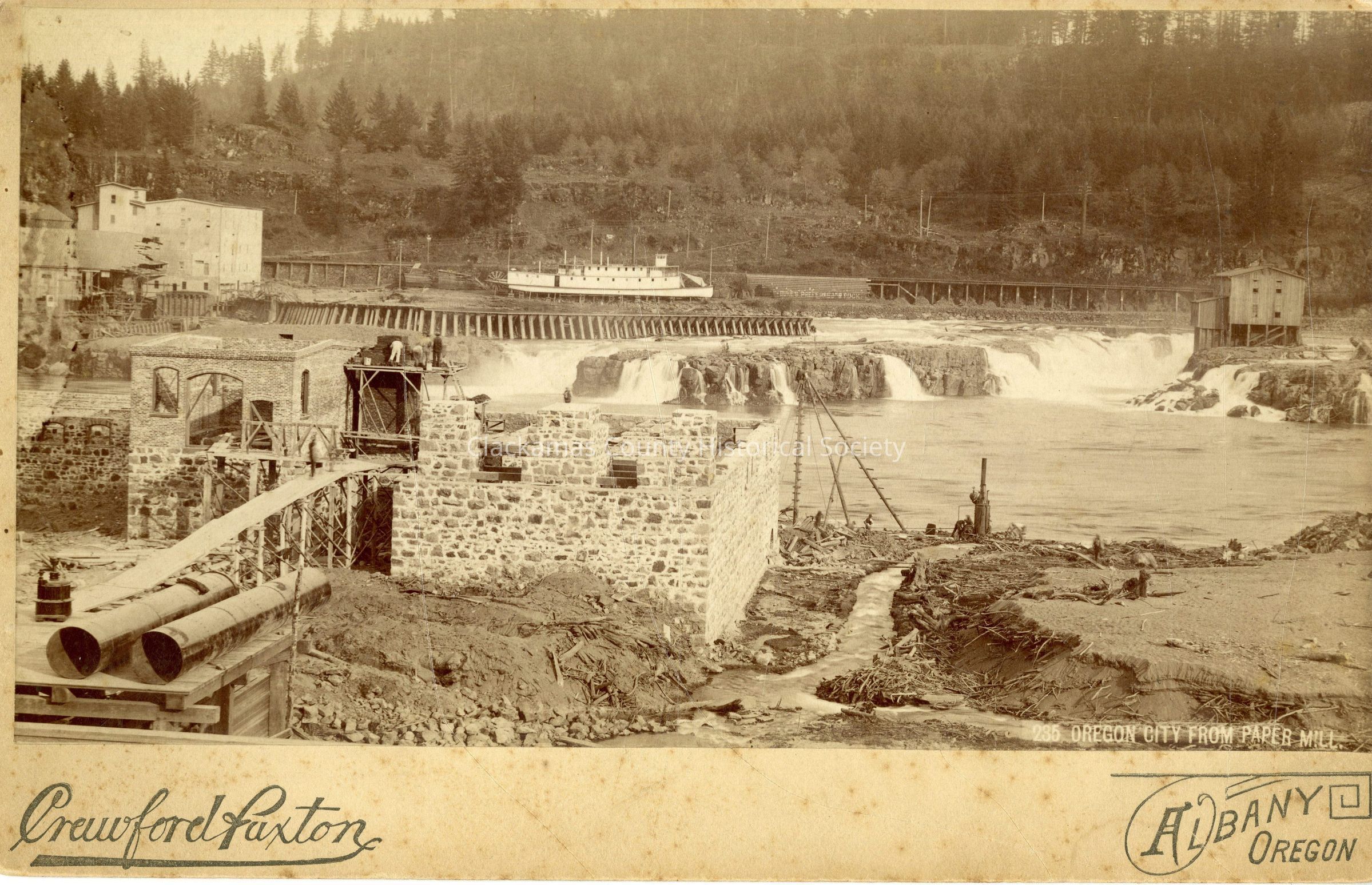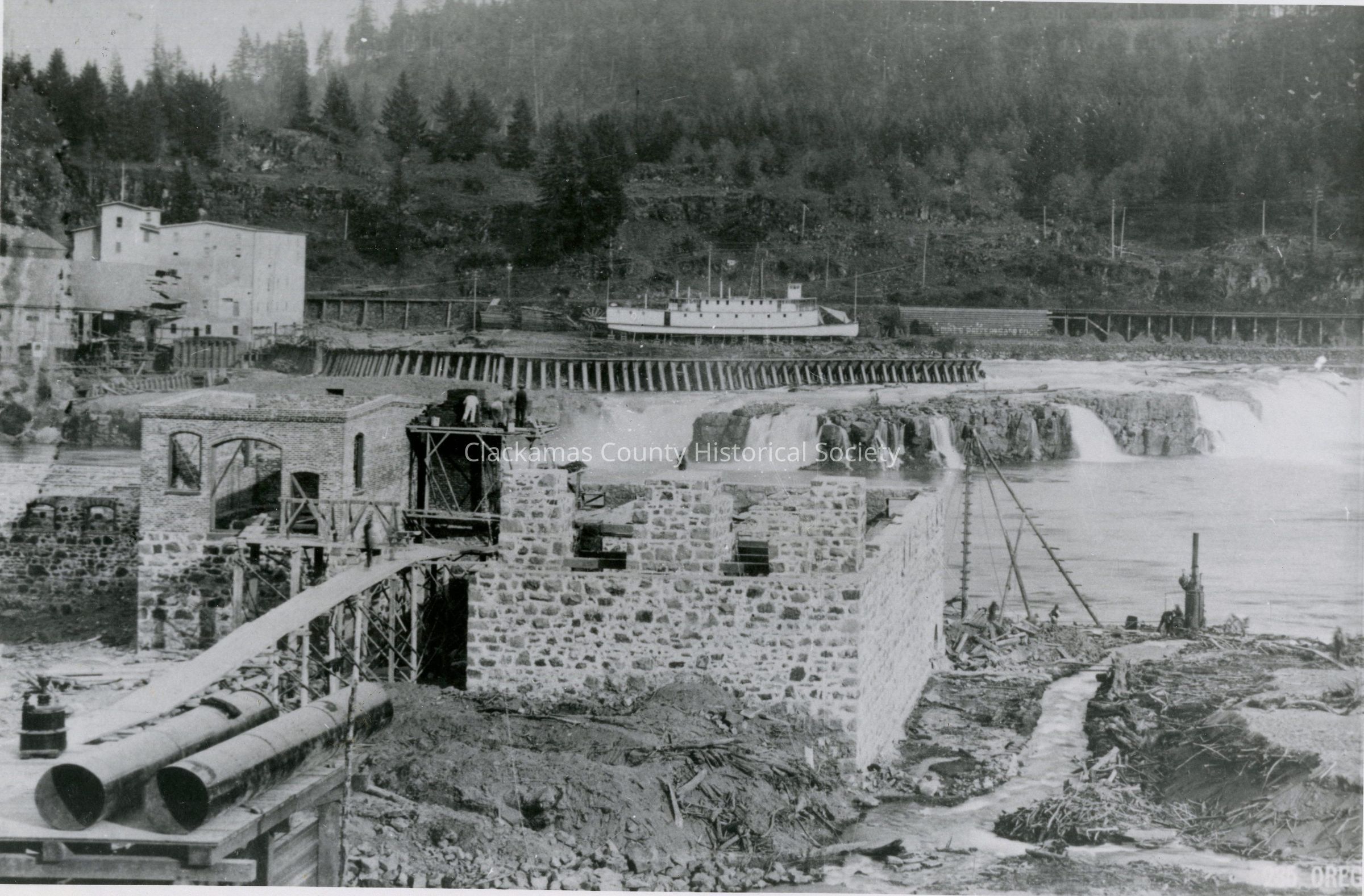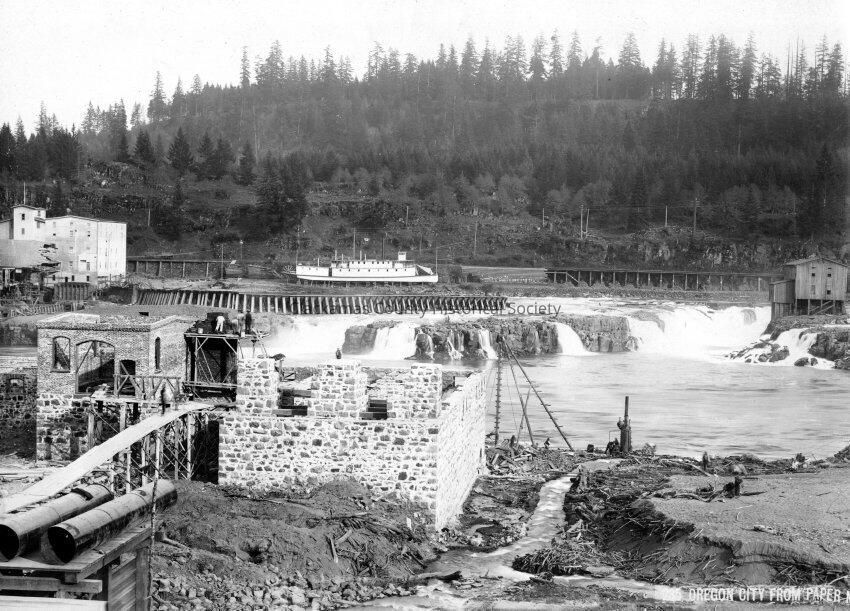 Rebuilding steam shed at the Crown Paper Mill after the Willamette River 1890 flood.
