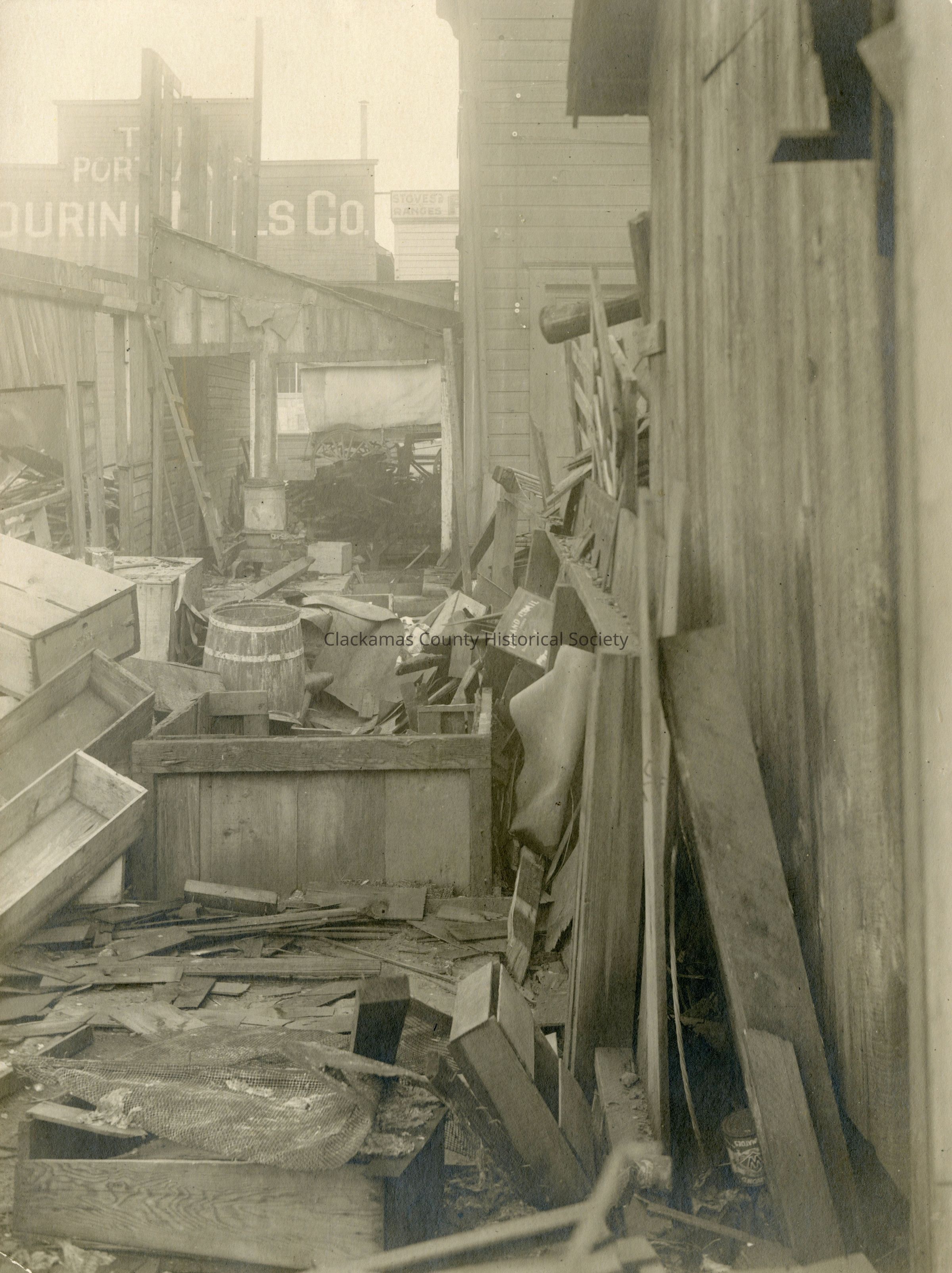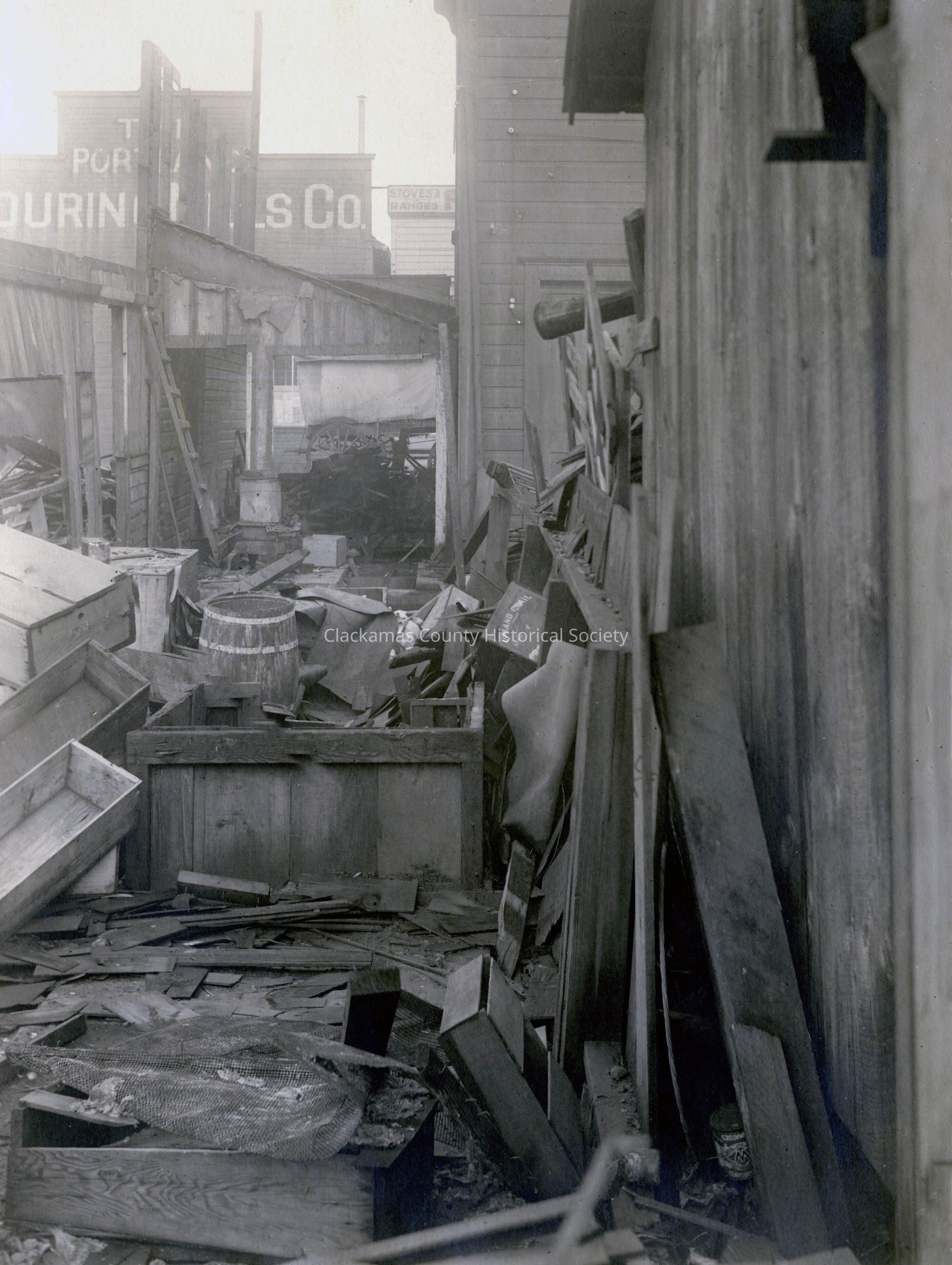 Flood damage, February 6,1918. Partially obscured sign appears to be The Portland Flouring Mills Co.Made/Created