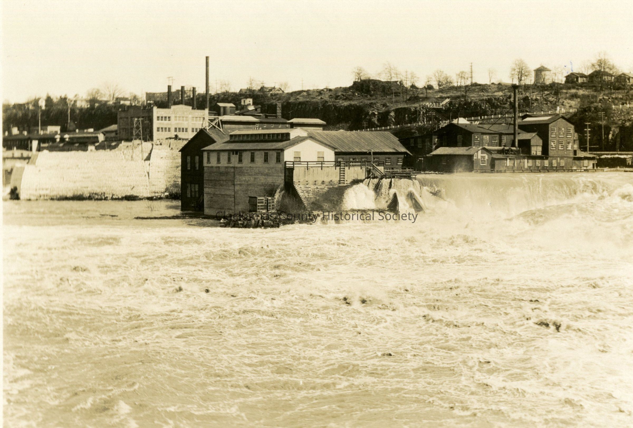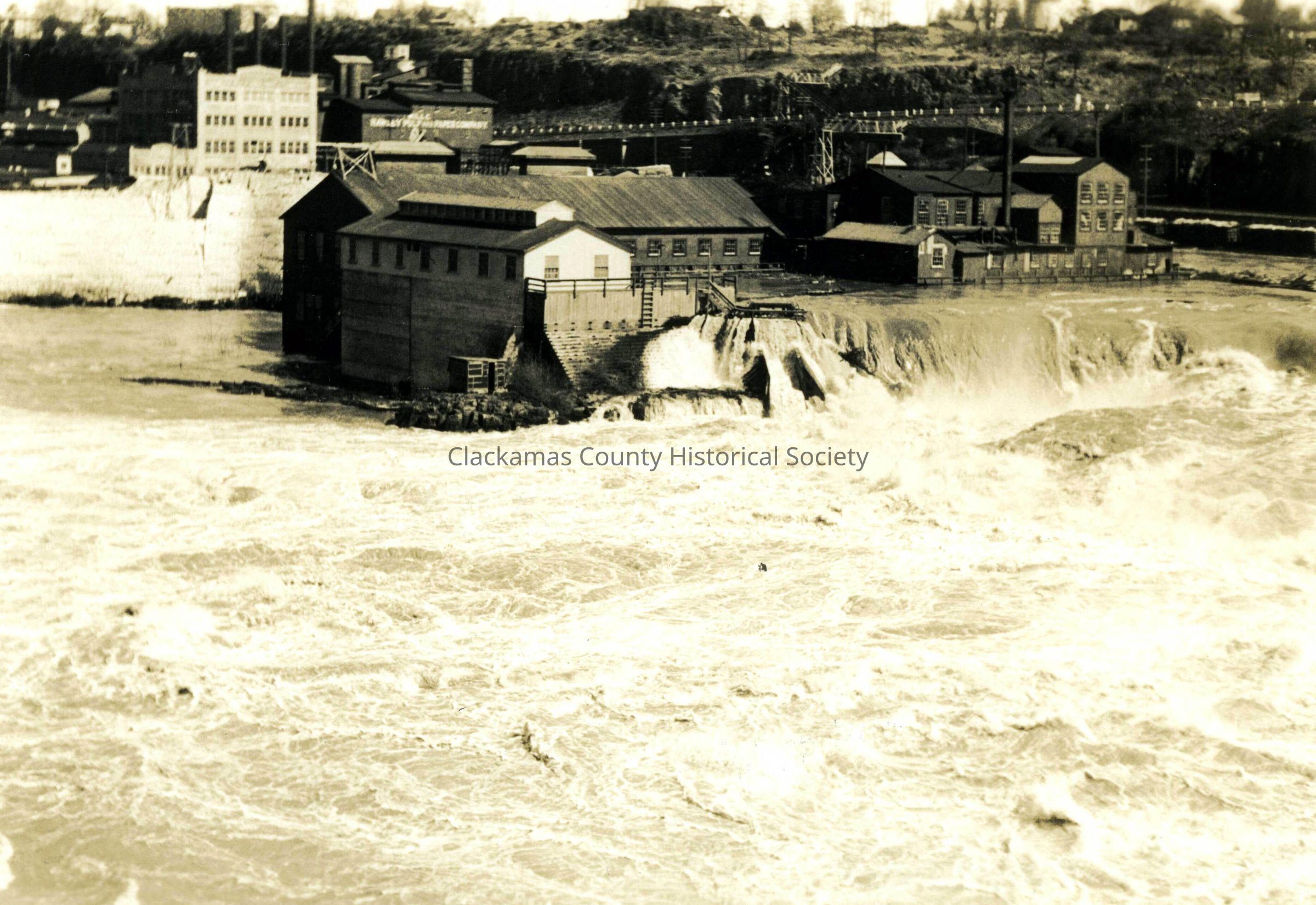 1922 Flood, Oregon City. Willamette Falls. Oregon City Hawley Paper Mill. View from West Linn.Made/Created