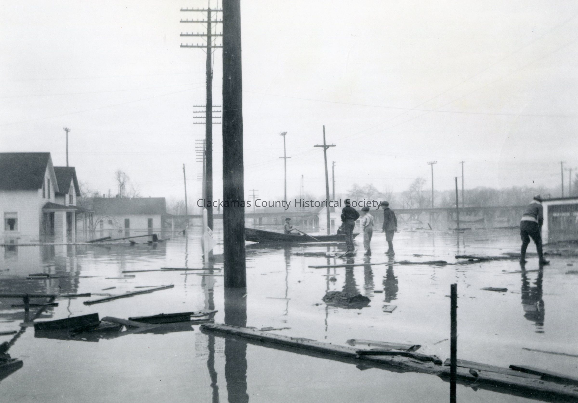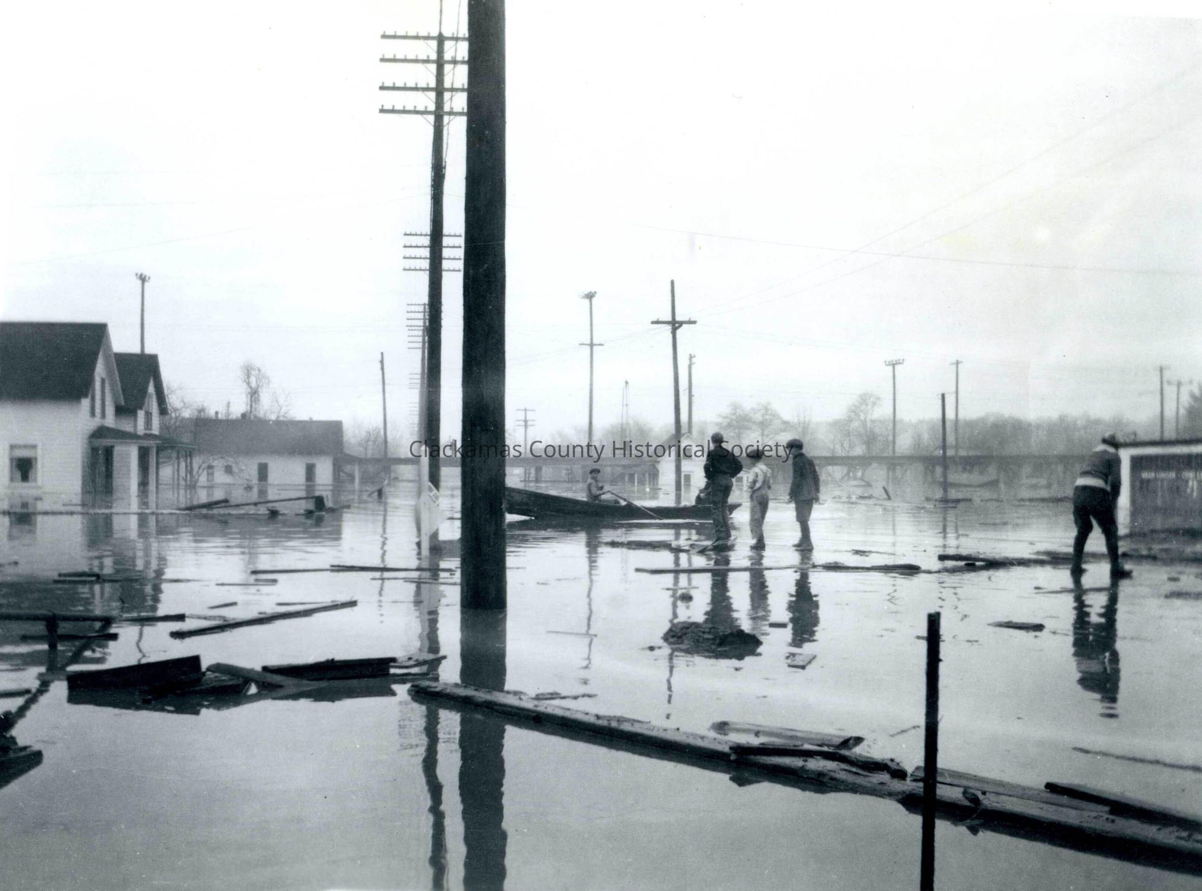1922-1923 Flood, Oregon City. People on residential street in flooded neighborhood.