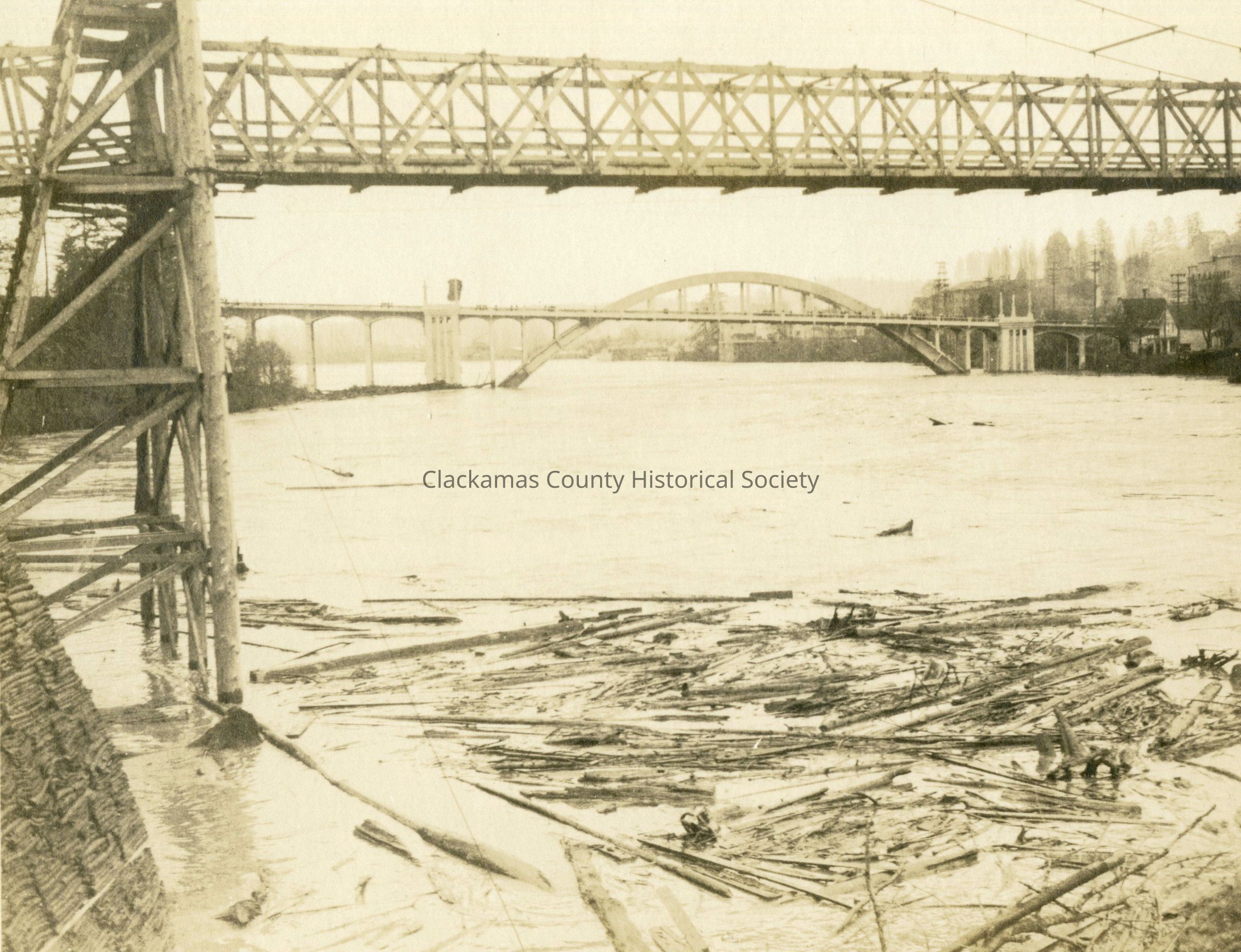 1922 Flood - Pedestrian Suspension and Arch Bridges - From Oregon CityEntry/Object ID