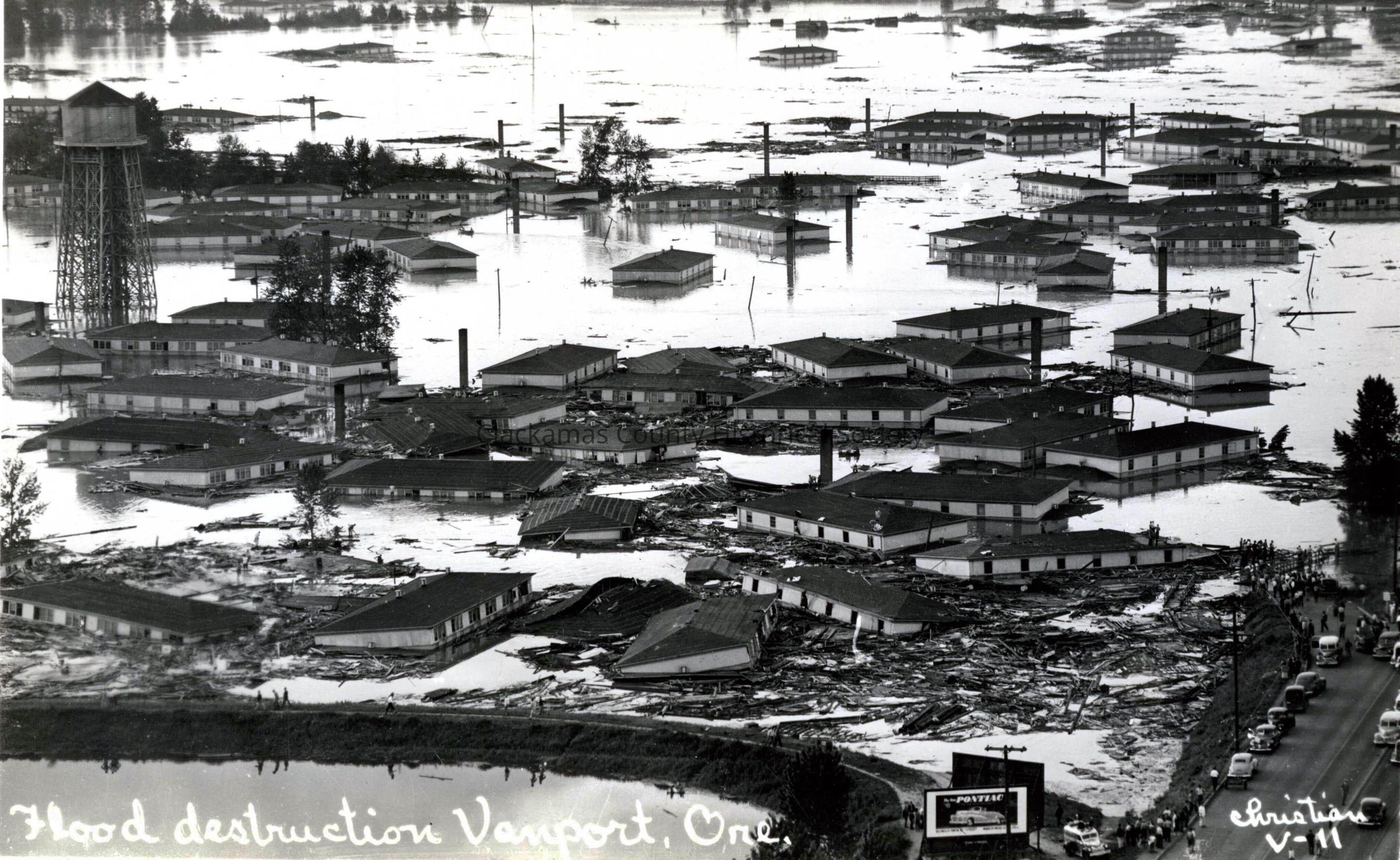Vanport Flood, May 1948. Portland. Postcard photo. Vanport is now known as Delta Park area of Portland.Made/Created