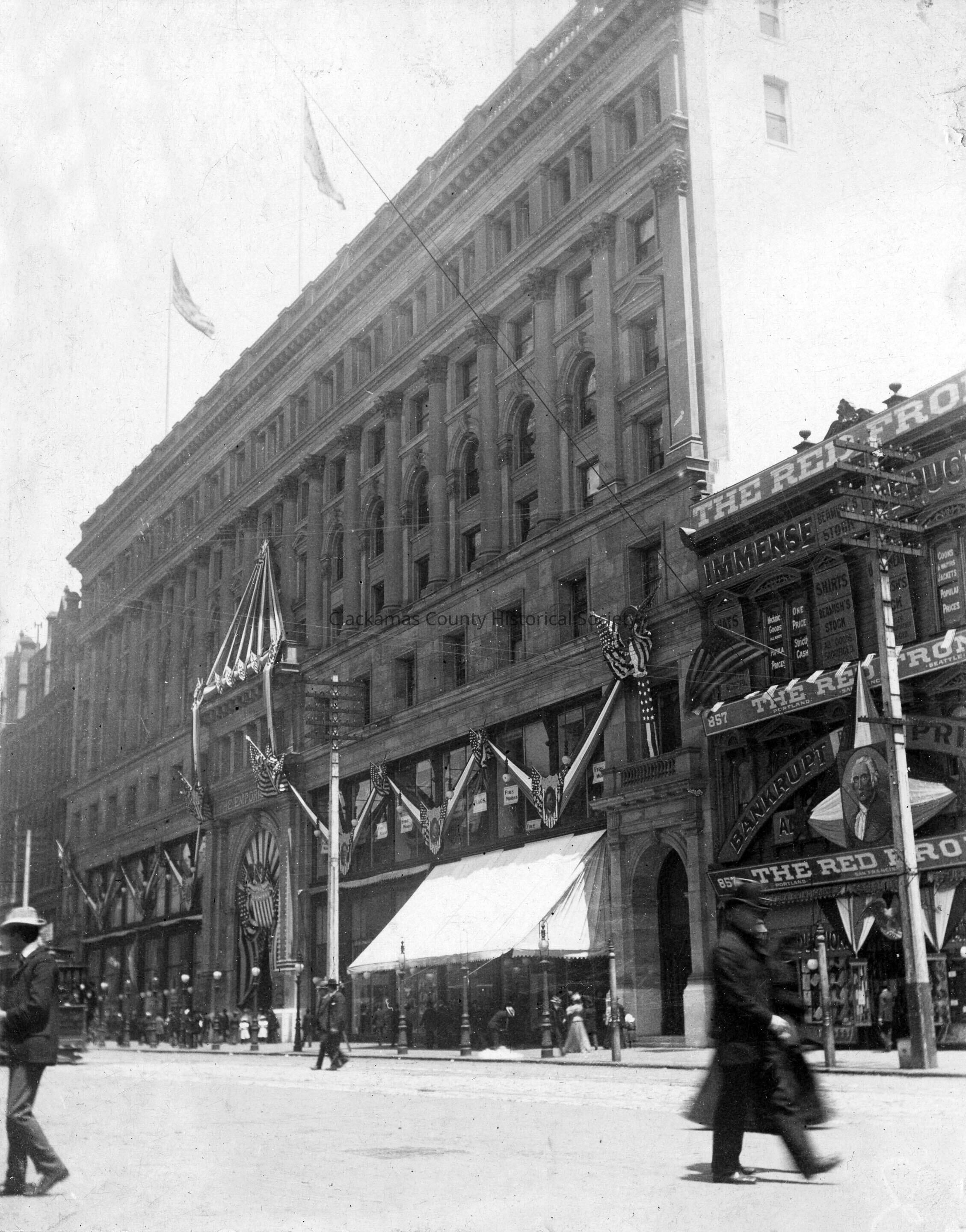Spanish American War, S.F. Emporium decorated for returning soldiers, 1899.Made/Created
