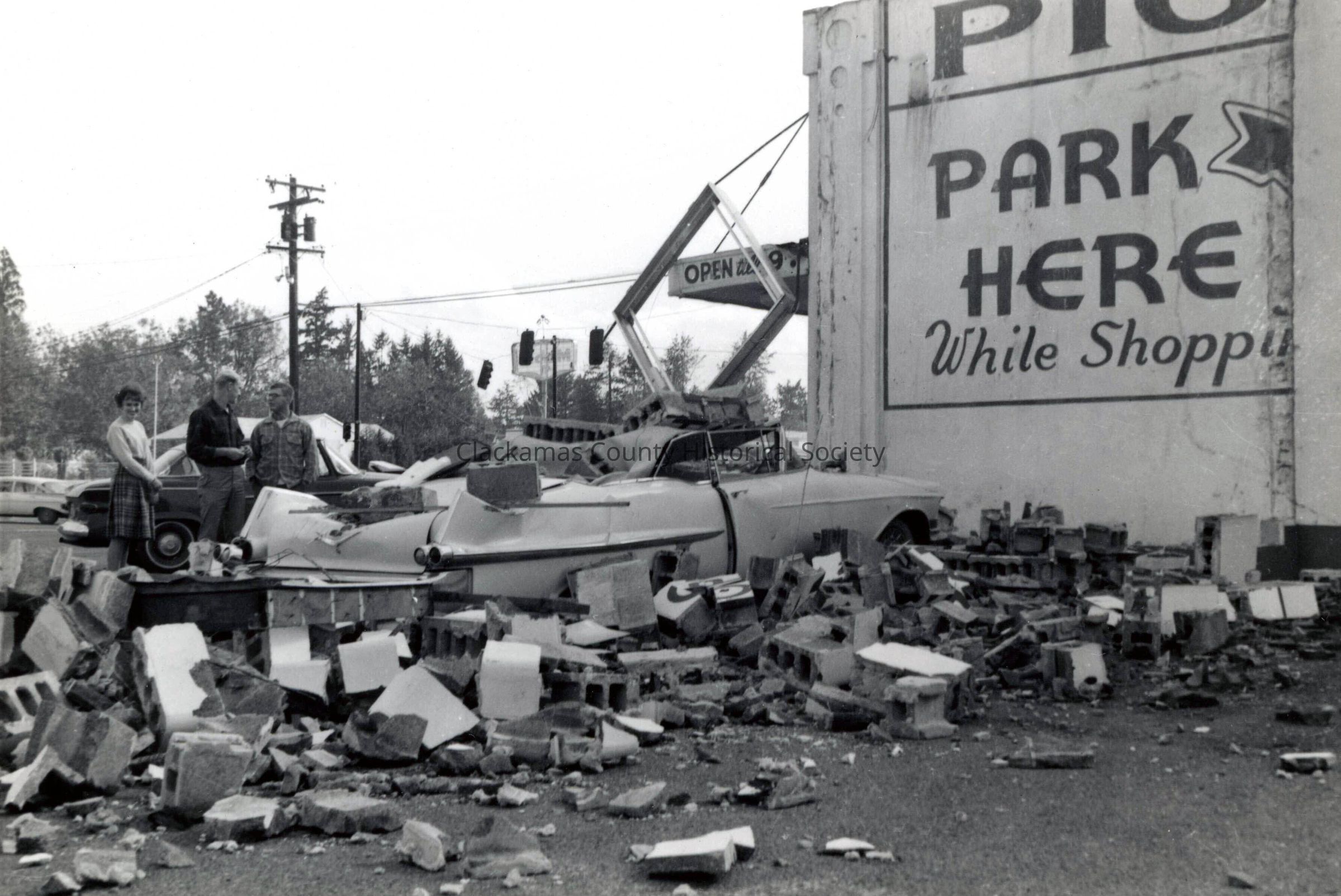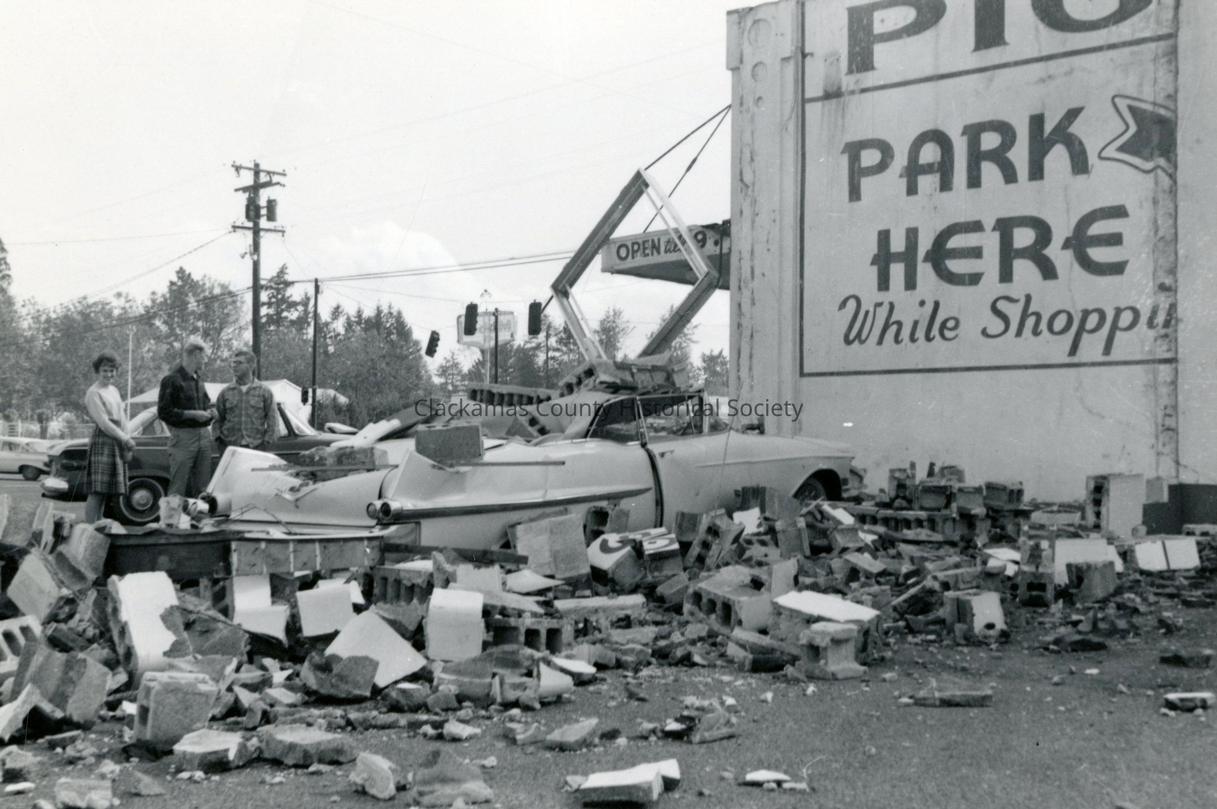 1962 Columbus Day Storm, Car Damage at Fred Meyers Store in Oak Grove.Entry/Object ID