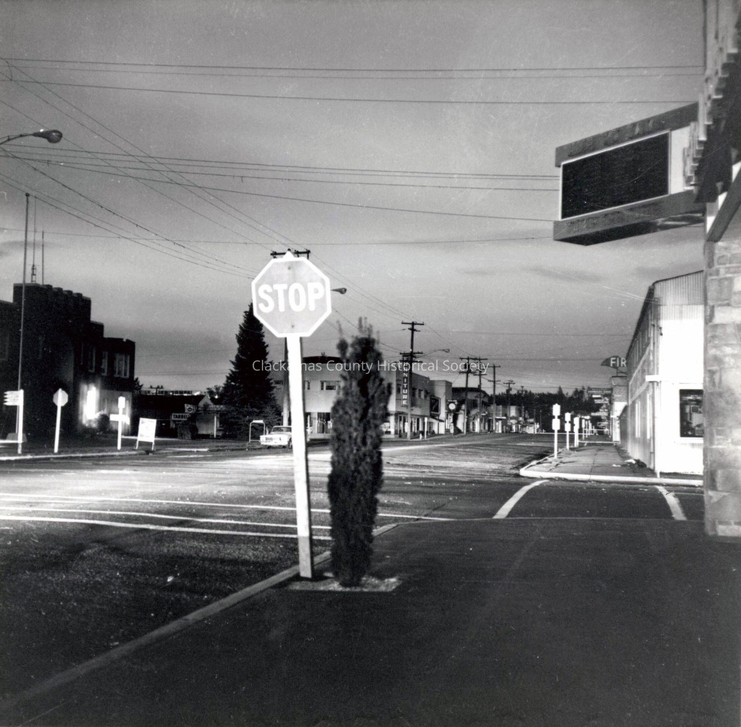 1962 Columbus Day Storm, Main Street Milwaukee, OR. Early evening, no cars or people on the street.Made/Created