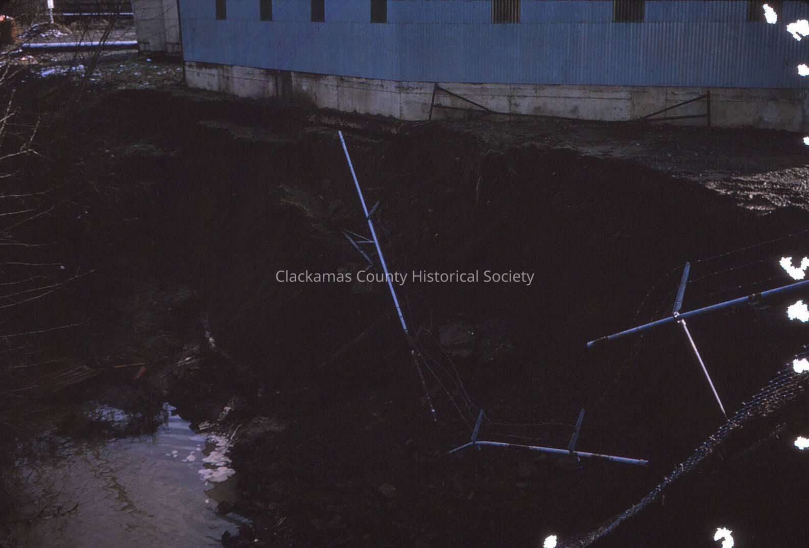 Photograph of the damage from the 1964 Christmas Day Willamette River flood on Abernethy Creek near Main and Washington, in Oregon City, Oergon.