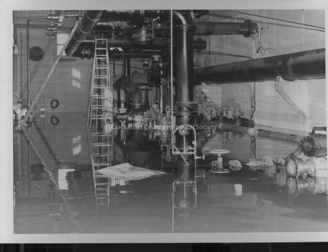 Crown Zellerbach Mill - Filter Plant Pump Room showing flood aftermathe