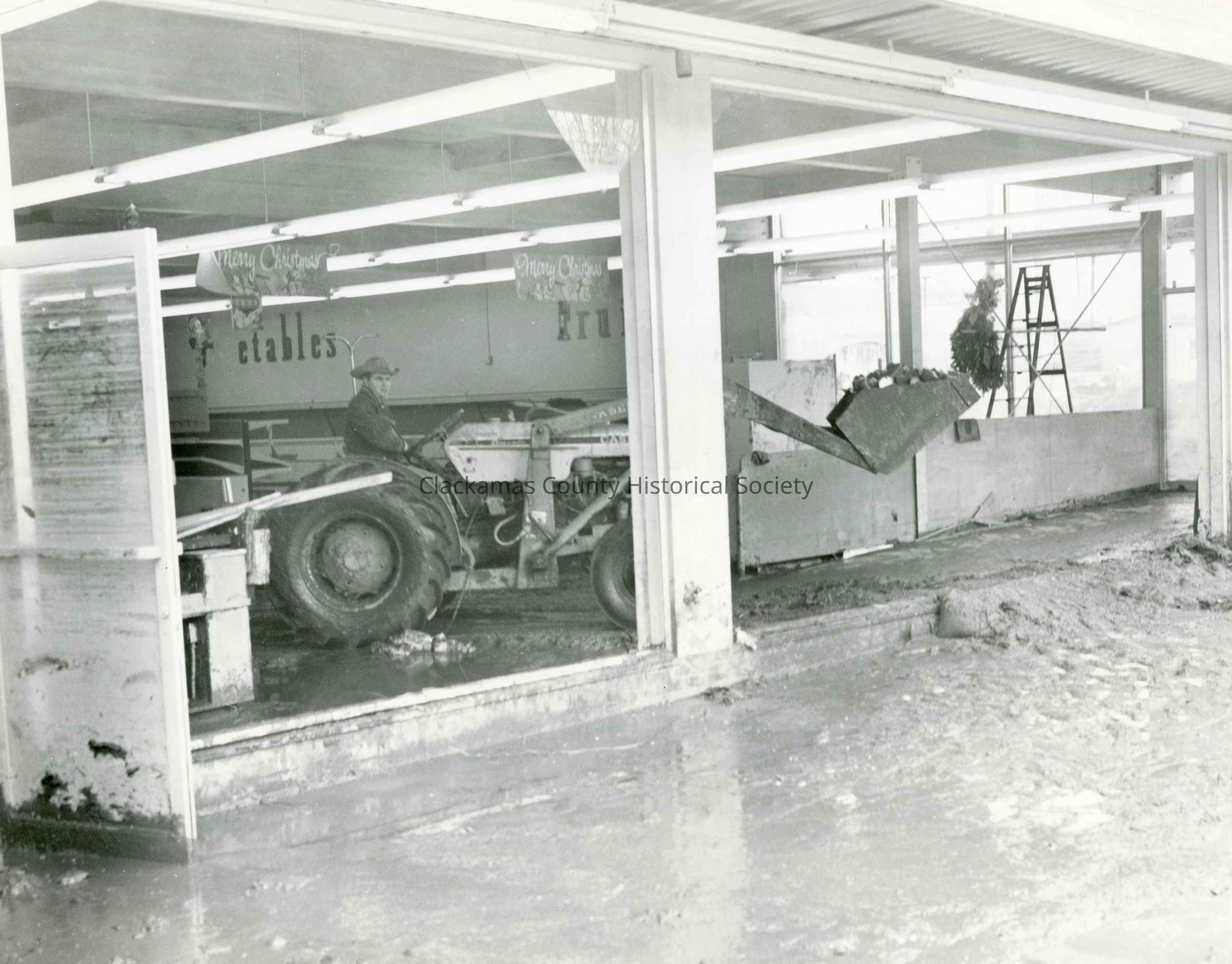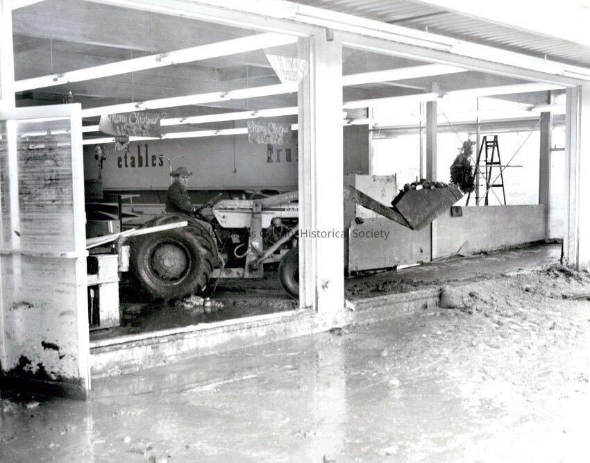 1964 Flood. Clean-up at Danielson's Thriftway Market after the flood.