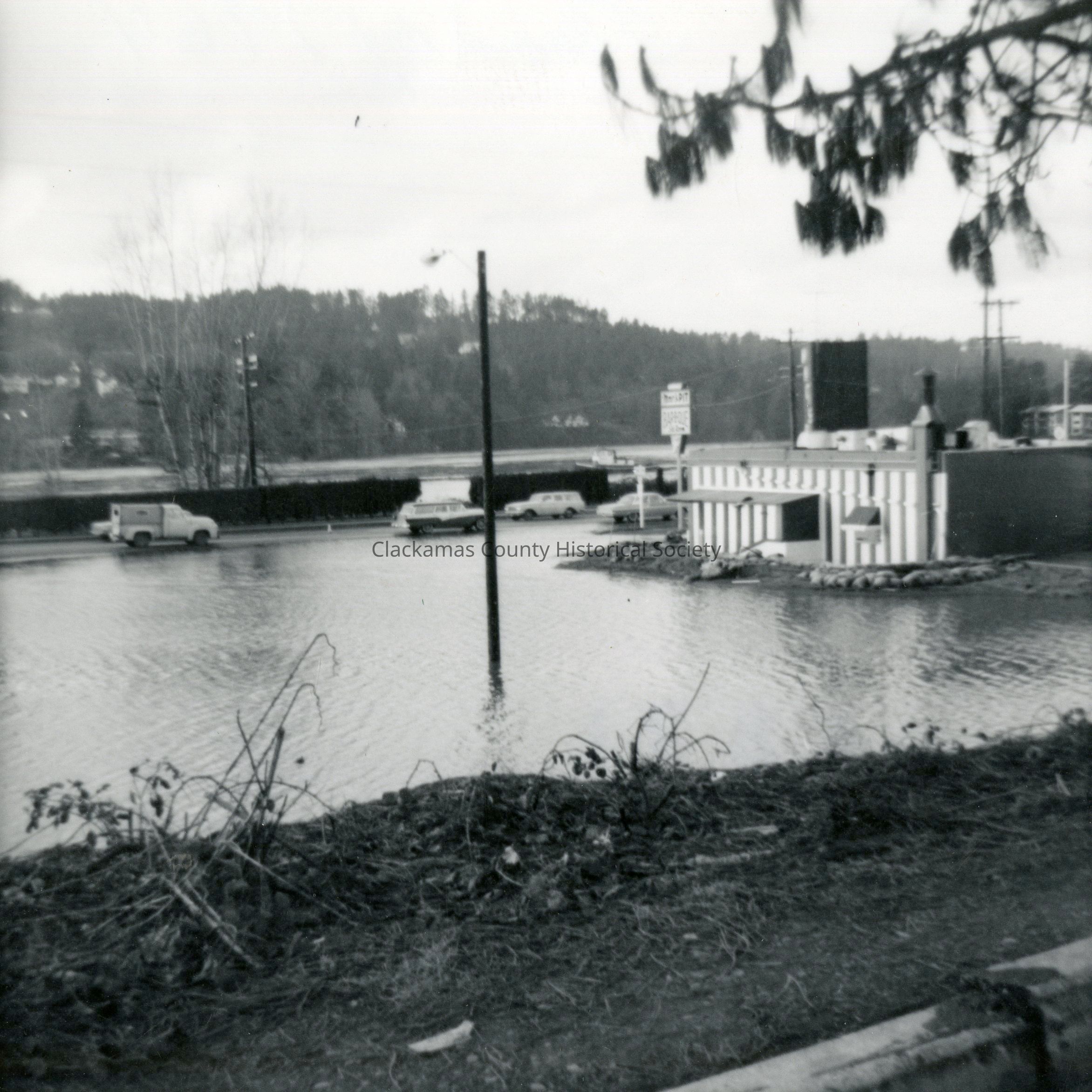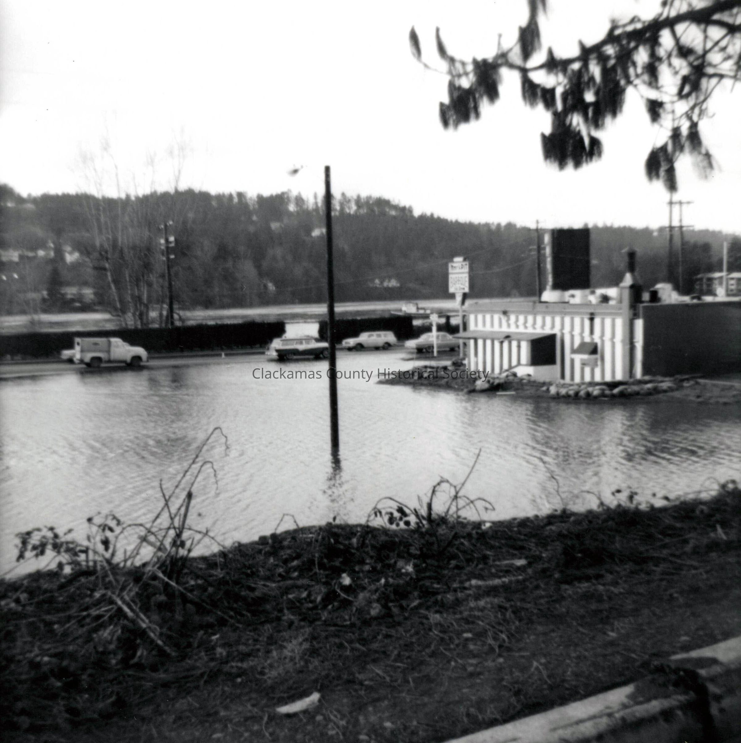 1964 Flood. Probablly in Oregon City at a shopping center. Photo shows water near or around buildings.Made/Created