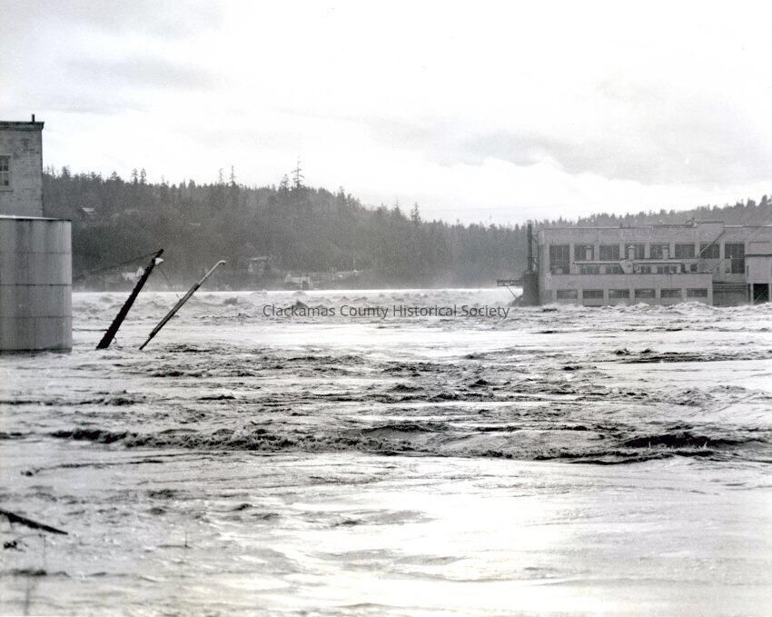 1964 Flood. Willamette Falls and West Linn Mills.
