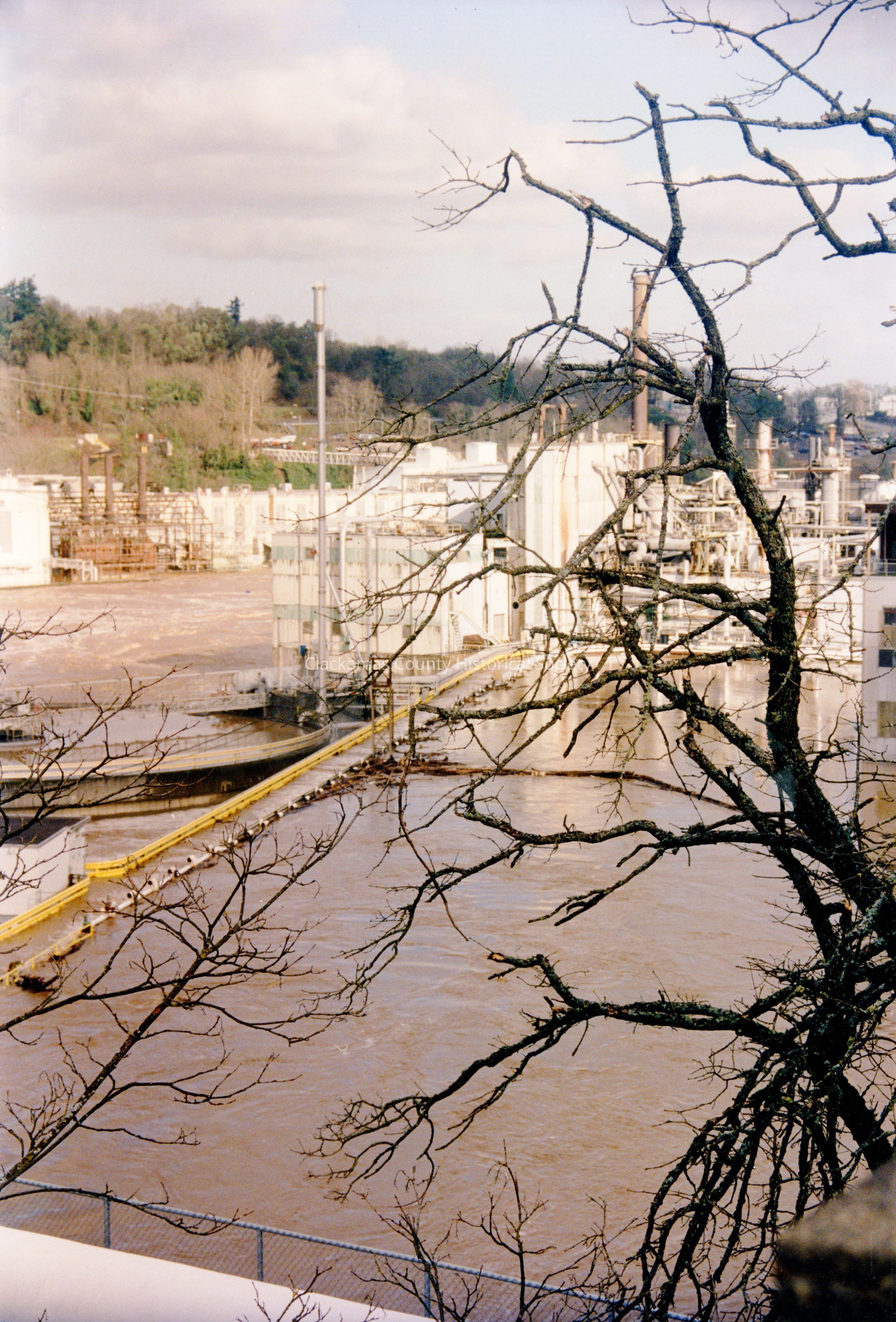 Willamette River flood of 1996. Looking towards West Linn and power plant