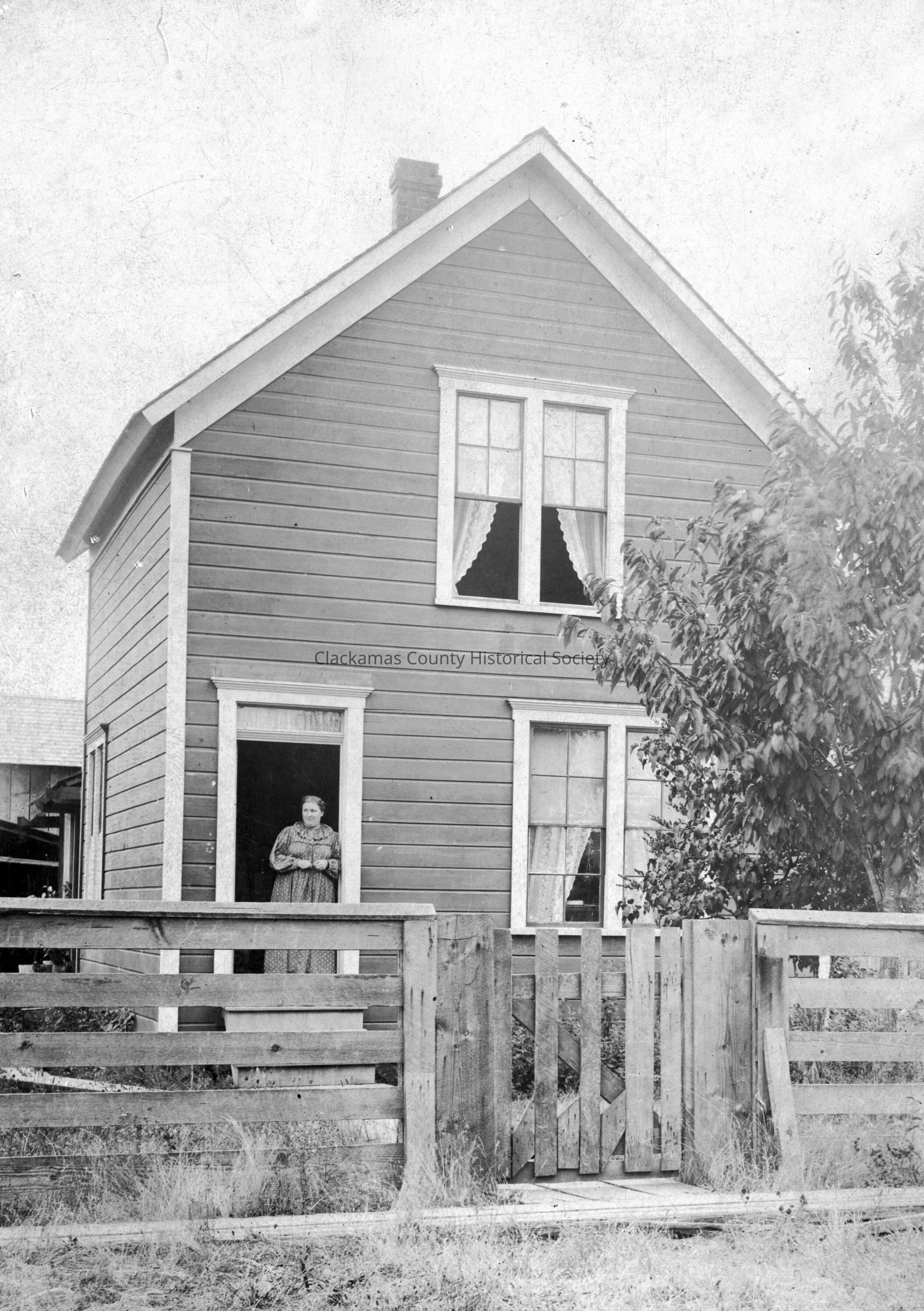 Addie Ely in her new home as a bride , 1898, on Duane St. near Mt. View Cemetery in Oregon City. This section of Duane Street is now Barclay Hills Drive.Made/Created