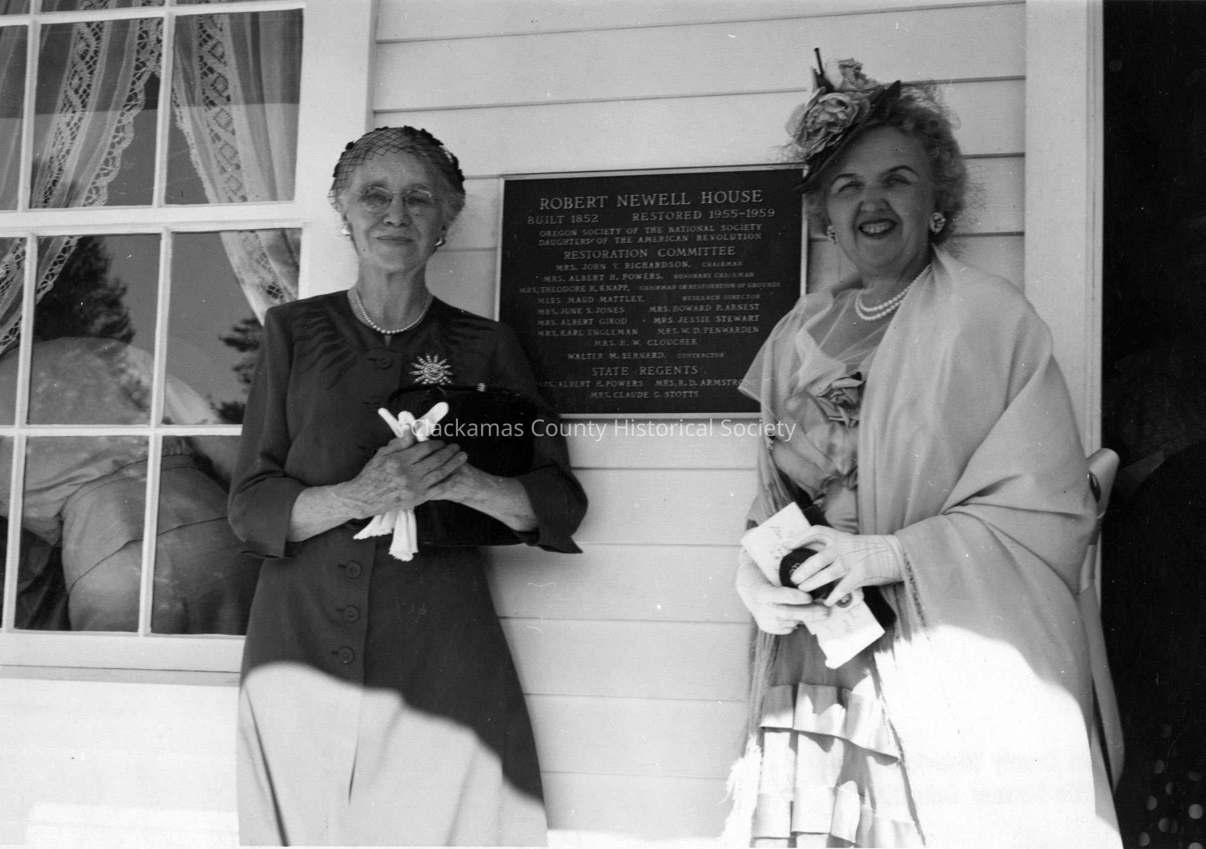 Miss Maude Mattley and Mrs. Albert Powers Roth. Dedication of Robert Newell House at Champoeg. 2 photos P-3045 and P-3046Made/Created