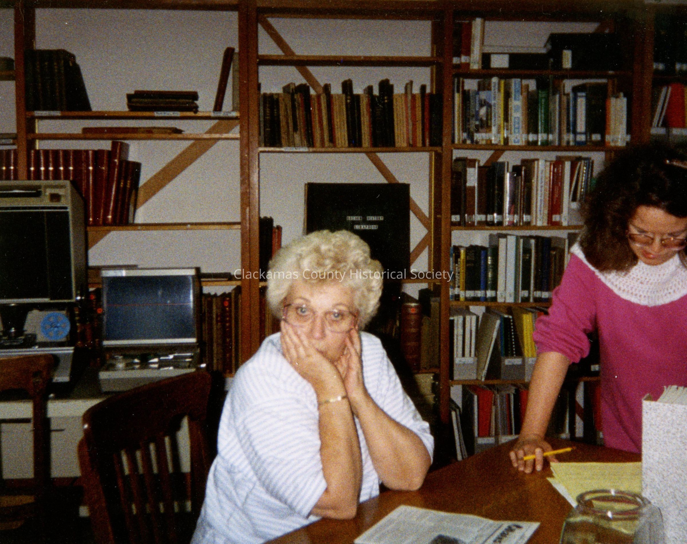 At Clackamas County Historical Society (CCHS) CCFHS Volunteers - Liz Brooks & ?