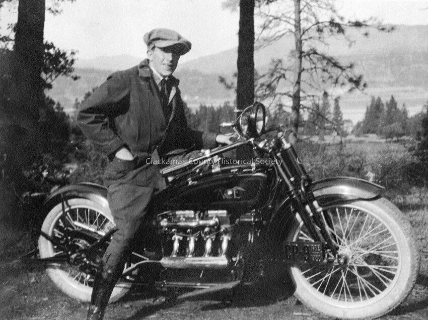 2 Photos of Carl Moline, Photographer. 1)1922, Carl on motorcycle; 2) 1962, Carl at Happy Valley School. P-3088 and P-3089