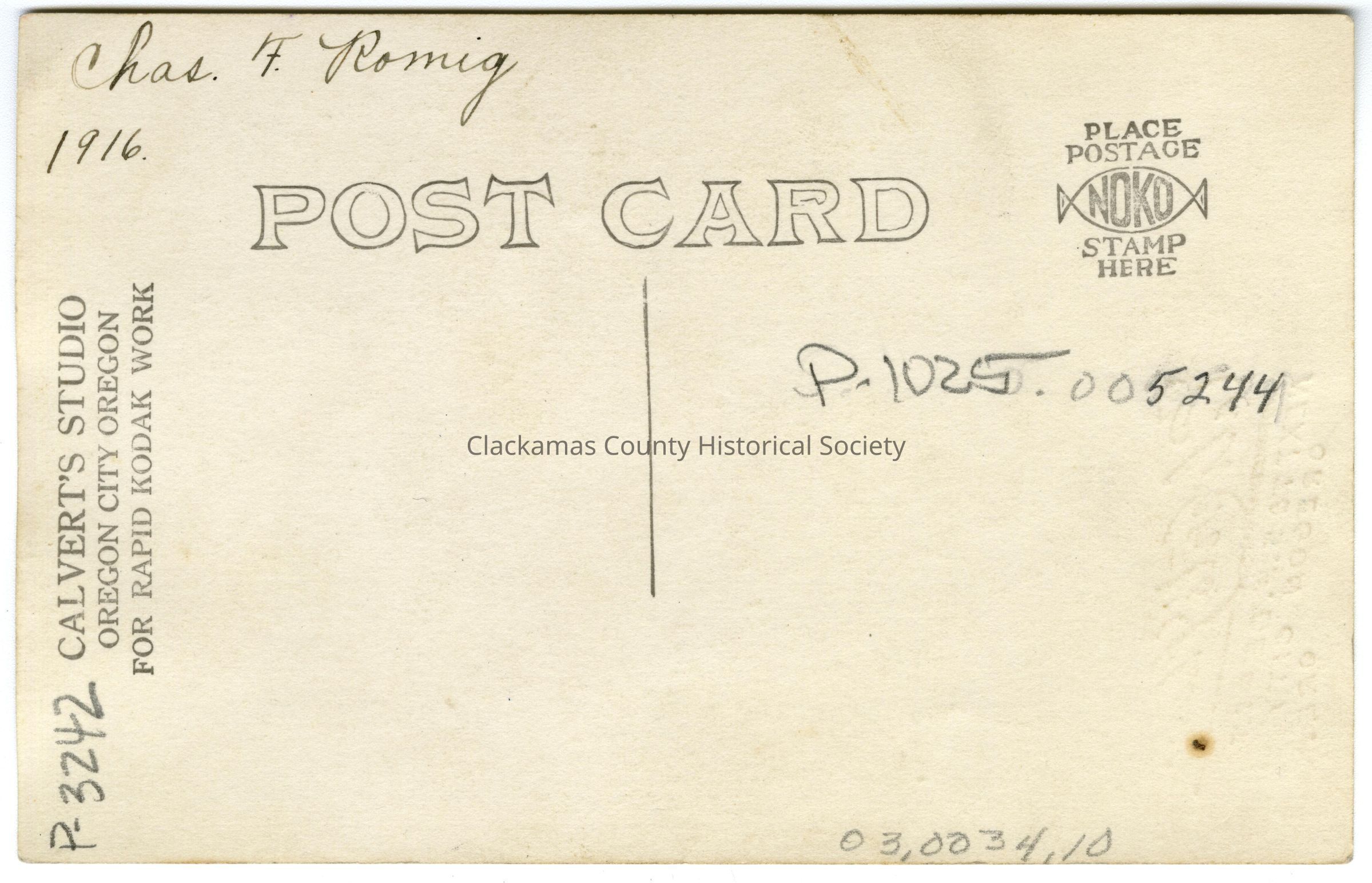 Photograph postcard, Charles F. Romig