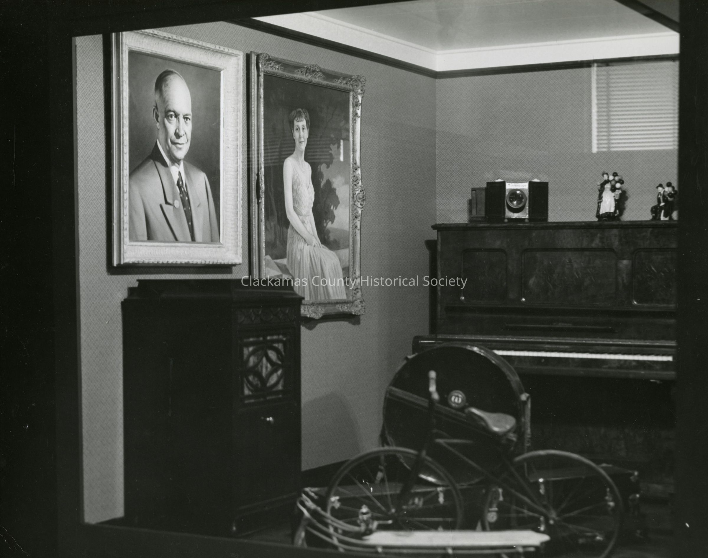 Photograph of Room with two individual paintings of President Dwight and Mami EisenhowerEntry/Object ID