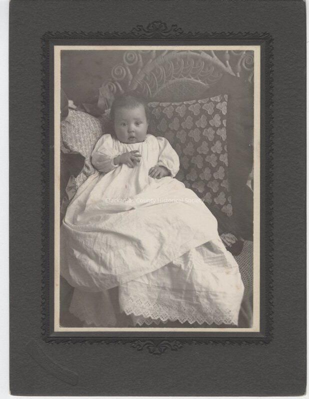 Emma Talbert (Davis) as a baby at 1st house south of Boarding House in Clackamas Oregon
