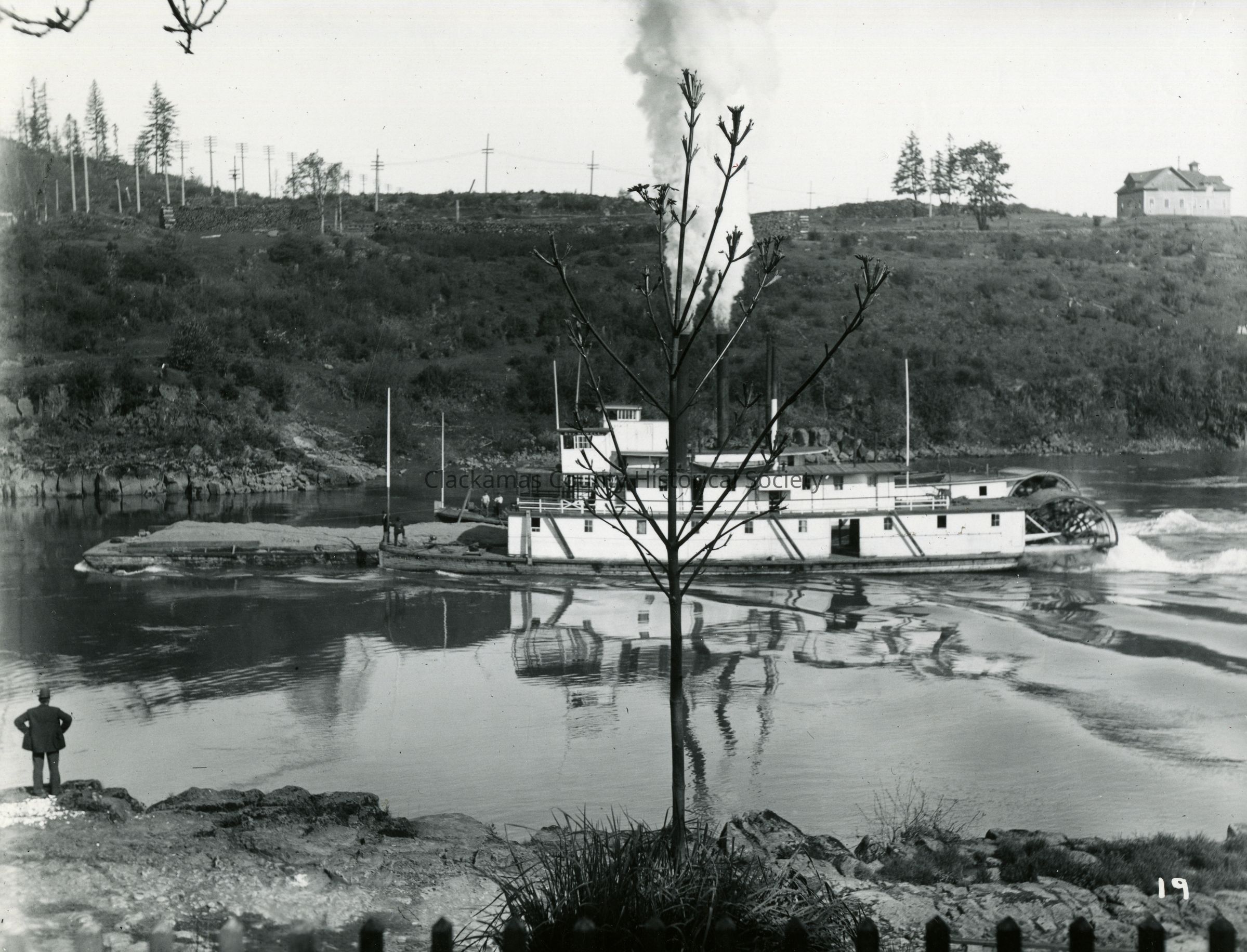 Steamboat "Gov Newell" with Barge - Willamette River in Oregon City, Oregon - No DateEntry/Object ID