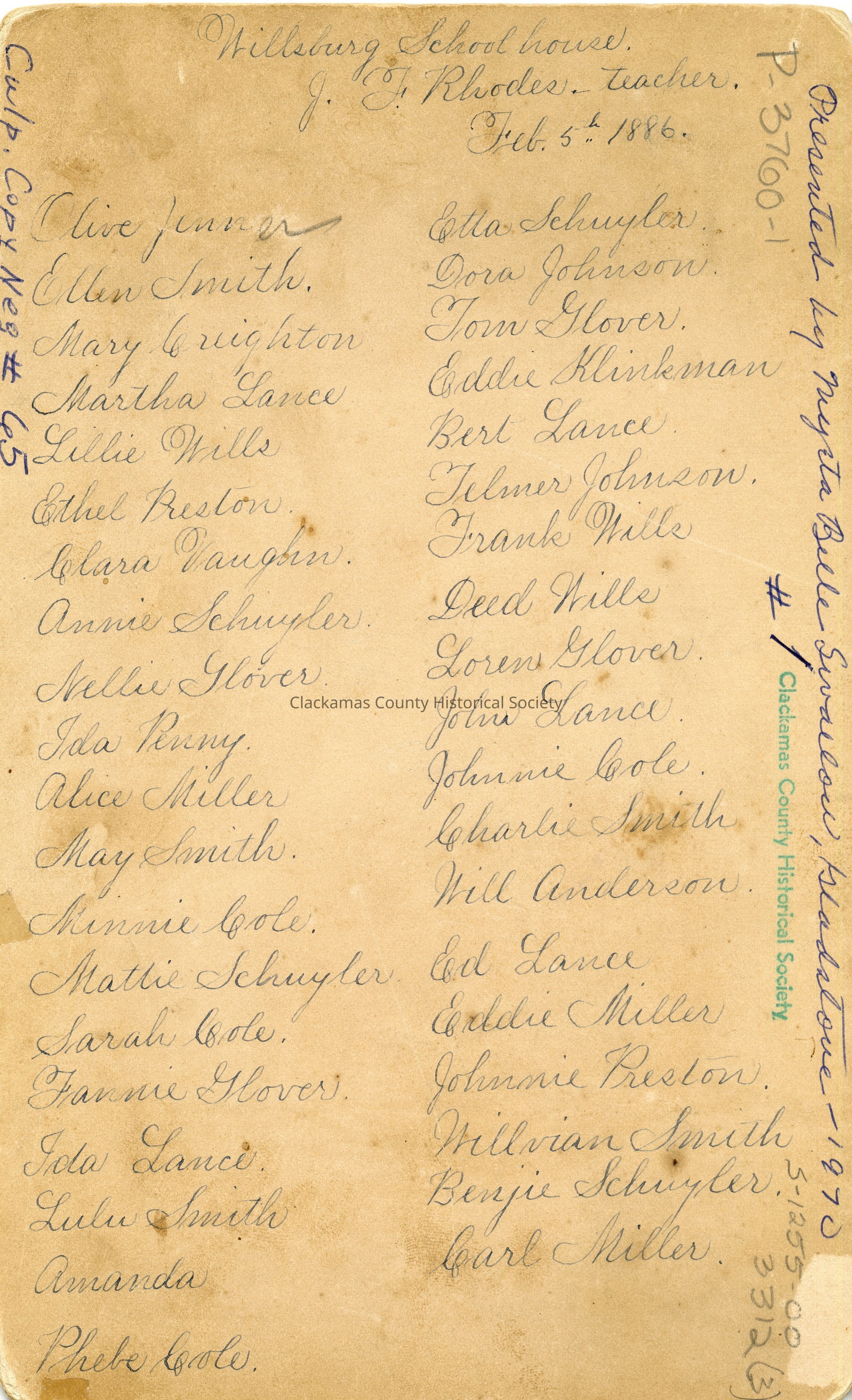 Willsburg School Sellwood, Oregon Area District 70 February 5 1886 3 copies