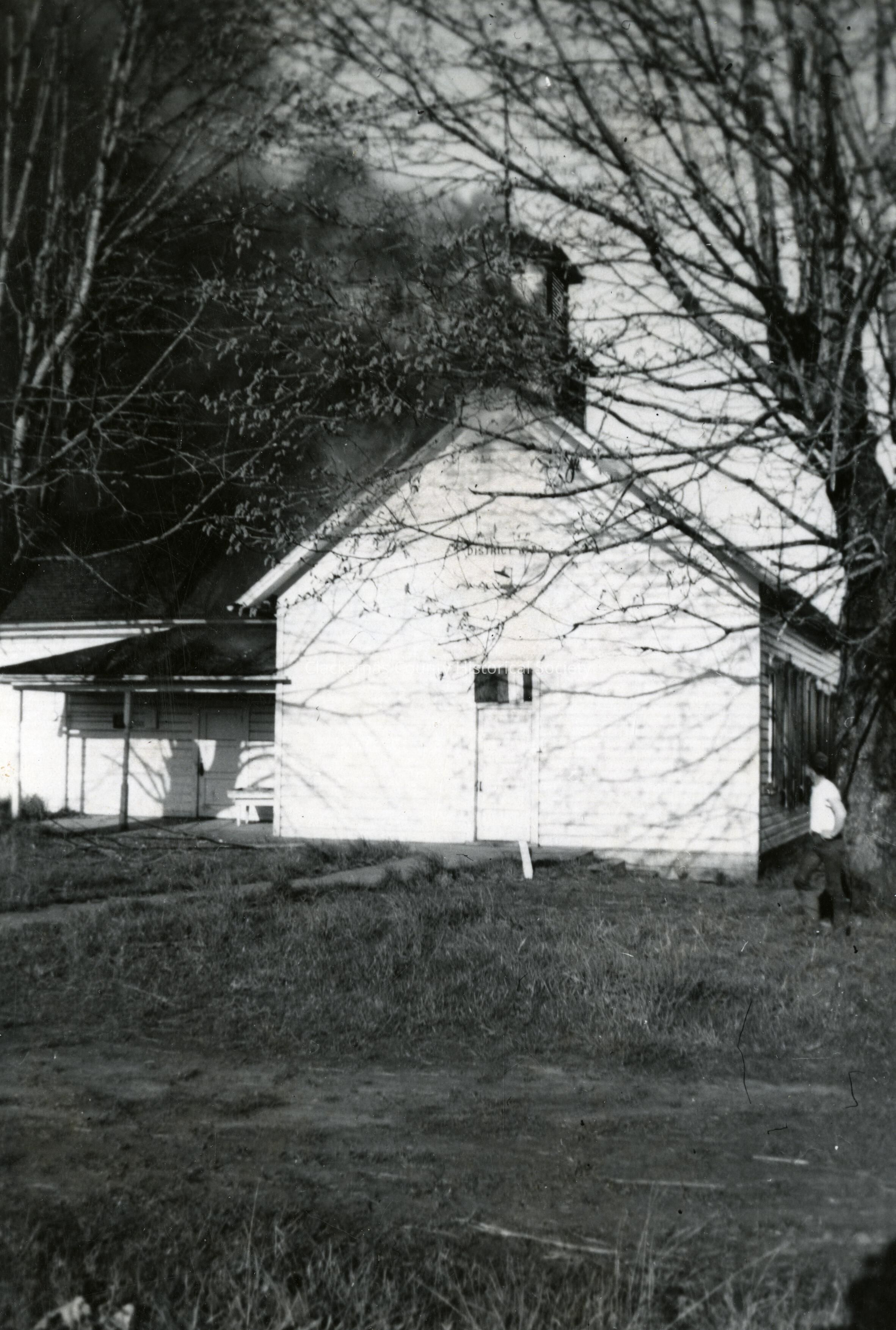 Note on back: "Old Clarkes School burned May 9, 1955 - fire started by 3 youths who stripped a car in a shed behind the school and set fire to the car to destroy the evidence."