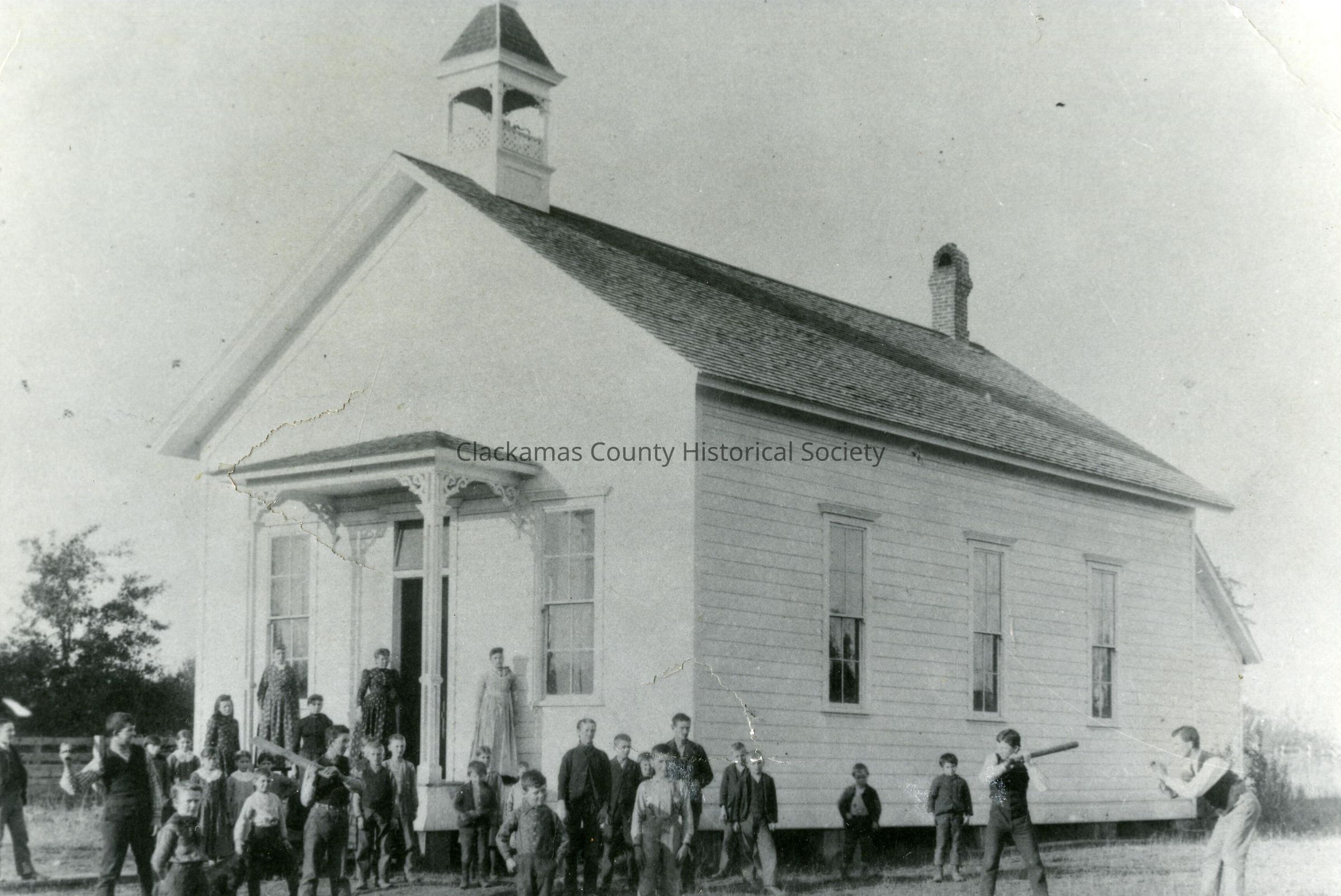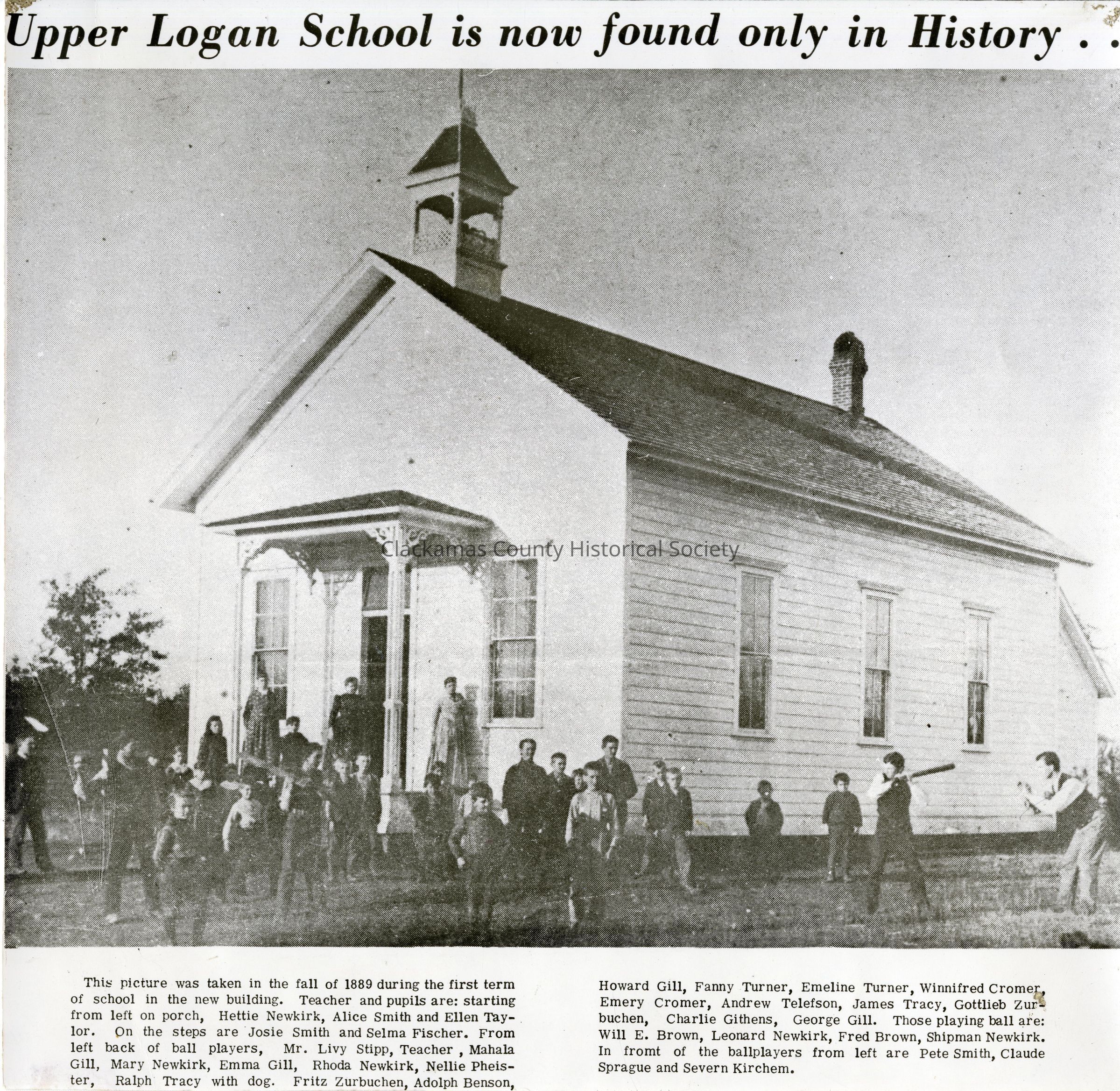 Newspaper Print of Lower Logan School building in Clackamas County, Oregon.