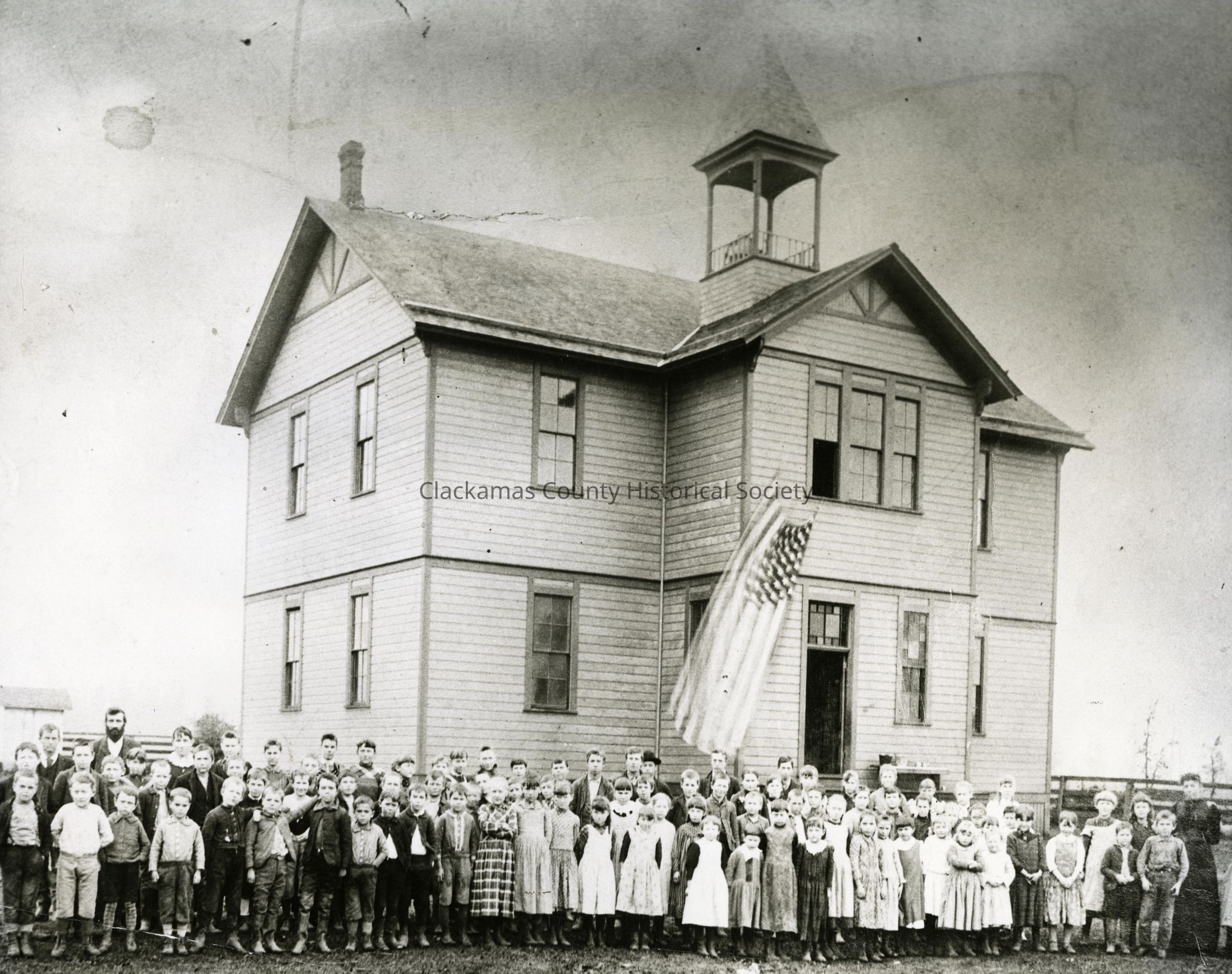 "Teacher on far right is Agnes Watt Beattie who later married Christian Schuebel (married 23 June 1892)"