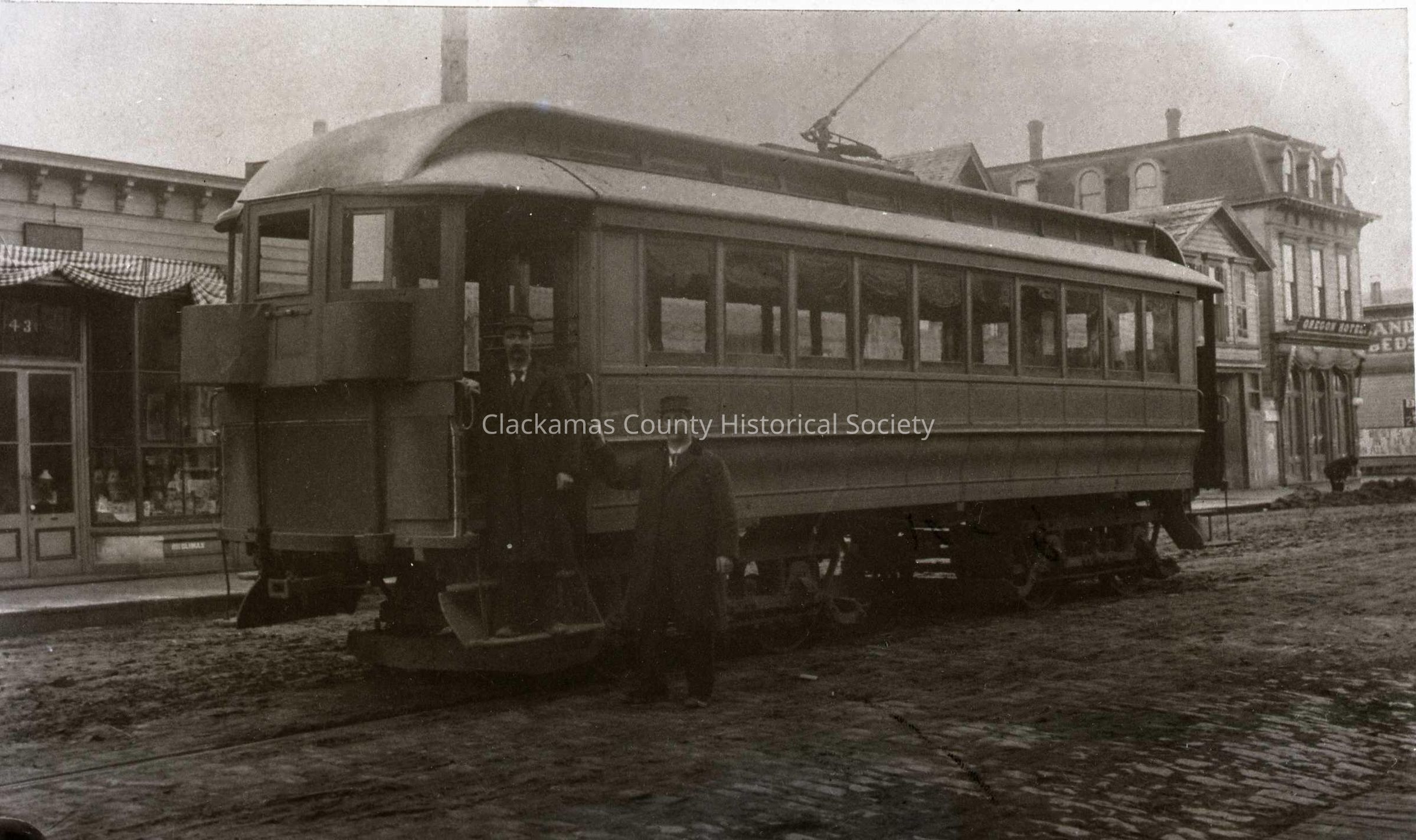 Oregon City 1895 - Electric Streetcar on Main Street with E.M. Howell, the Conductor, on the StepEntry/Object ID