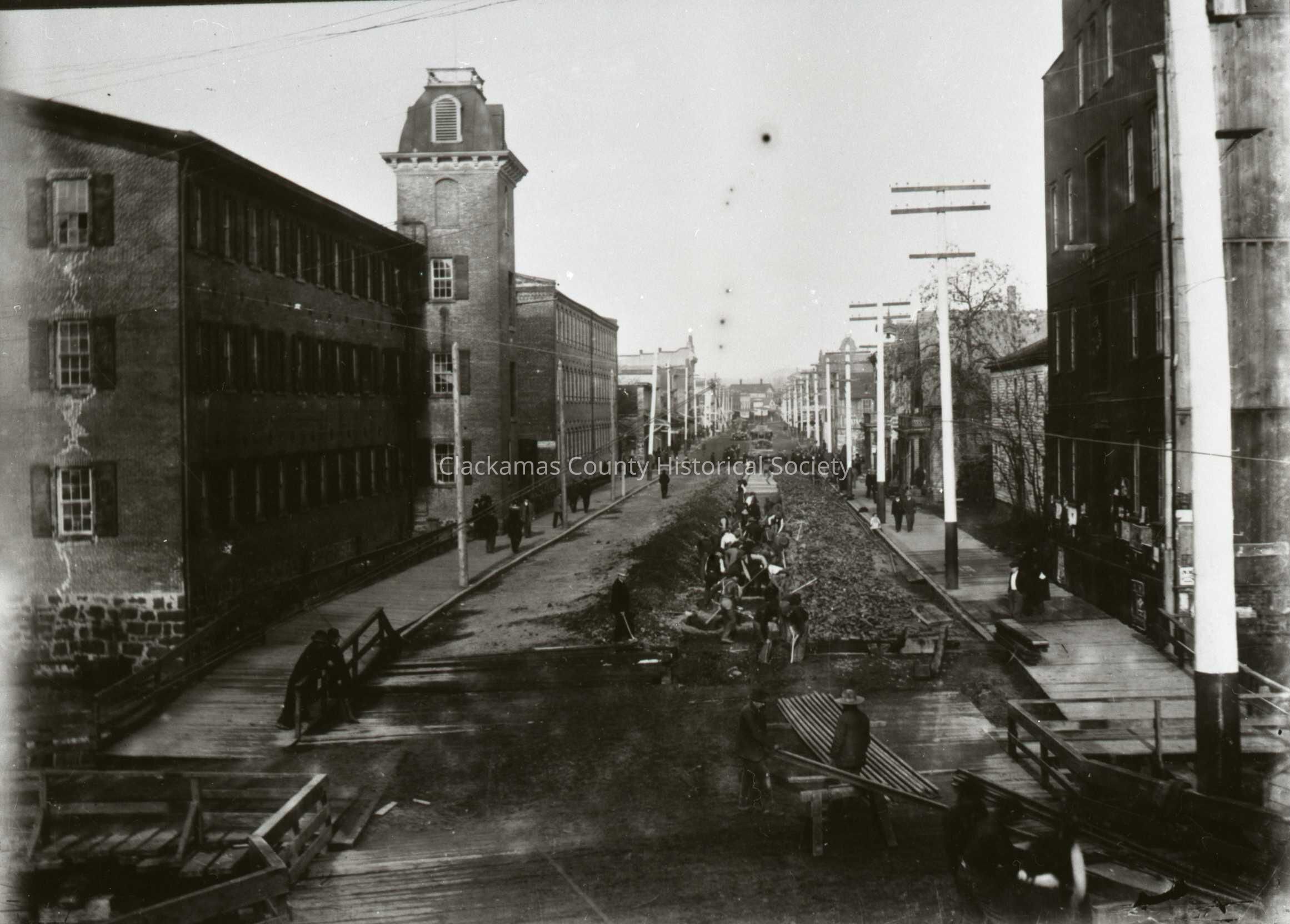 Oregon City 1901 - Laying Tracks for Streetcar to Canemah - 2nd and Main StreetEntry/Object ID
