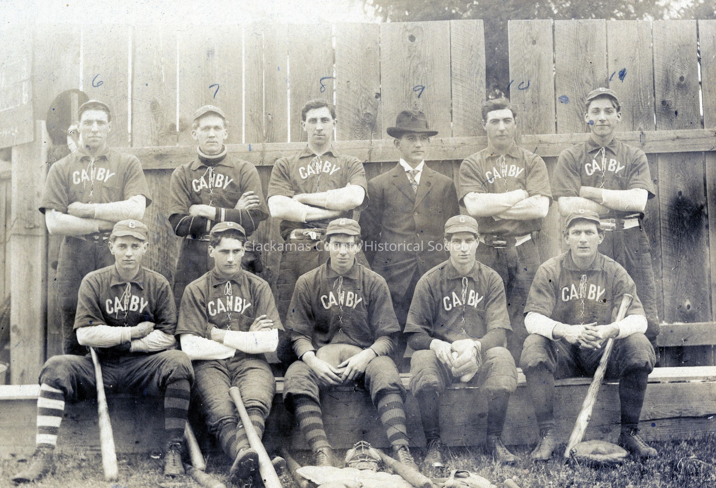 Canby Baseball Team Canby, Oregon Clackamas County Edgar Smith Ivan Demick Tanner Baty Claude Baty Warren Baty Roy Knight Lee Eckerson Arthur Knight Ralph Knight Ed Kineger