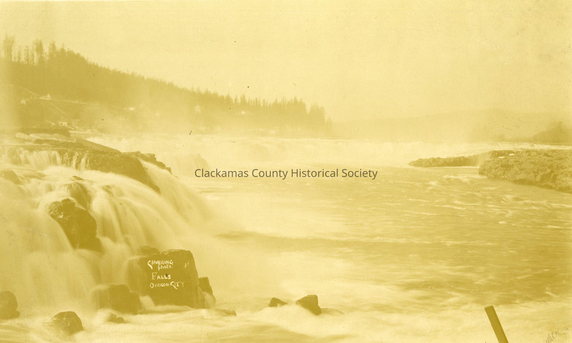 Willamette Falls. Sepia tone, poor quality. Written on back: W. (William) B. Howell W-1450.004424