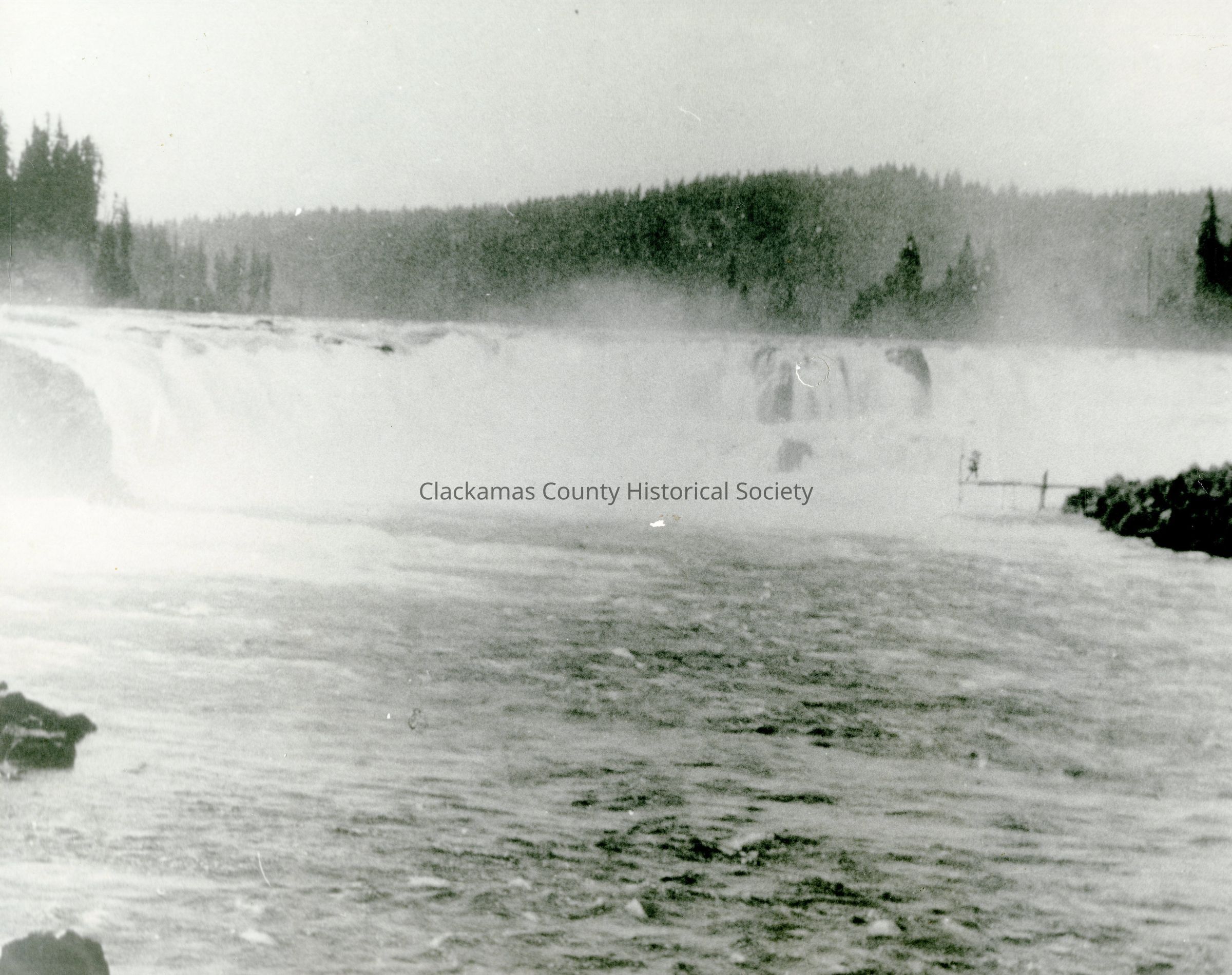 Willamette Falls Native American on fishing platform 1885 Oregon City