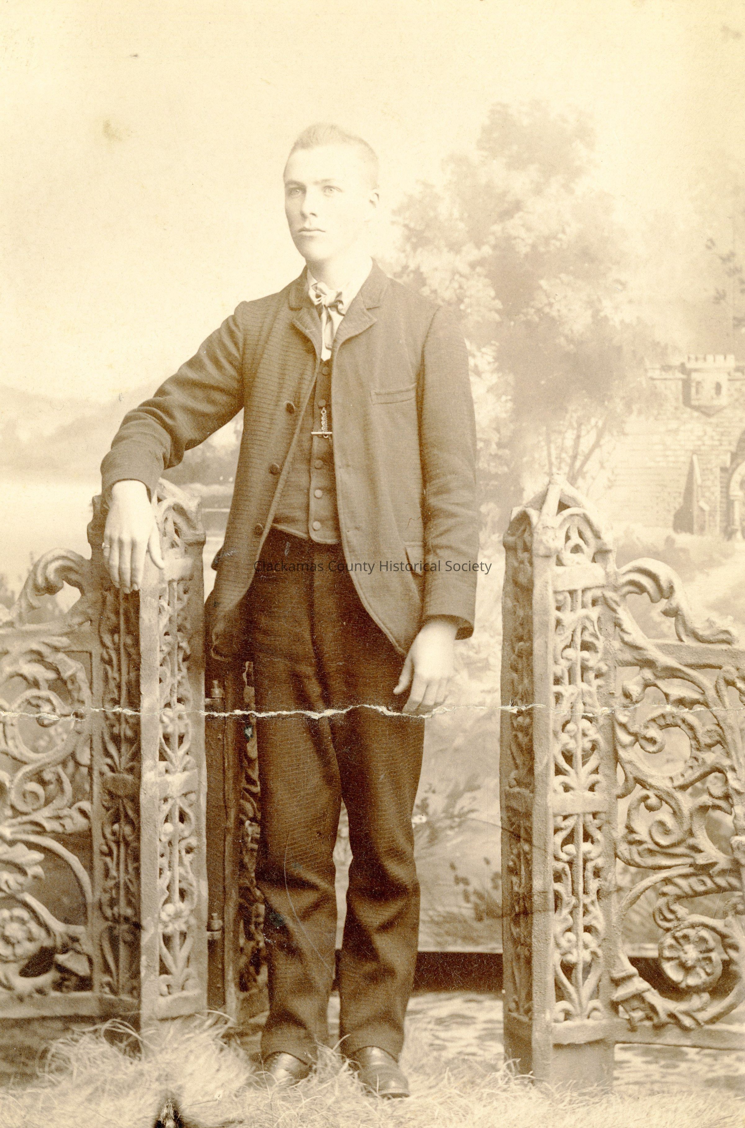 Alfred Lee Beatie standing by a gate