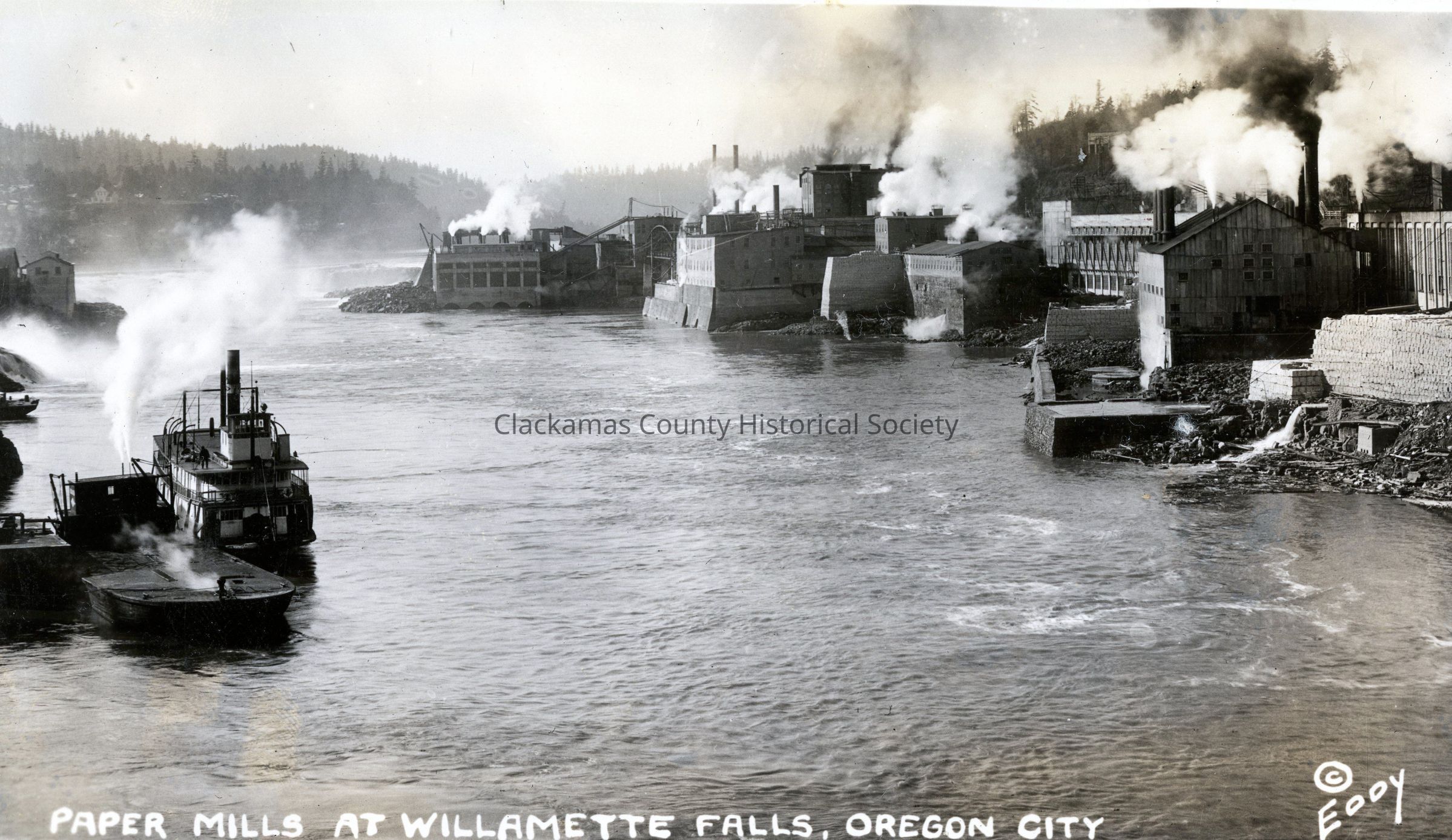 Barnett Album - Willamette Falls - West Linn Paper Mill, Steamboat, 7th Street Dock
