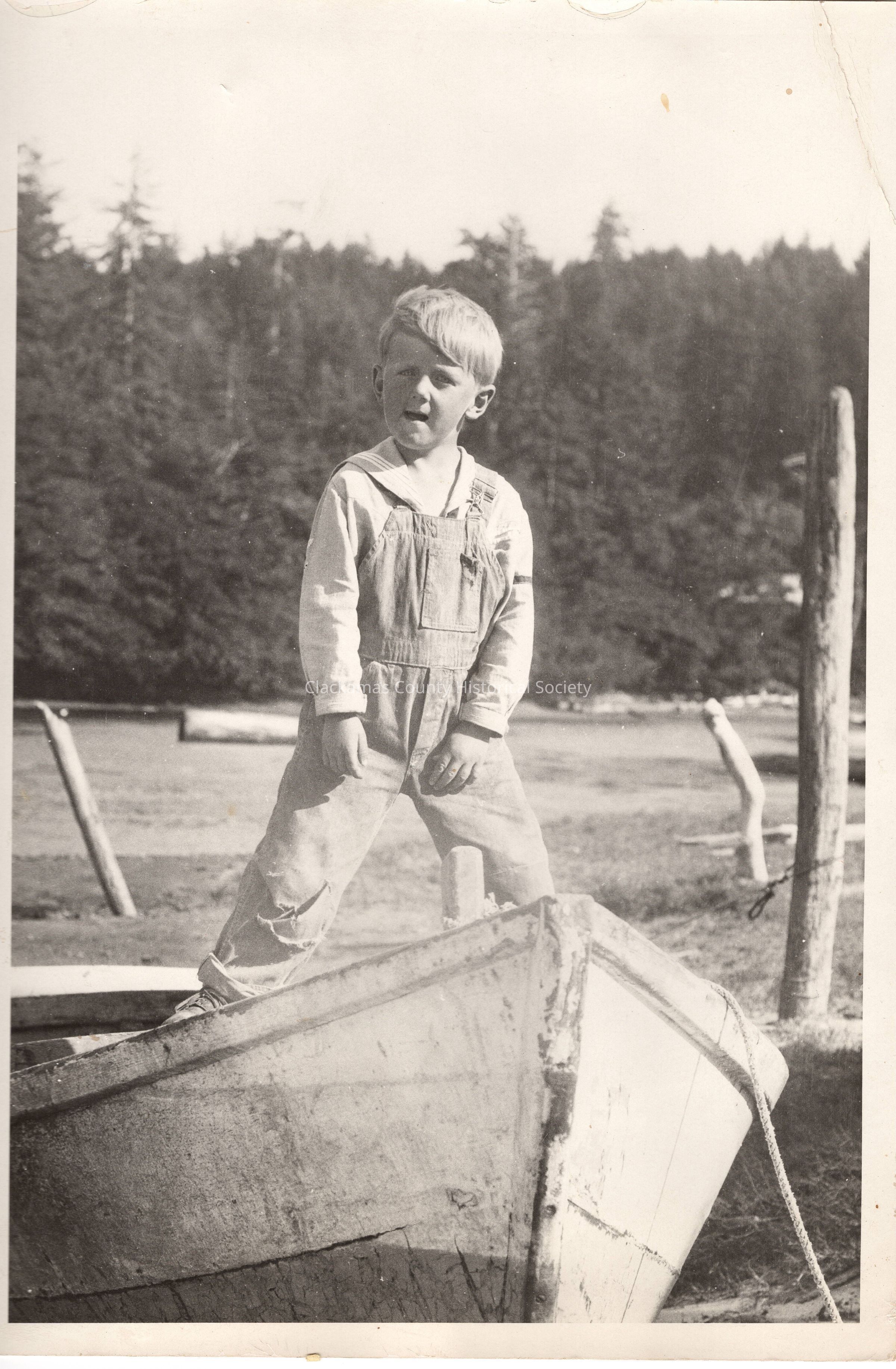 John Halbert Hoss, outdoors, standing on a boat.Inscription/Signature/Marks