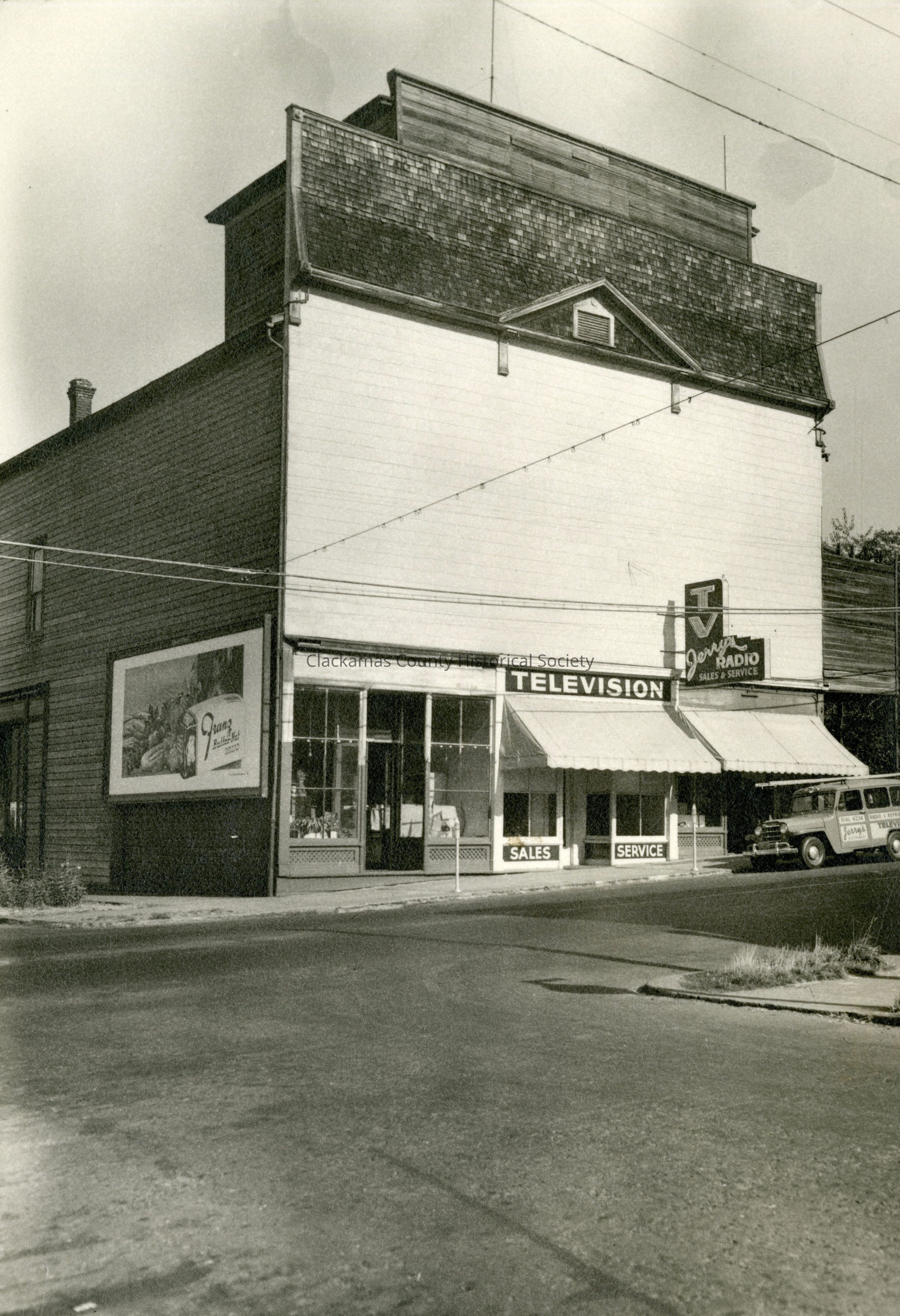 Jerry's Radio and TV shop occupying the once Shively Theater and Opera House in Oregon City. 7th and Madison