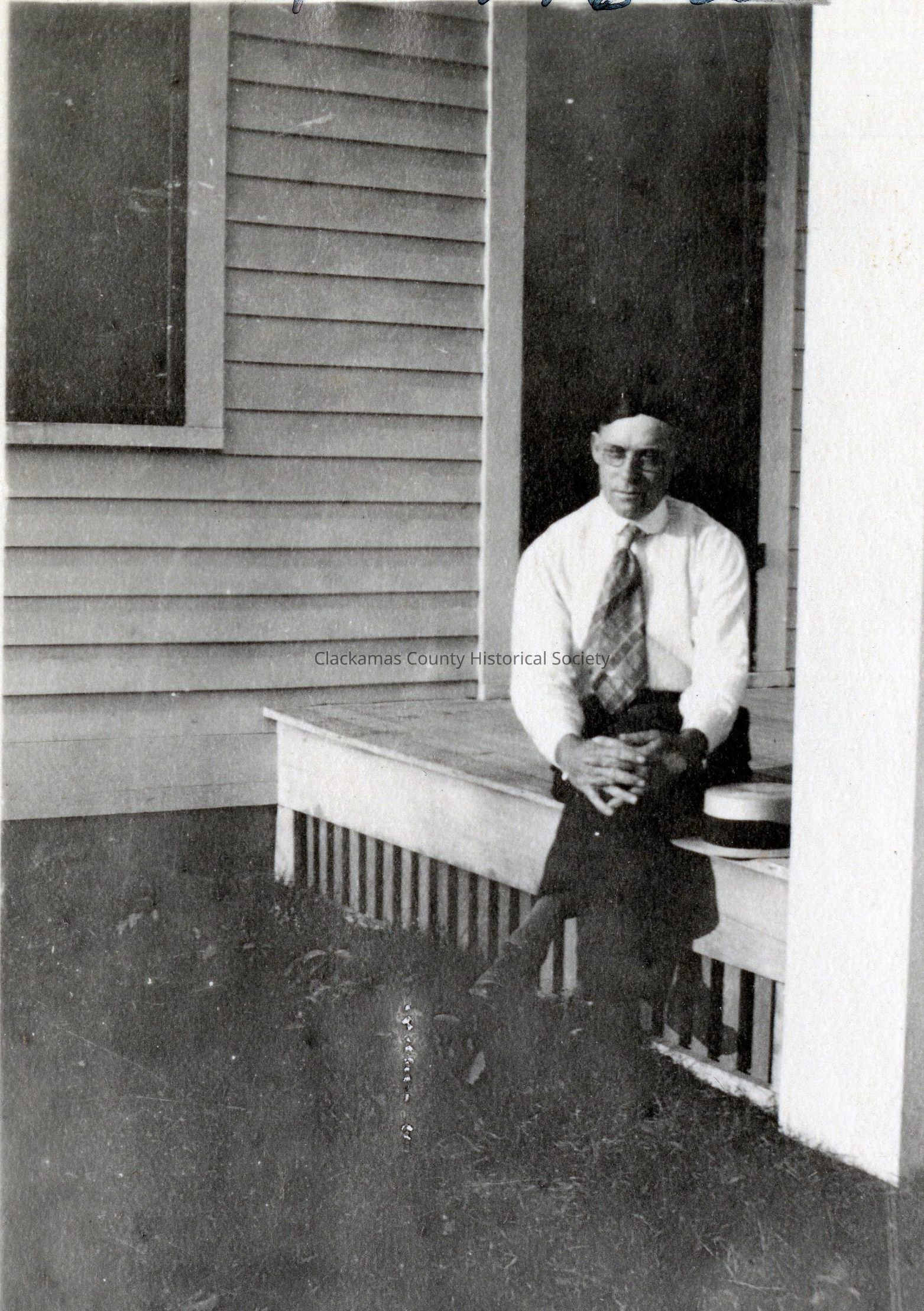 Les Johnson (Leslie) sitting on porch